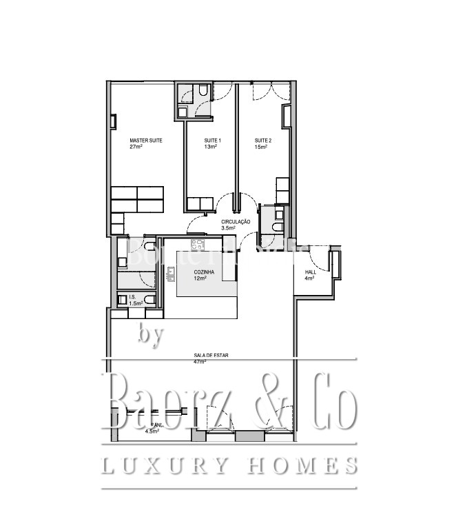 All three suites convey intimacy and generous comfort, with the primary suite extending across 27 m² and the additional suites each offering 13 m². Underfloor heating, air conditioning, and a full home automation system ensure year-round ease. The property features a private garage, full-time concierge, and interior parking, complemented by a central location moments from Amoreiras Shopping Center, Avenida da Liberdade, and international schools. This luxury apartment for sale in Lisbon Amoreiras presents a rare union of tranquility, prime access, and enduring style.