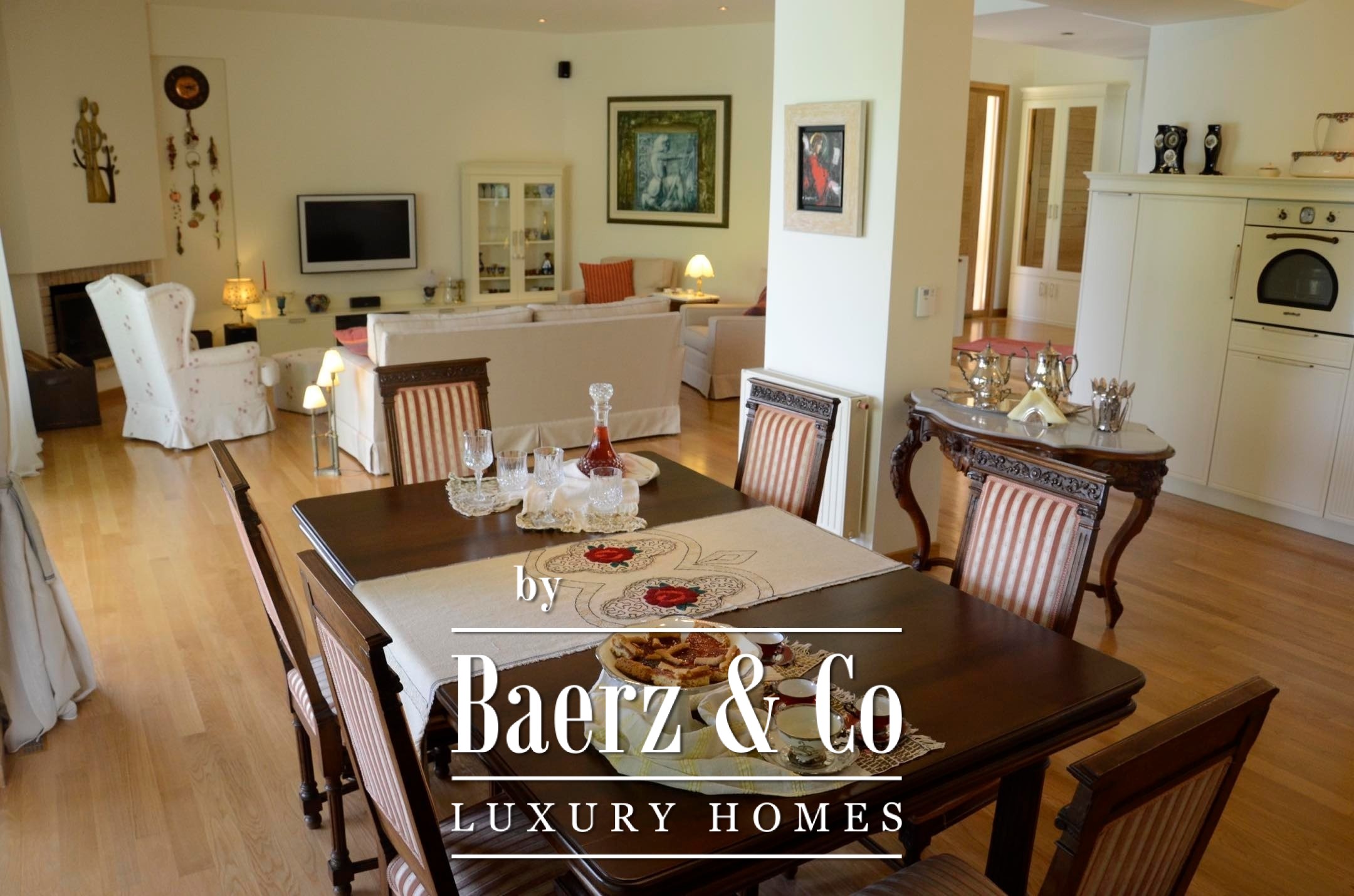 Outdoors, a 72 m² swimming pool, manicured gardens, and various terraces invite moments of quietude or gatherings with guests. The property’s perimeter fencing and underground garage ensure discretion and security. Additional amenities, from autonomous oil heating and air conditioning to a solar water heater, further the sense of year-round comfort. All are set against open panoramic views of countryside and distant mountains, only 3 km from the sea and 5 km from Chalkida’s dynamic urban life. Mitikas stands out for its tranquility and connectivity, offering a refined base for permanent living or as an exclusive holiday destination, all within reach of Athens International Airport in under an hour.