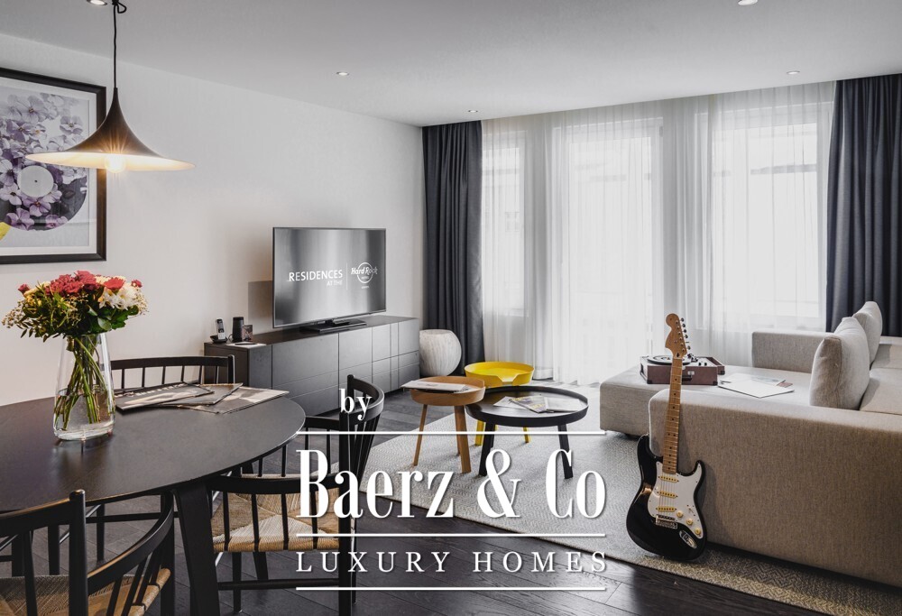 Flat Davos Davos Platz at the Hard Rock Hotel is a statement in modern Swiss design. This 97 m² residence, set in the heart of Davos, offers an experience where creativity meets serenity. The flat has two bedrooms and two bathrooms, thoughtfully arranged to provide a sense of calm rhythm and refined order.