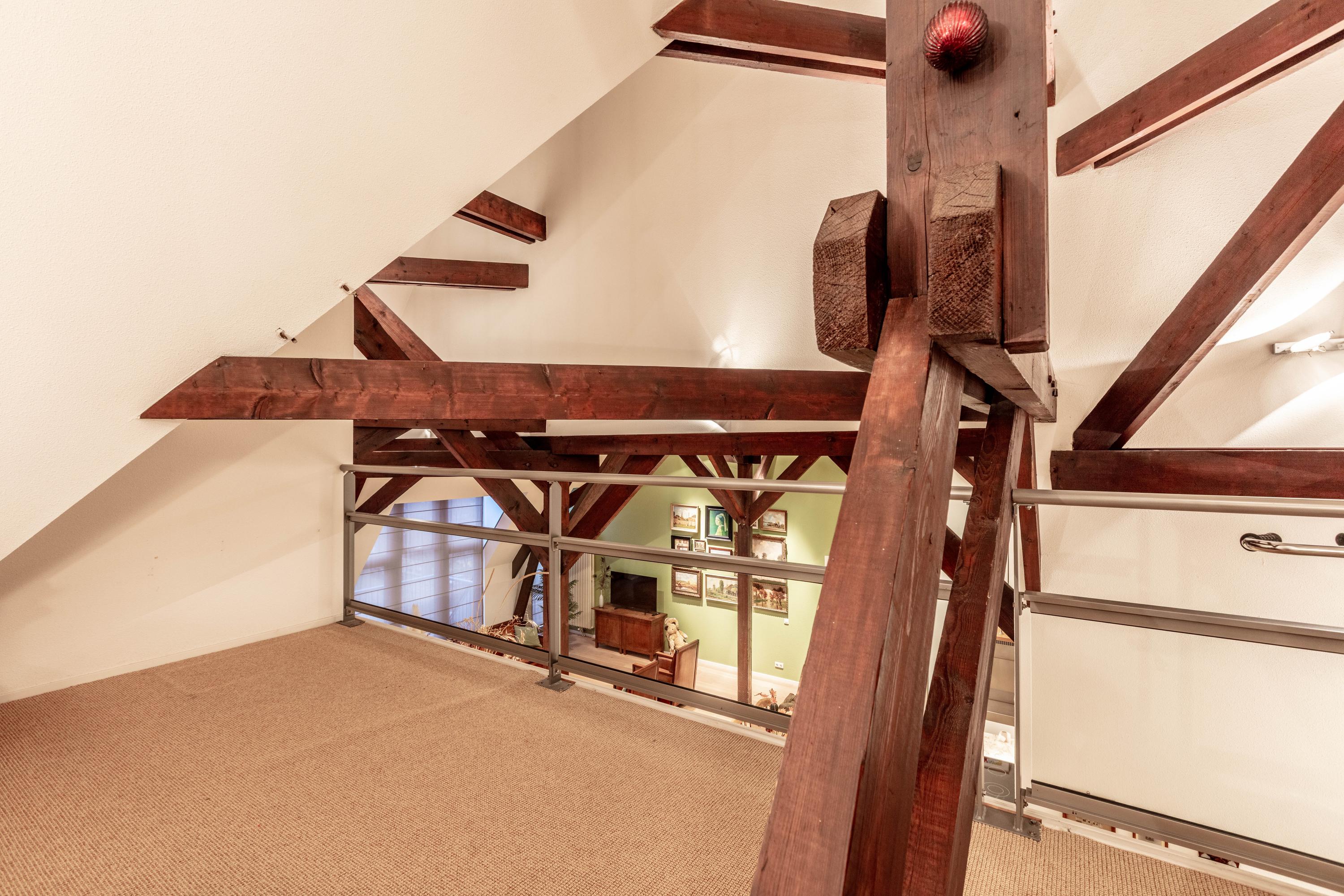 Via een spiltrap is de entresol met vide bereikbaar. Deze staat in open verbinding met de woonkamer en biedt extra ruimte én een fraai zicht op het leefgedeelte. Ideaal als fitnessruimte, hobbyruimte, speelruimte of tv-kamer.