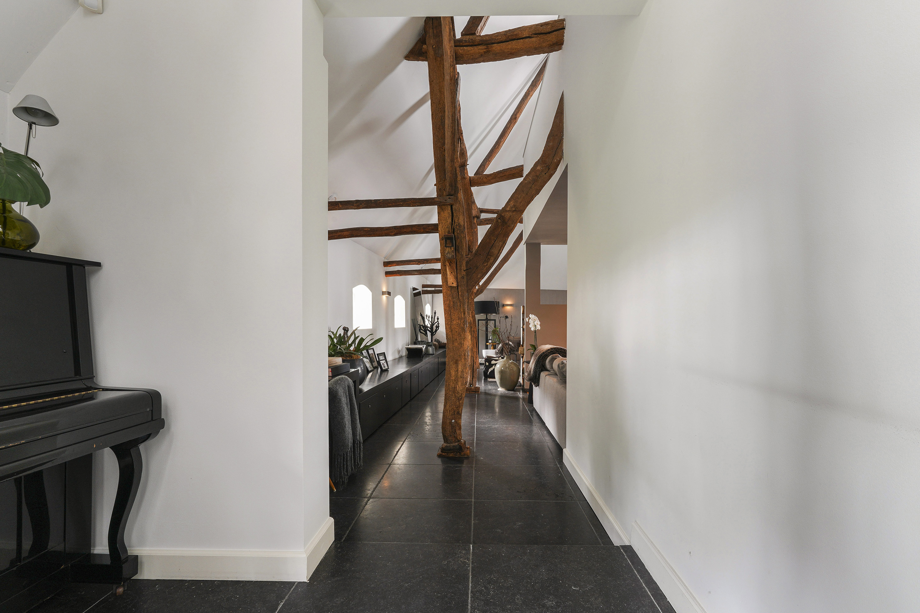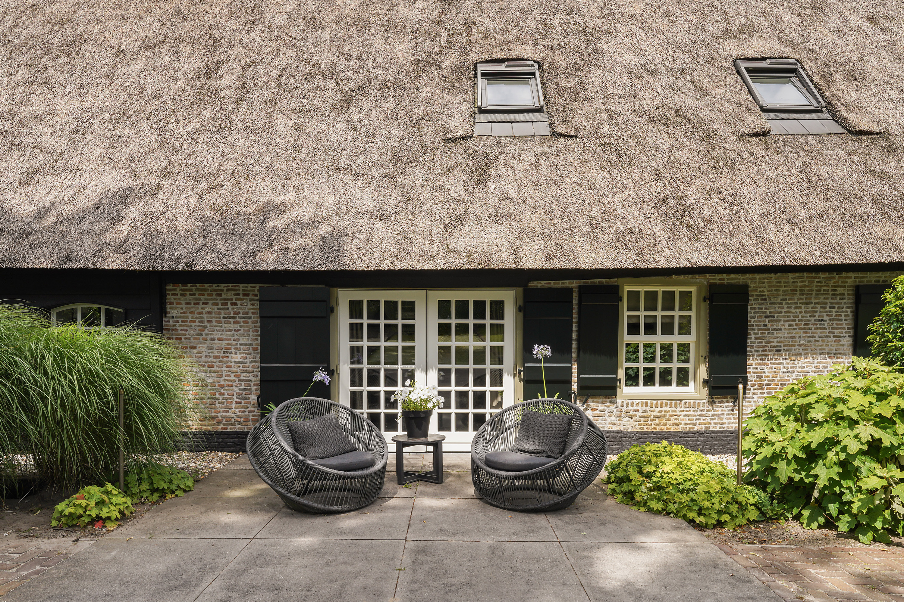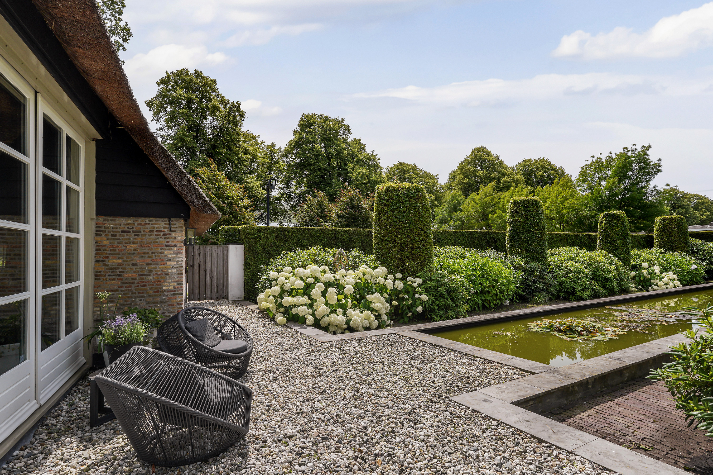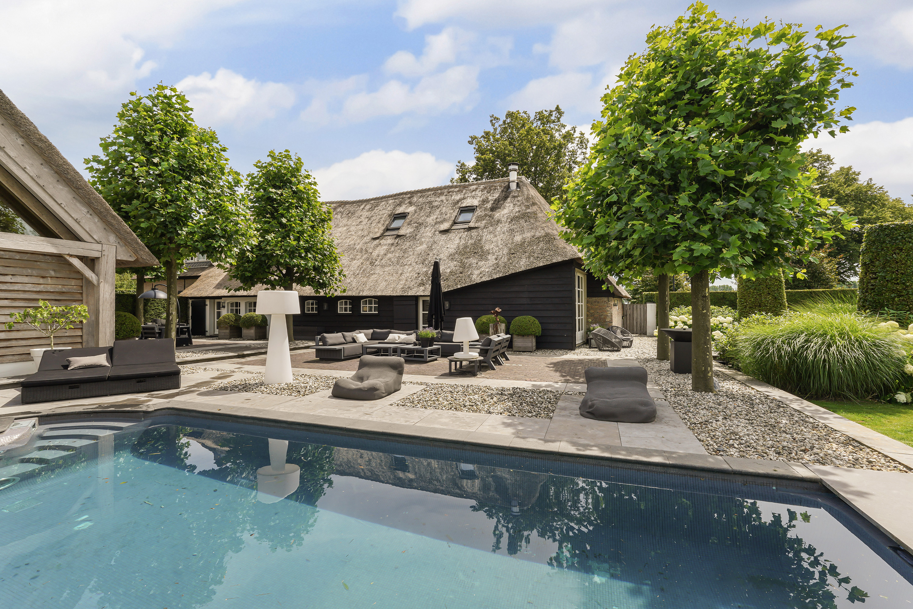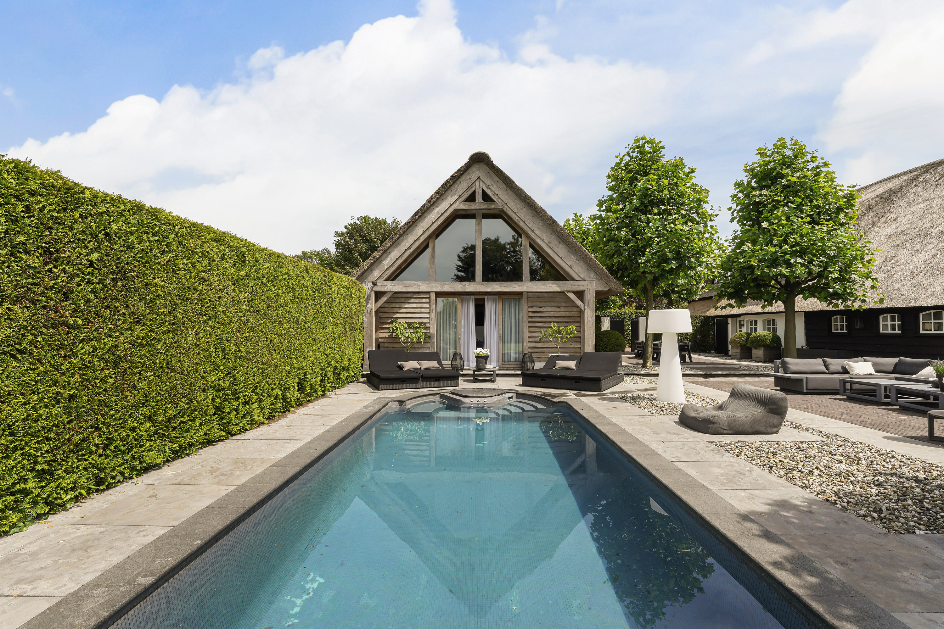 Villa Dongen fully renovated Brabantian long farmhouse is an extraordinary national monument that skillfully marries heritage with contemporary comfort. Set across a 3,610 m² plot, this property welcomes you with a stately driveway and gardens designed for privacy, featuring multiple ponds, curated lawns, and a heated swimming pool with automatic cover. The home’s origins trace to circa 1704, its integrity preserved through meticulous restoration, from insulated thatched roofing to heated floors, efficient climate control, and a sophisticated alarm system.