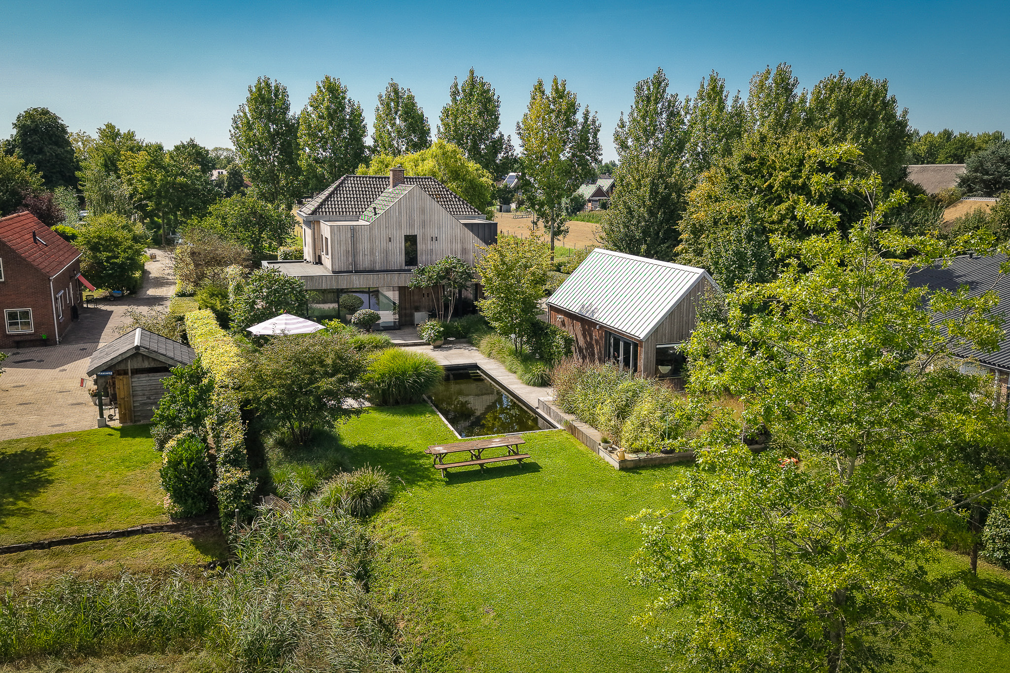 On the edge of the village of Dussen stands this former rectory, beautifully redesigned by an architect. The house includes a fully equipped outbuilding, fitted out as a guest residence with an adjoining barn, plus a dream of a garden with a luxury natural swimming pond. From the garden there are uninterrupted, panoramic views over the meadows (almost 3 hectares), which can optionally be purchased.