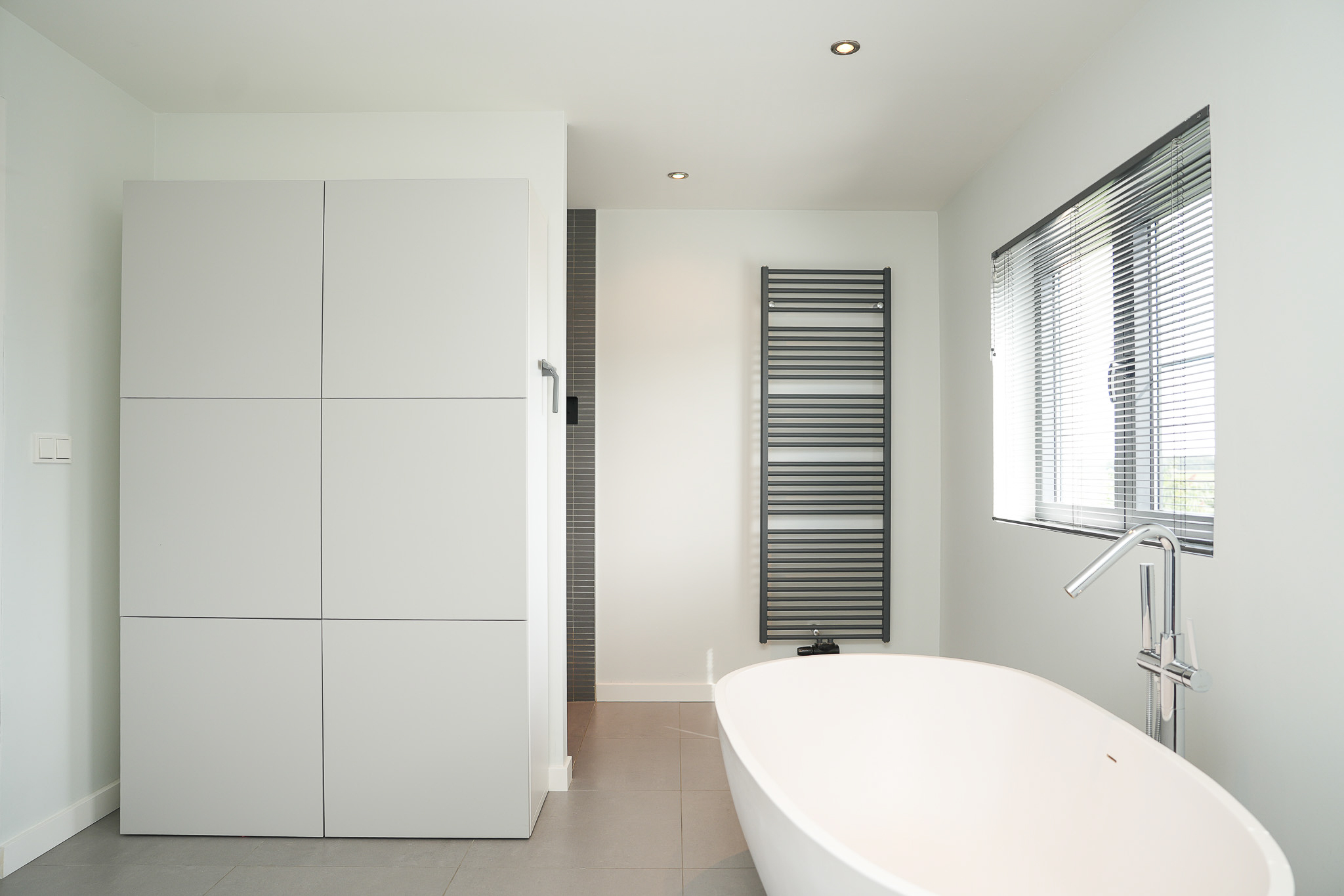 The first floor offers four bright, spacious bedrooms. The luxury bathroom features a freestanding bathtub, walk-in shower and double washbasin unit. There is also a separate toilet. Both the bathroom and toilet benefit from underfloor heating. The bedrooms are finished with marmoleum flooring.