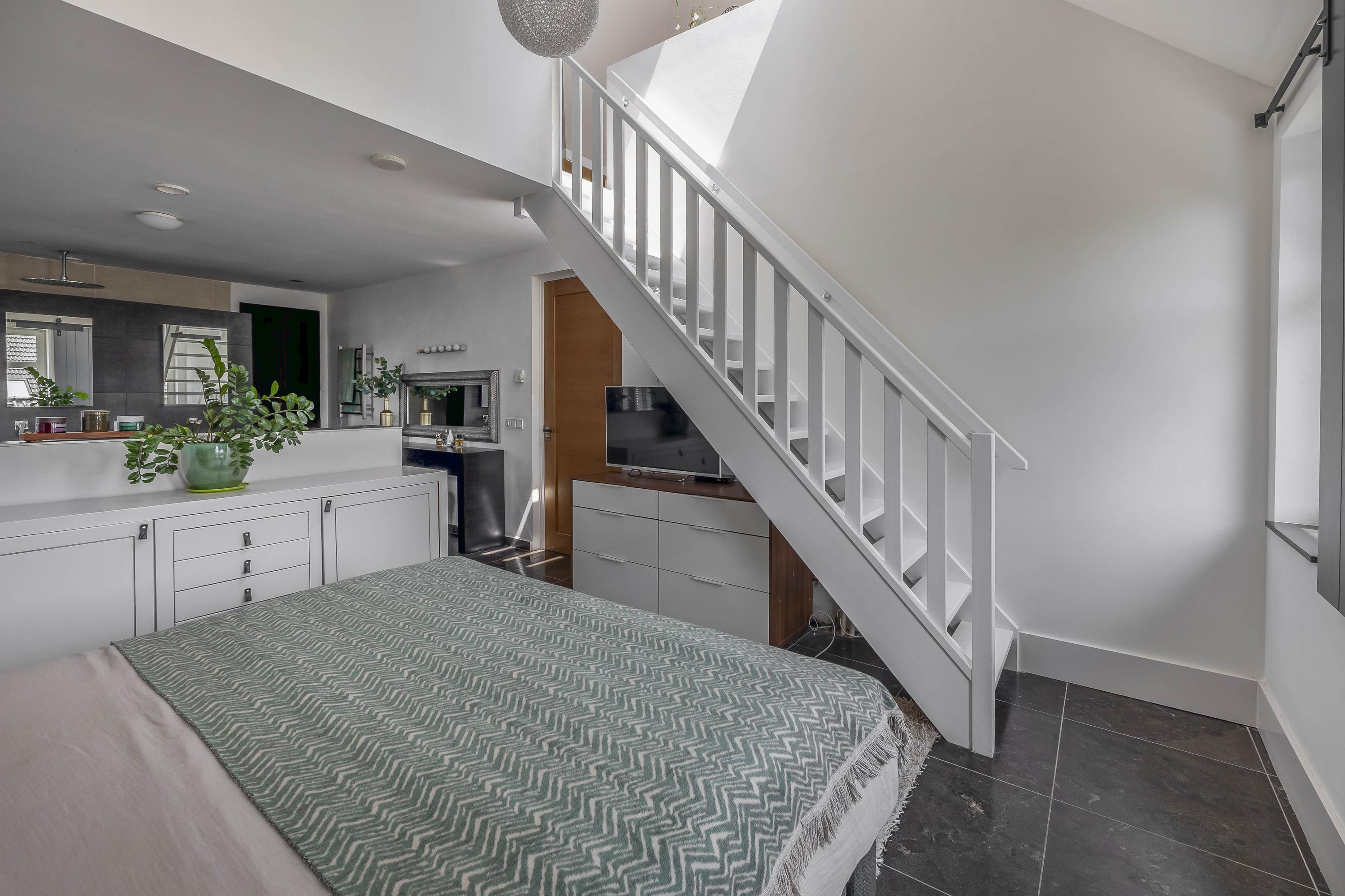 Bedroom 1 is a beautiful master bedroom with en-suite bathroom and a staircase to the second floor. Here you experience a sense of luxury and space, thanks to the high ridge and tasteful finish.