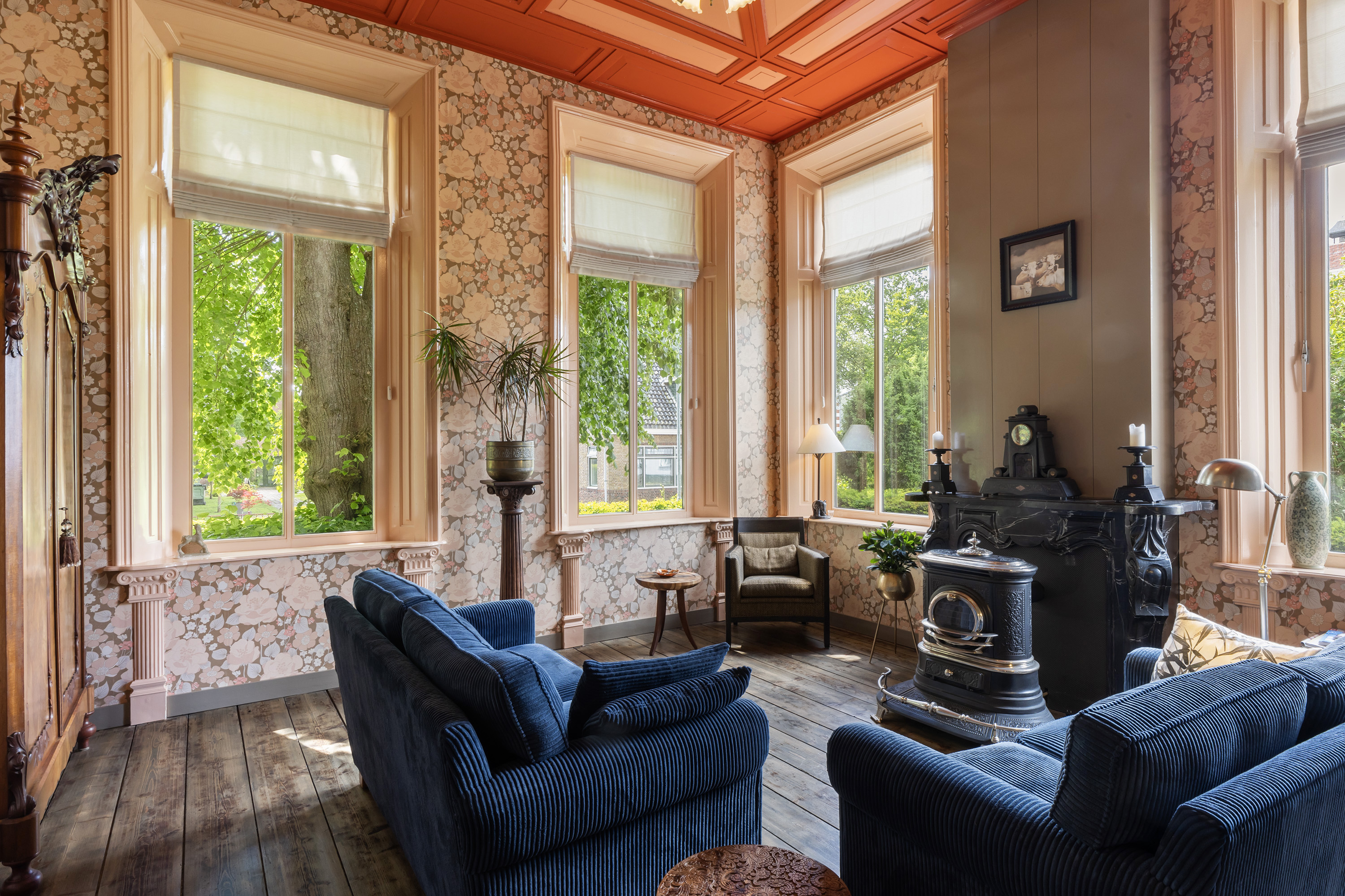 Set along a charming rural lane, surrounded by expansive farmlands and centuries-old trees, this exceptionally atmospheric and fully renovated gentleman’s farmhouse is a rare find. Hoofdweg 34 in Finsterwolde is a spacious country residence comprising a main house with integrated apartment, a multi-purpose barn with soaring roof height, a beautifully landscaped park garden with a 10x10 metre veranda under a traditional haystack frame, and breathtaking open views to the rear. The entire estate exudes tranquillity, quality and authenticity.