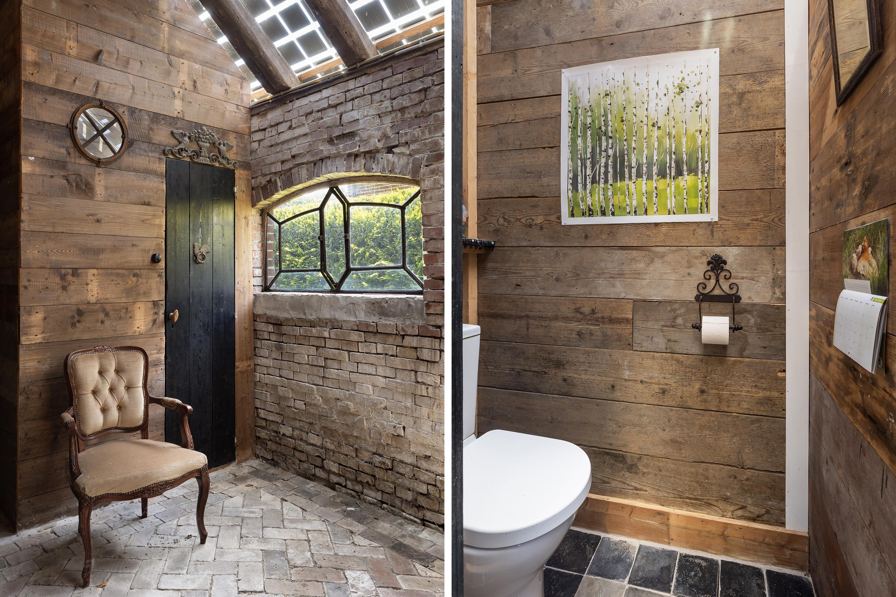 The adjacent barn is truly imposing in both scale and character. It is divided into a traditional stable and an open barn area. The stable includes a former cattle barn with kitchenette, the self-contained apartment and an orangery with natural stone water feature, toilet and translucent solar panels.