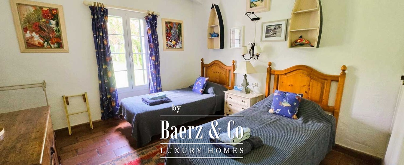Outdoors, the villa’s manicured garden, pool, and shaded terraces create an atmosphere of tranquillity for both relaxation and entertaining. Practical elements—a garage, laundry, and the convenience of an outdoor shower and guest toilet—ensure seamless day-to-day living. This exclusive villa for sale in Fornells encapsulates refined island life, with enduring materials and the freedom to expand, positioned in one of Menorca’s most coveted settings.