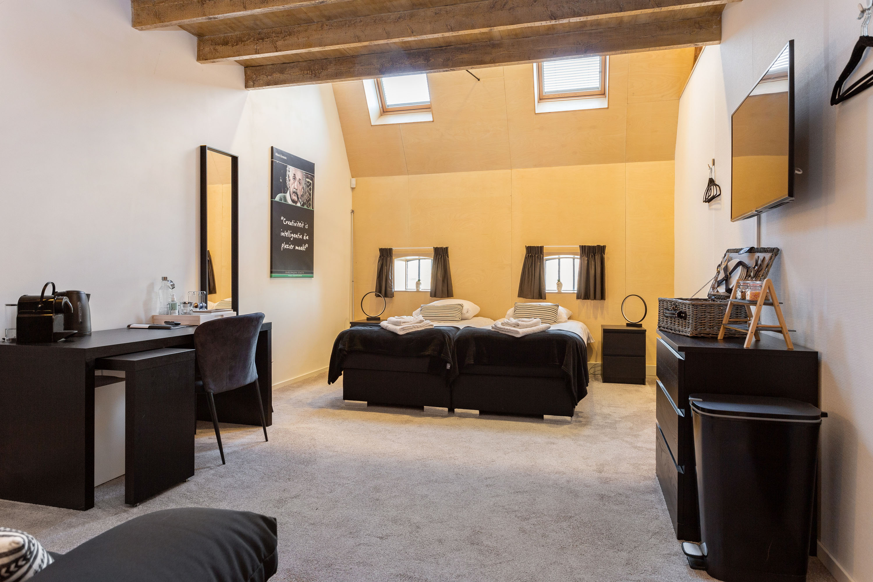 On the right side of the barn downstairs, 4 modern rooms with en-suite bathrooms have been created. The rustic atmosphere and feeling of outdoor living has been retained. Each room has its own entrance.