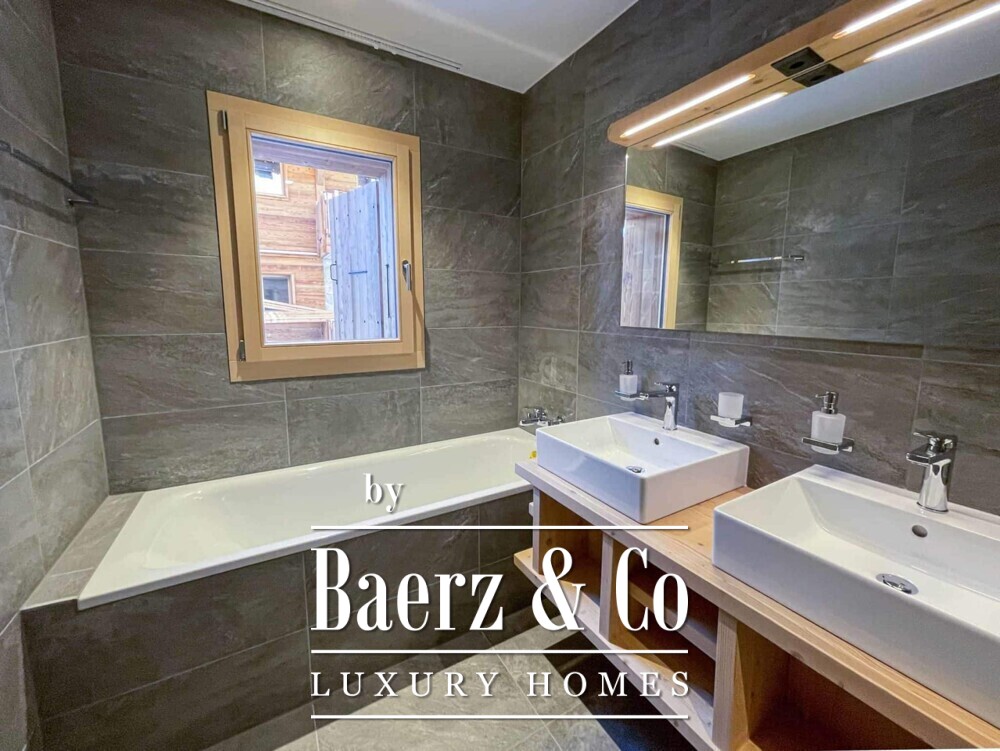 Defined by understated quality, the penthouse is one of nine chalets arranged around amenities including a refined restaurant and an inviting wellness centre. Constructed by local artisans, each residence is crafted with high-end materials, natural stone, and larchwood facades that quietly echo the heritage of the Swiss Alps. Underfloor heating provides warmth throughout, creating a sense of calm and comfort after a day on the pistes.