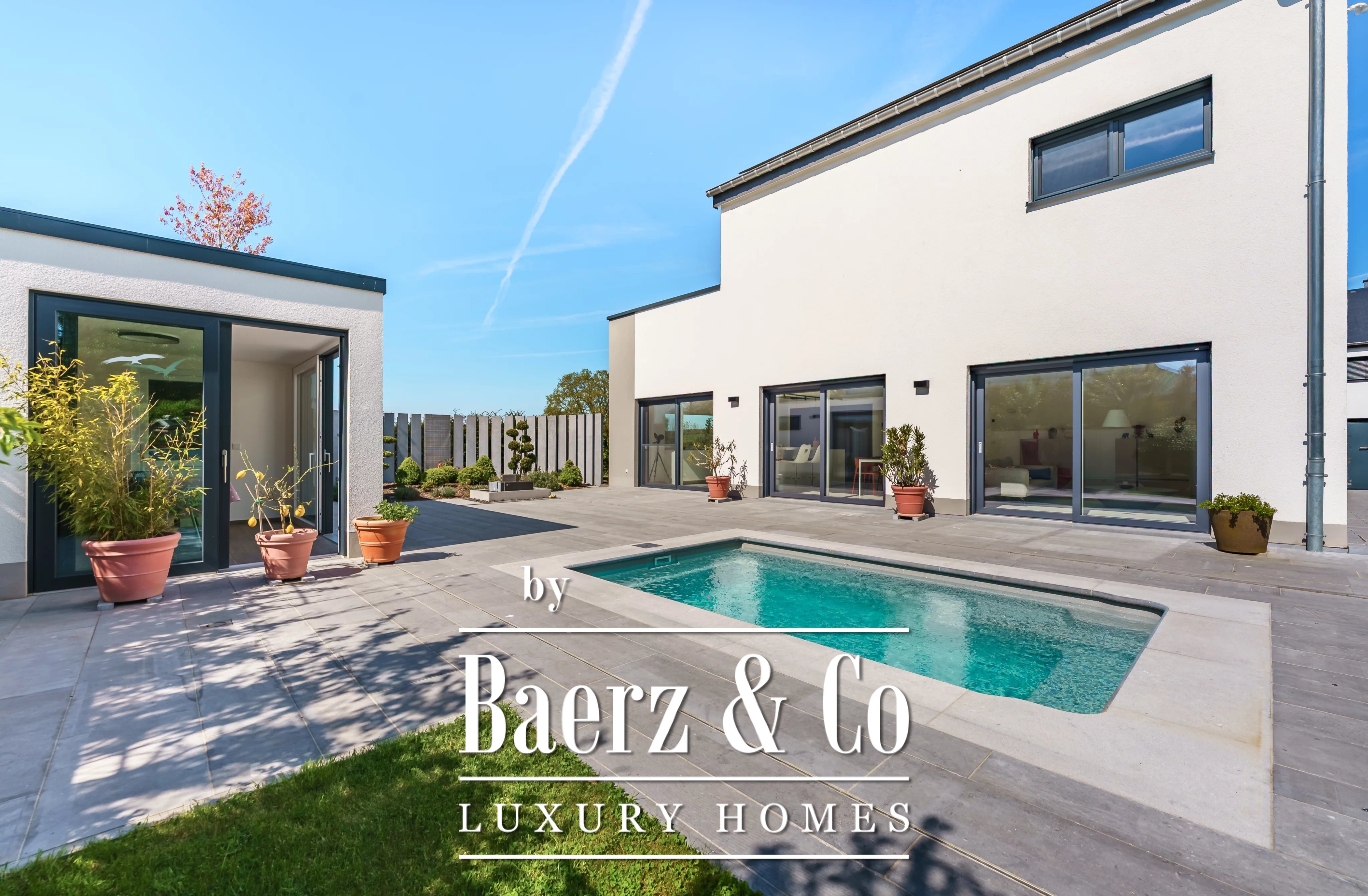 Immopartner offers a sleek, upscale villa with swimming pool and exceptional view of a Natura 2000 area.