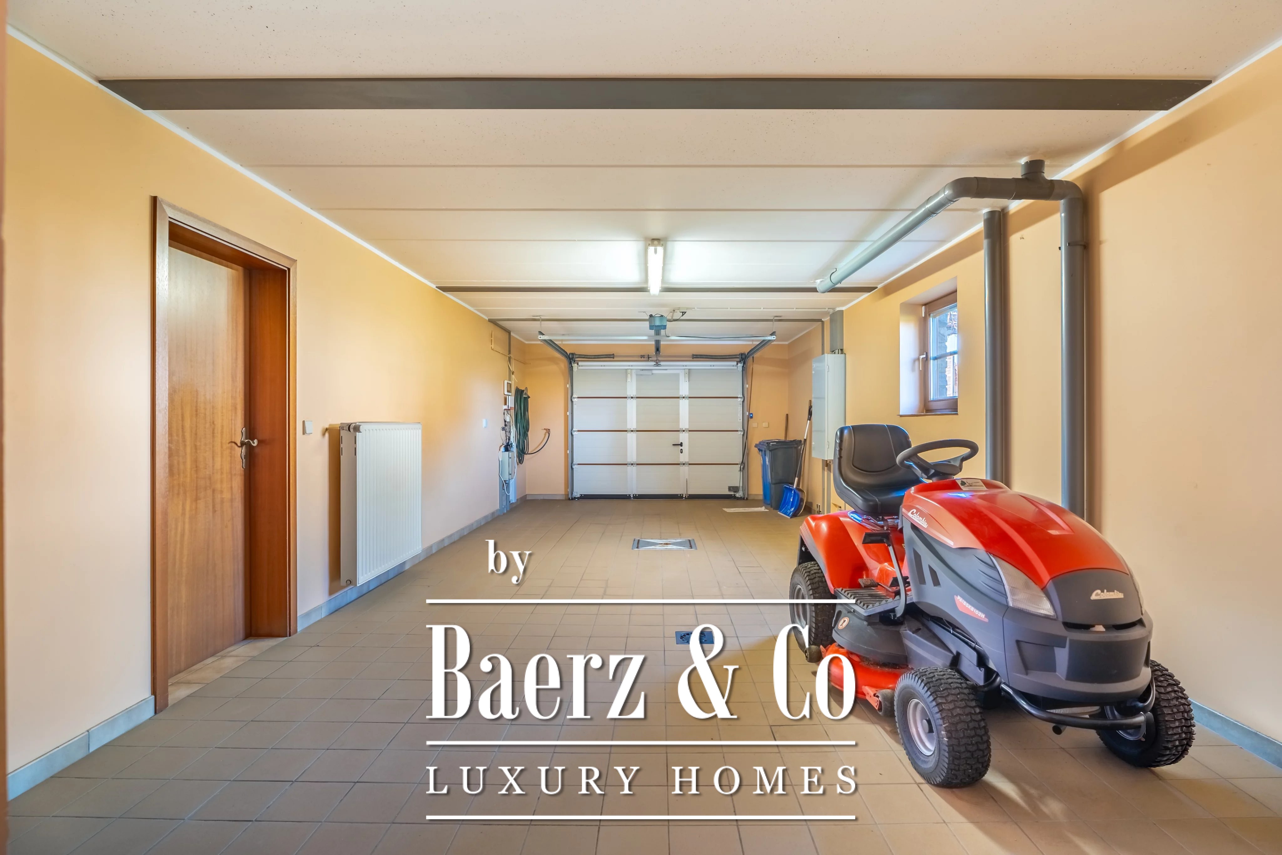 Arranged across multiple levels, the property features five bedrooms and two bathrooms. The basement accommodates a 34.80 m² garage, multiple storage spaces, and three bedrooms, ensuring flexibility and convenience. The first floor unfolds into a 16.70 m² entrance hall that leads to a light-filled living and dining space of 30.87 m², accompanied by a fitted kitchen of 18.35 m², utility room, and two further bedrooms. A separate WC and bathroom reflect thoughtful planning. The attic provides an additional 30 m² of unfinished space, inviting future adaptation.