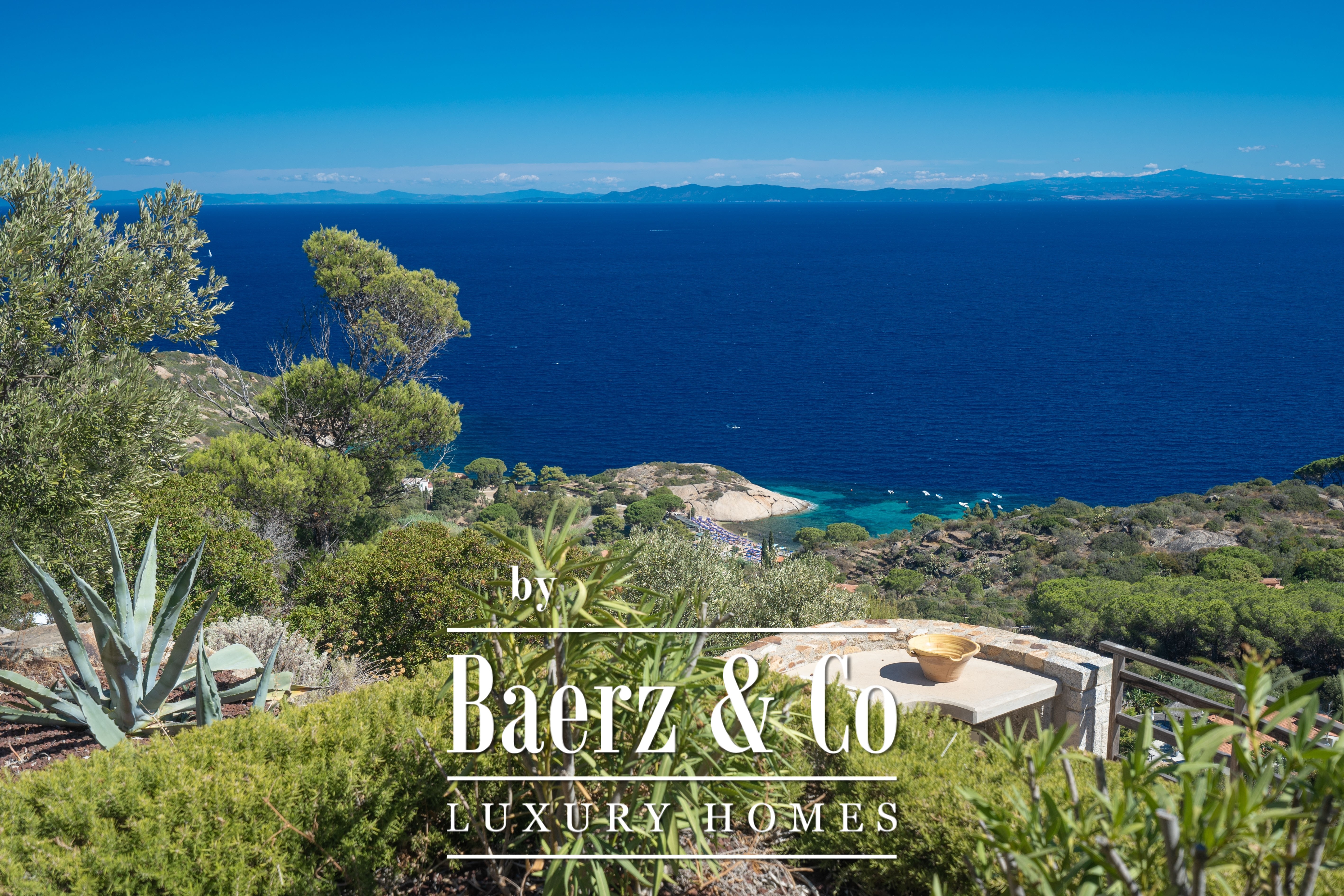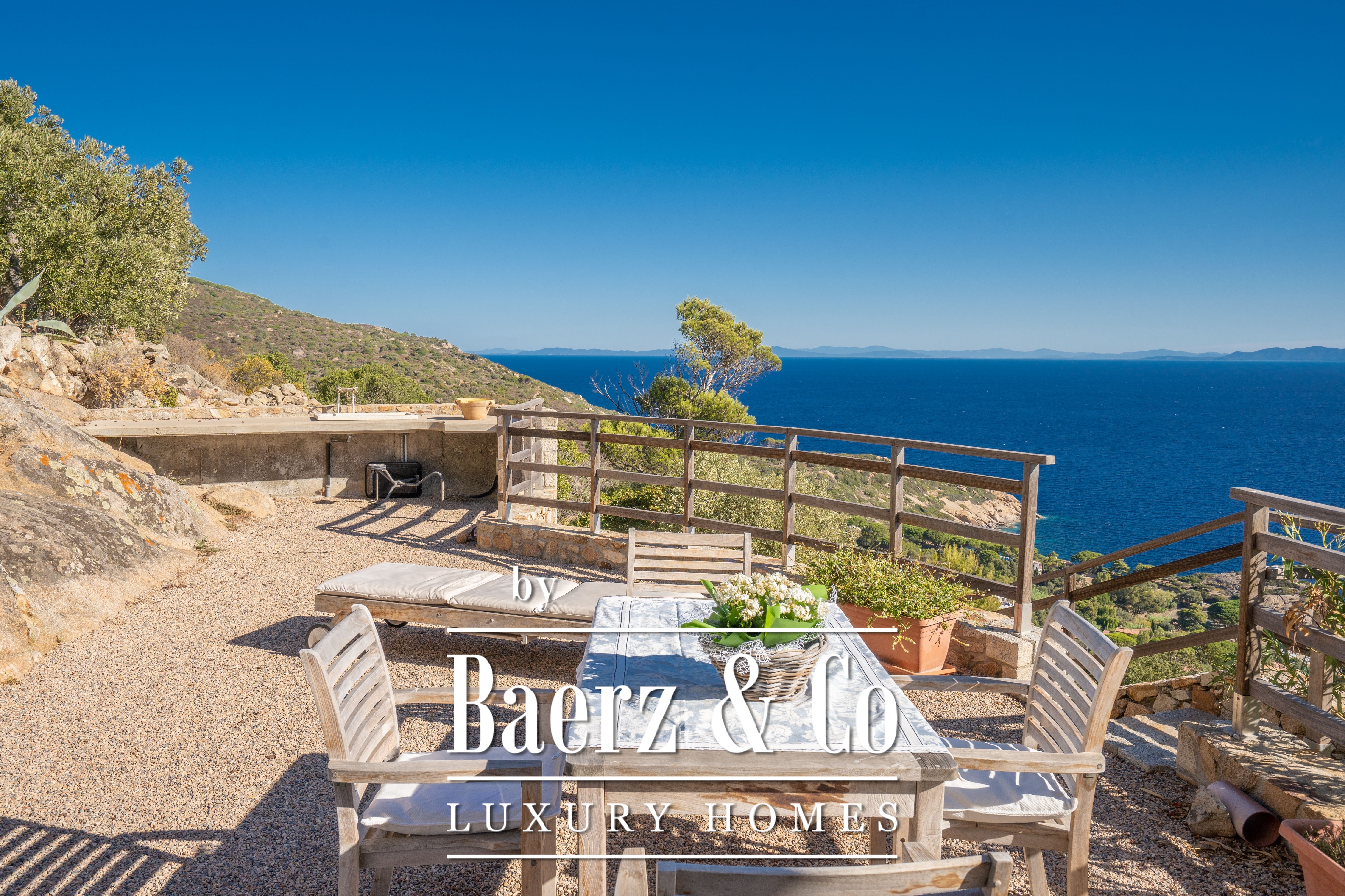The beautiful Villa Gioia is located on the east coast of the island of Giglio and offers a breathtaking panorama of the sea: the view stretches from Arenella beach over the turquoise coloured sea to the Tuscan coast with the peninsula of Monte Argentario and the island of Giannutri on the horizon. Surrounded by greenery – the nearest “neighbor” is a few hundred meters away – the villa is immersed in a typical terraced garden and you can enjoy the scent of Mediterranean scrub and spice plants.