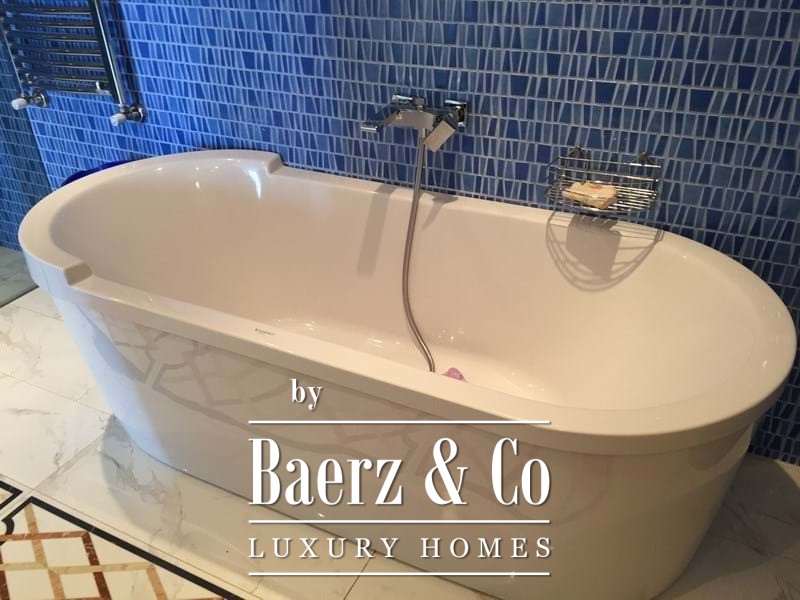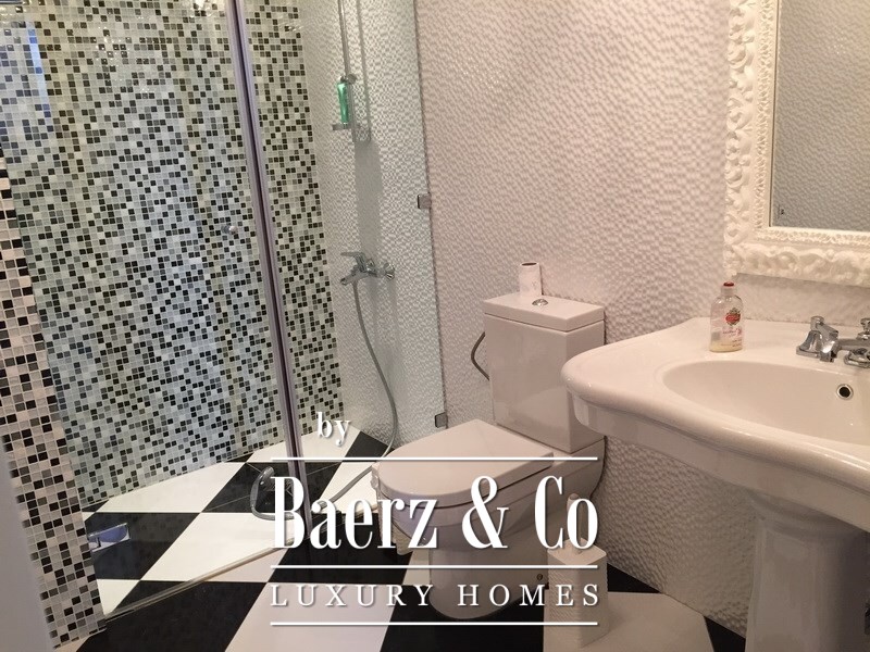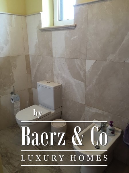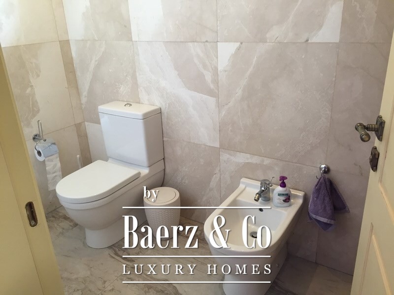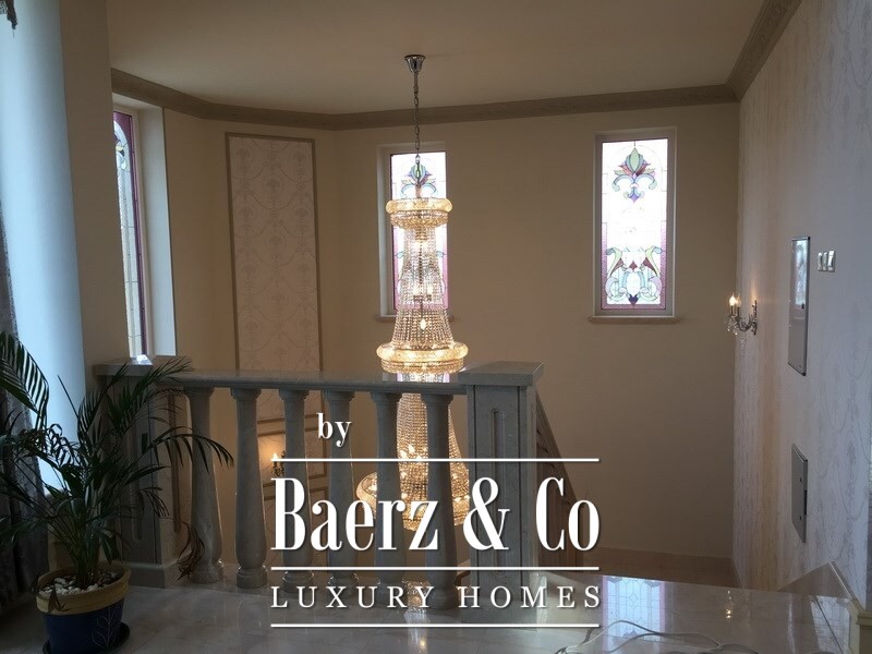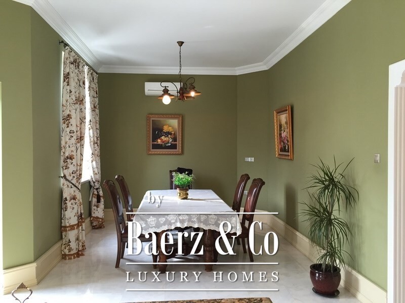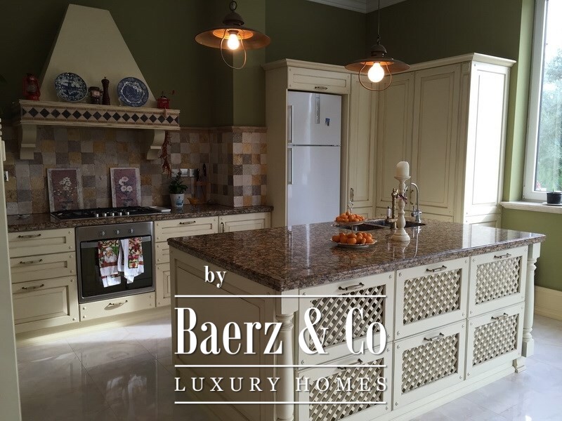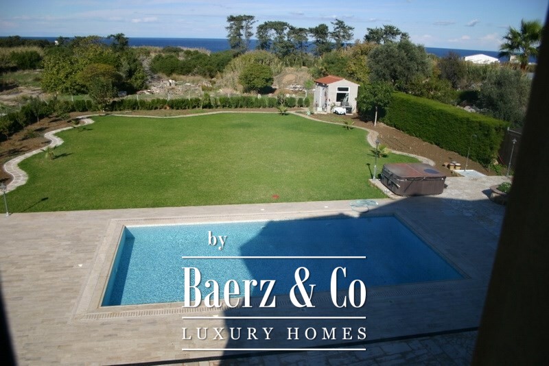 This is a beautiful elegant villa located next to the sea with a very spacious 450m2 internal size and posing high ceilings. The villa has 5 bedrooms, 3 ensuite bathrooms, 3 bedrooms having fitted wardrobes. Spacious living room, kitchen with fully fitted kitchen units, white goods, central isle and granite worktops, and is open plan to the dining room. An Impressive marble stair case of a best quality leads up to a landing area which is fully lighted up by a crystal chandelier. The landing is very spacious with large windows offering lots of natural light and has a lovely view to the sea. The garden is mature with a lovely green lawn, different fruit trees