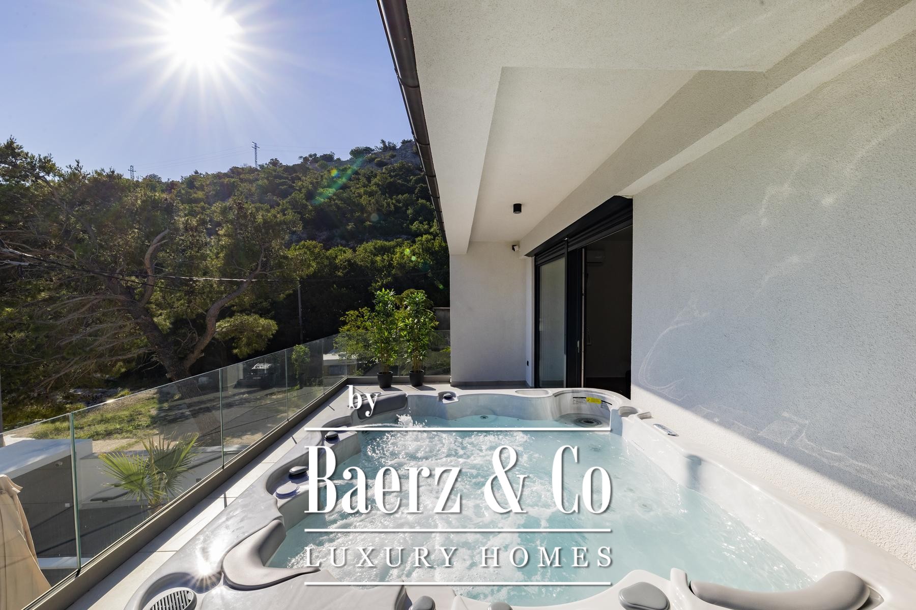 Expansive glass, triple-layered and well insulated, draws in light and frames the Adriatic, while underfloor heating and a fireplace ensure year-round warmth and calm. The main living space, elegantly proportioned, flows into a modern kitchen curated for both ease and sophistication. Outdoor areas invite languid afternoons beside the 32 m² seawater pool, in the jacuzzi, sauna, or at the private gym, with direct access to the sea and a pier that includes a boat slipway system for yacht owners.