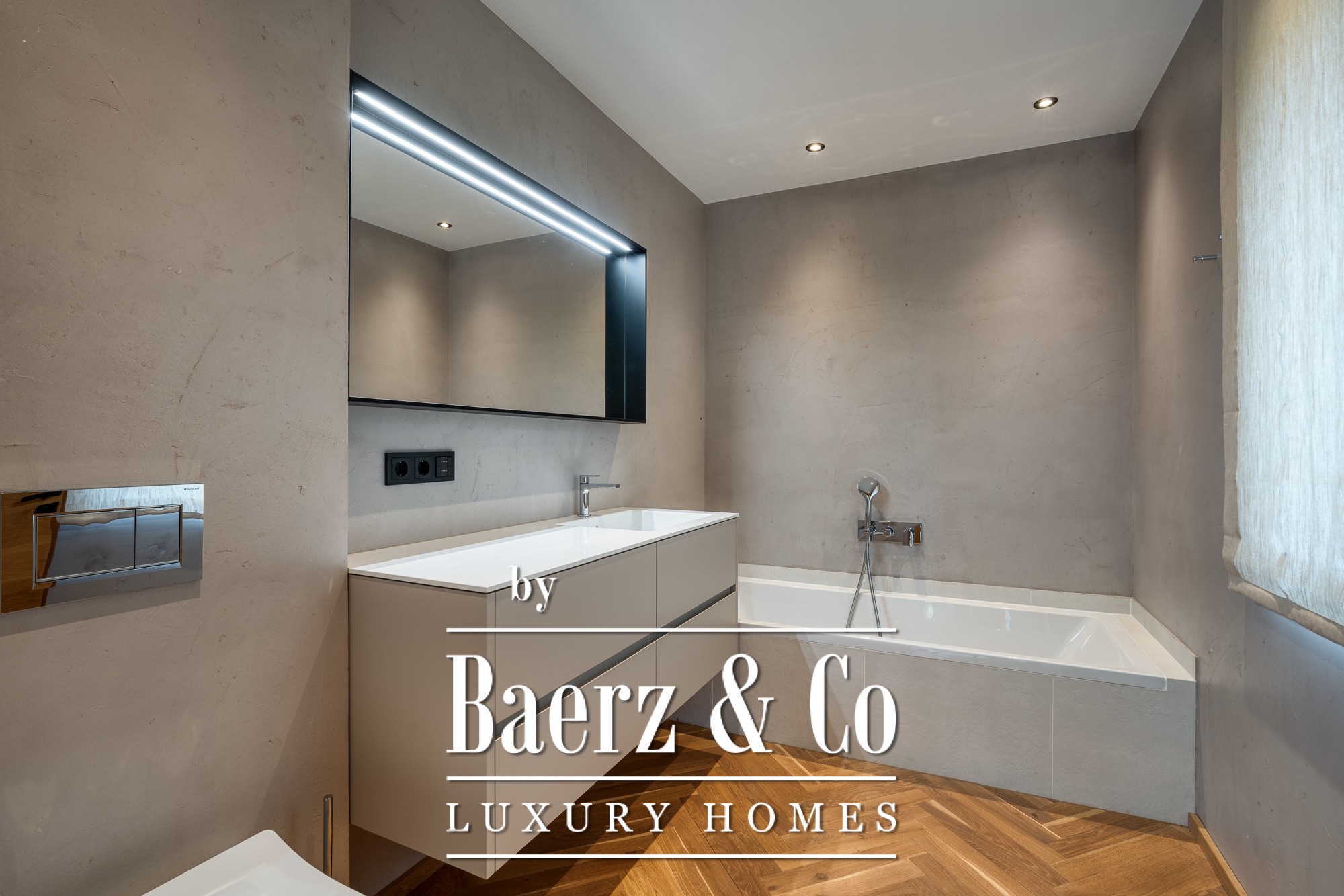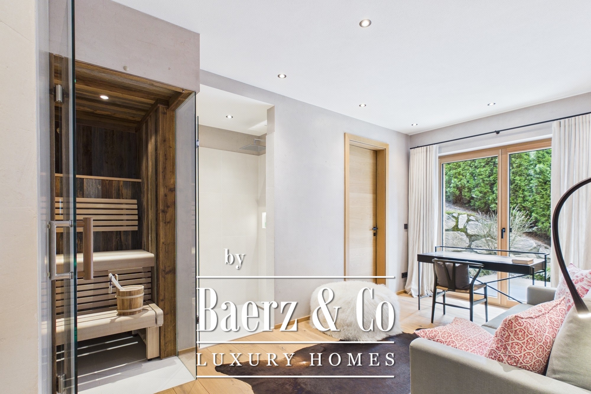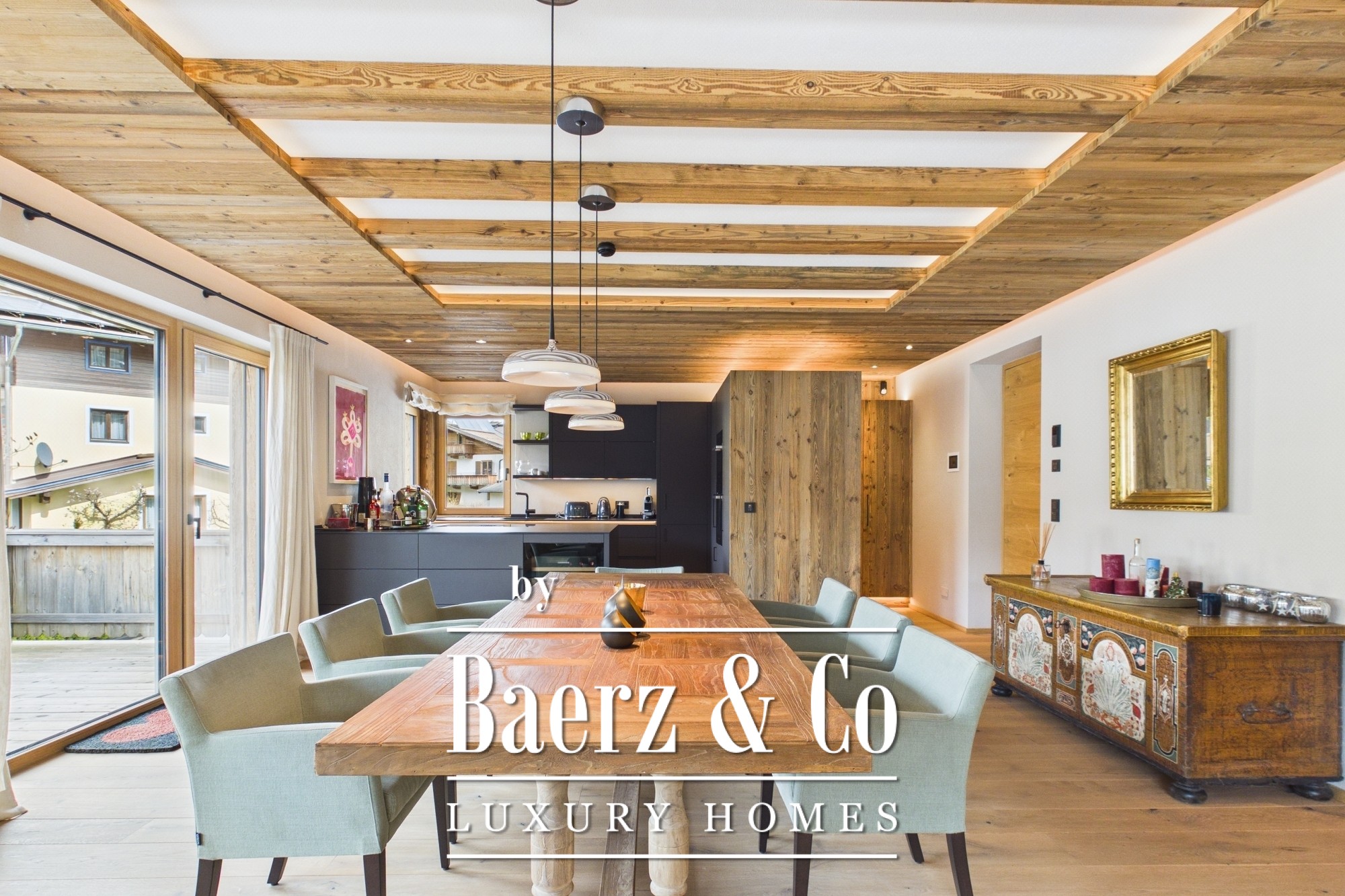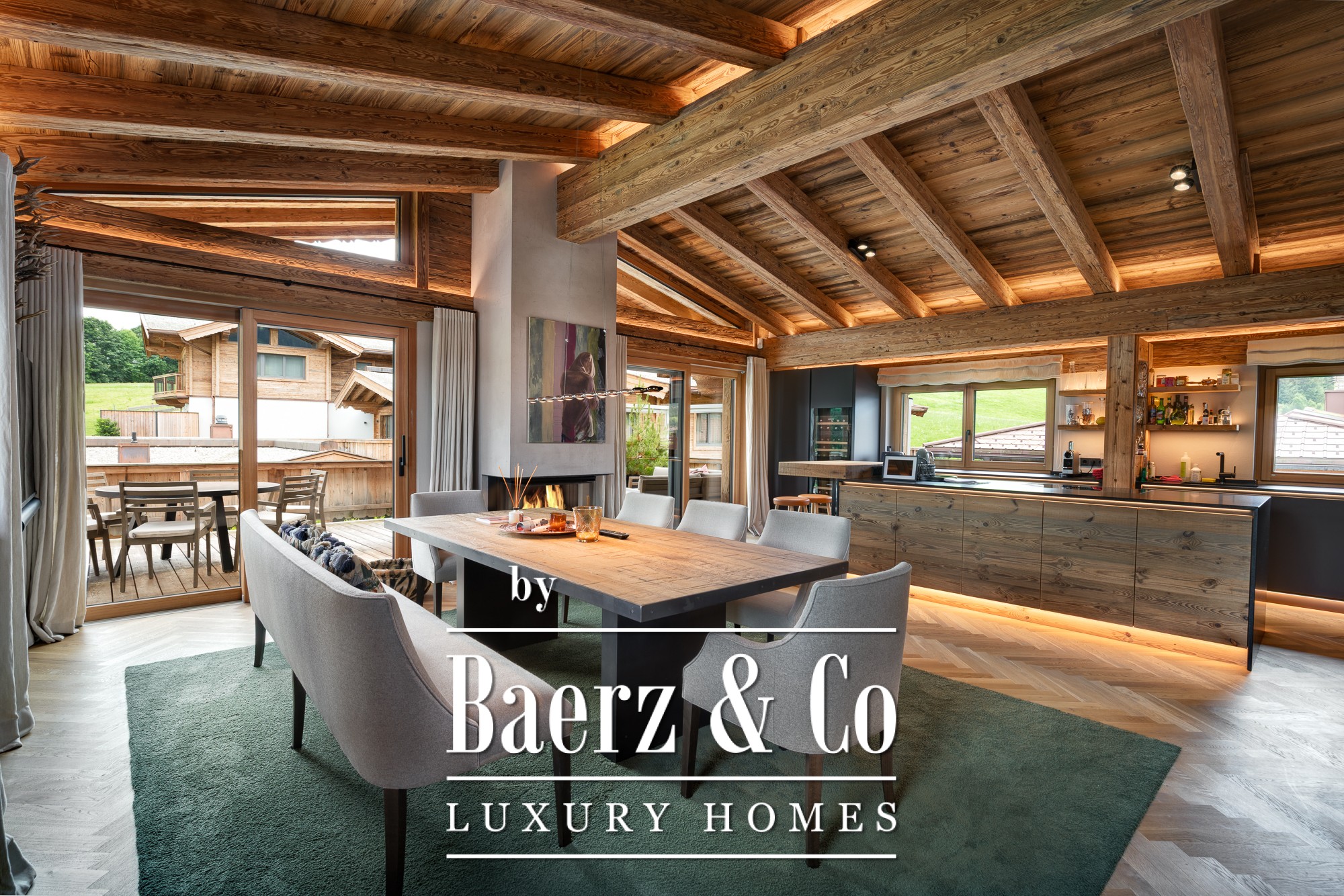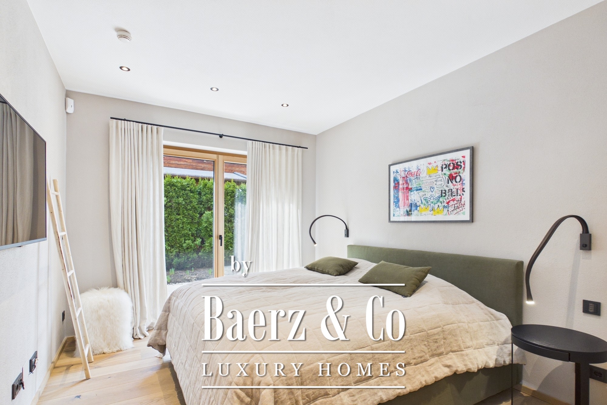 Amenities such as two covered parking spaces, a spacious basement for storage and ski equipment, electric blinds, fly screens, and a comprehensive lighting concept ensure effortless living. Set at the end of a quiet cul-de-sac, this elegant residence promises tranquil seclusion moments from ski slopes and Kirchberg’s vibrant center, with the celebrated resort town of Kitzbühel nearby.
