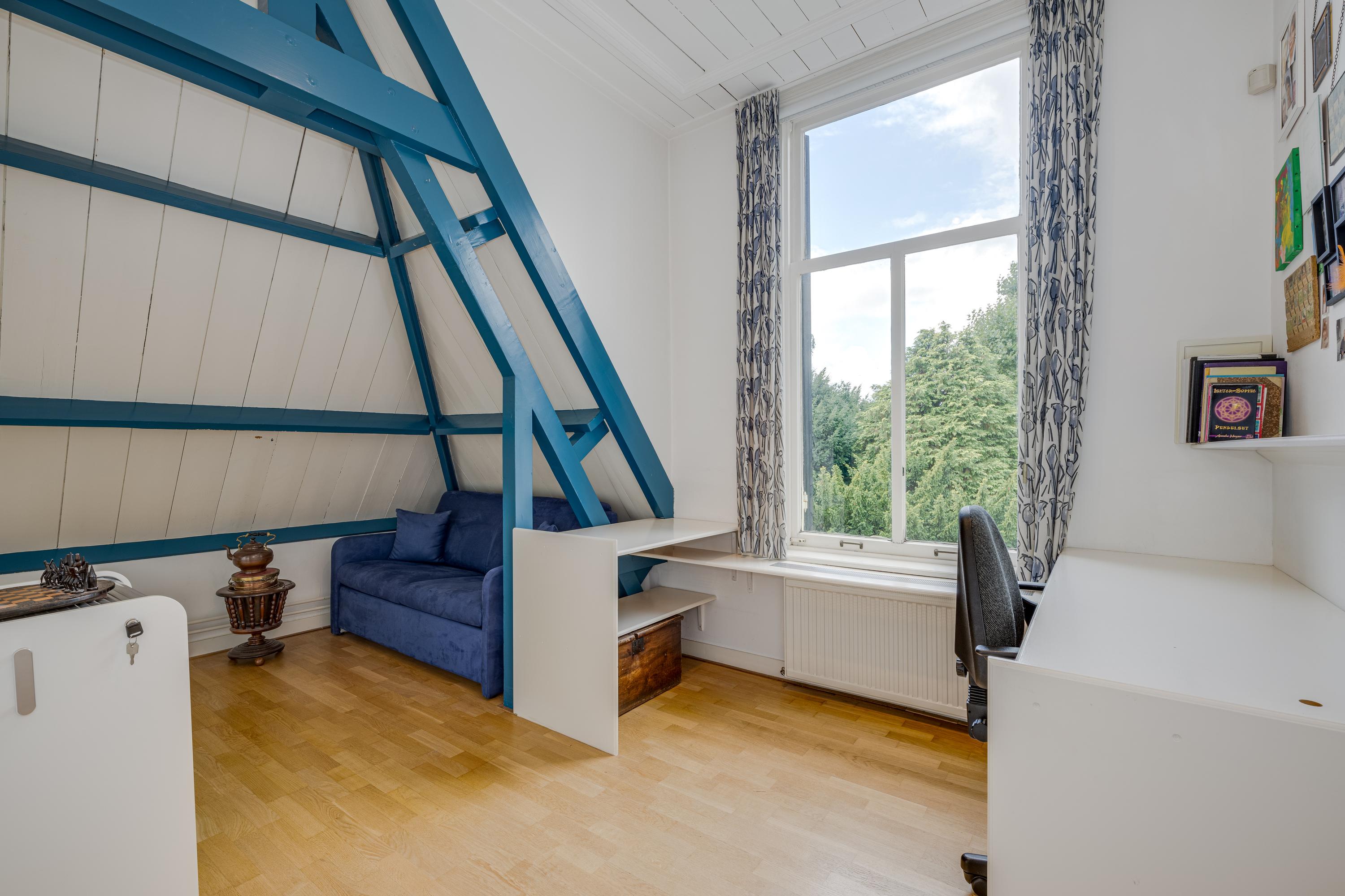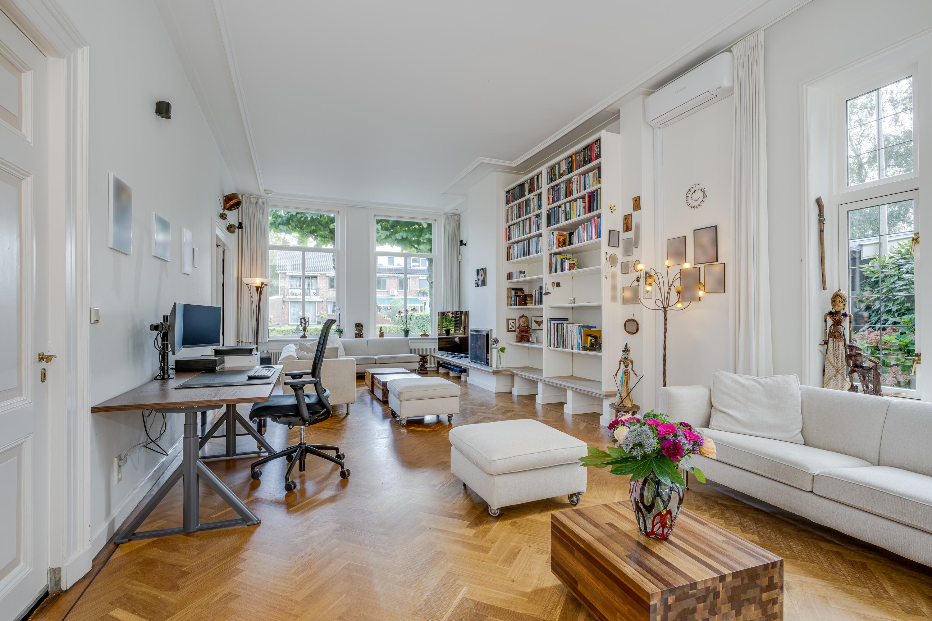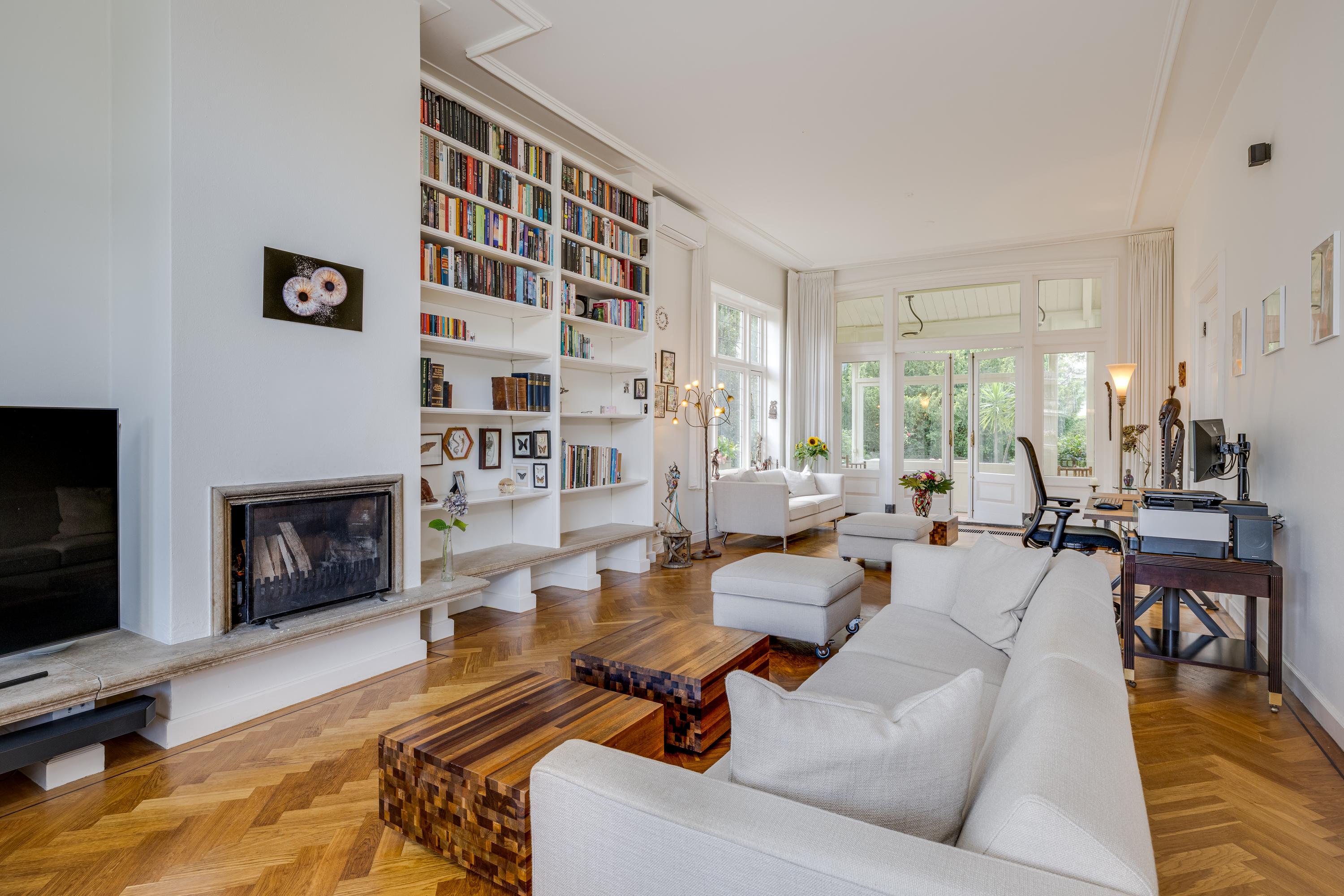 The 1995 gatehouse, designed symmetrically with glass façades and French doors, balances office and fitness space on the ground floor, with a luminous guest room above. Security, modern insulation, sustainable solar technologies, and linked alarm systems ensure discretion and peace of mind. Local amenities, shops, international schools, and the historic heart of Leiden are all within walking or cycling distance, while the A4’s swift connections link city, coast, and airport.