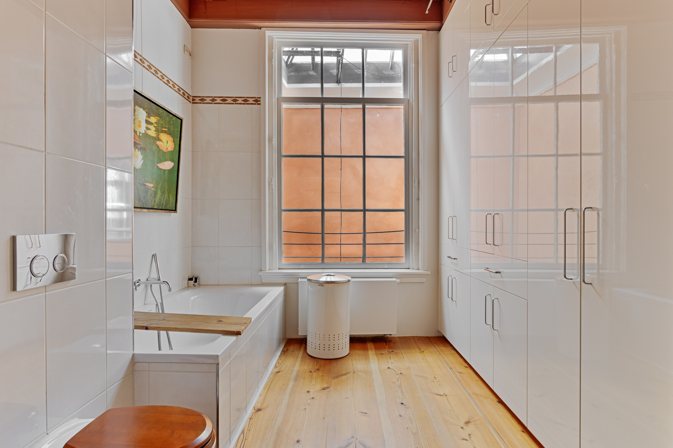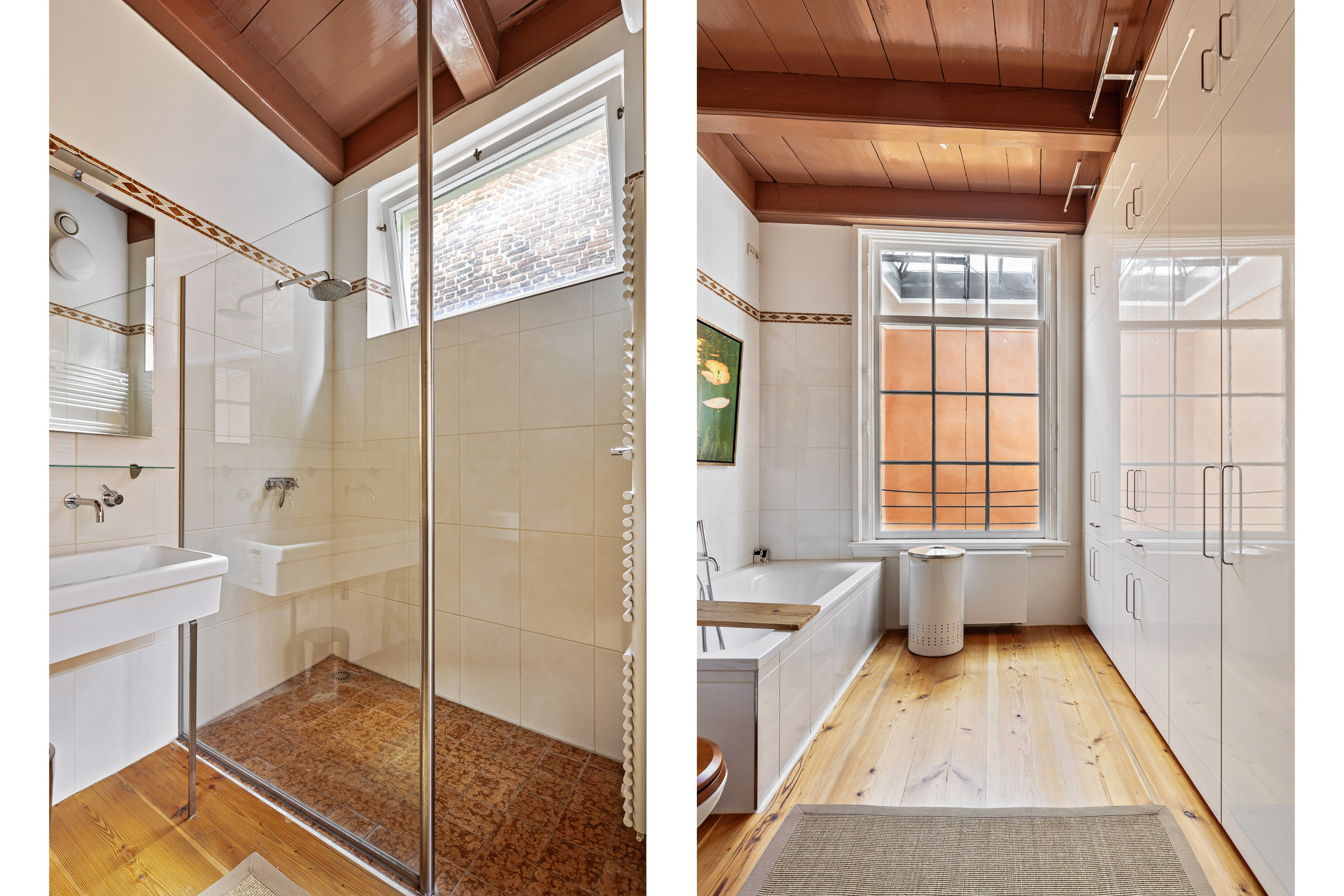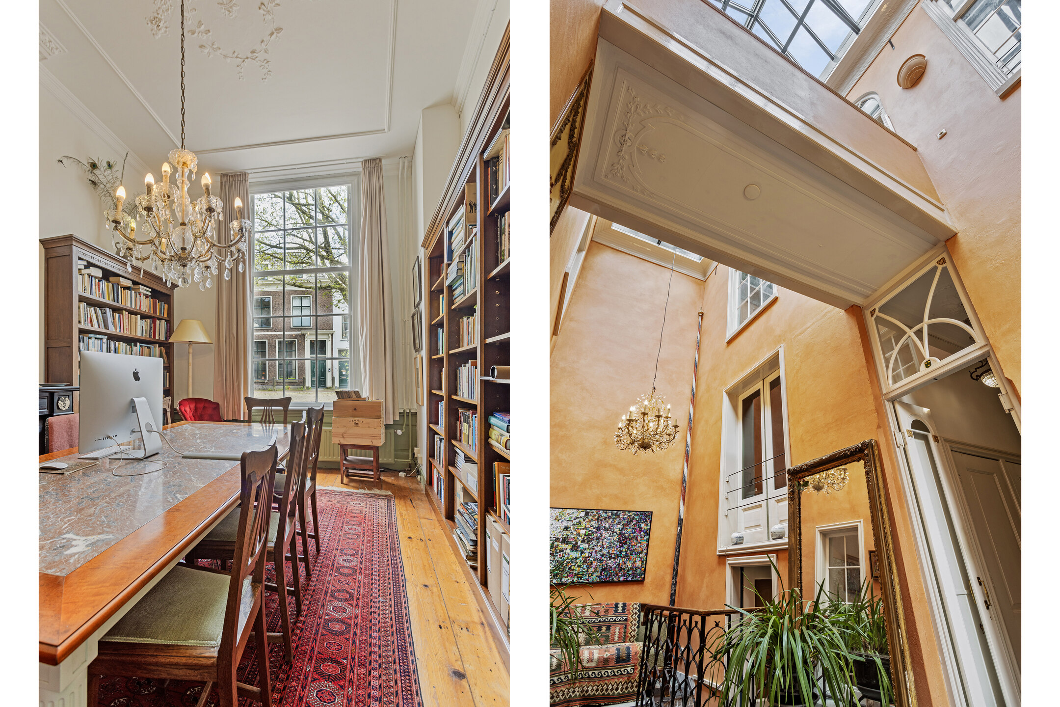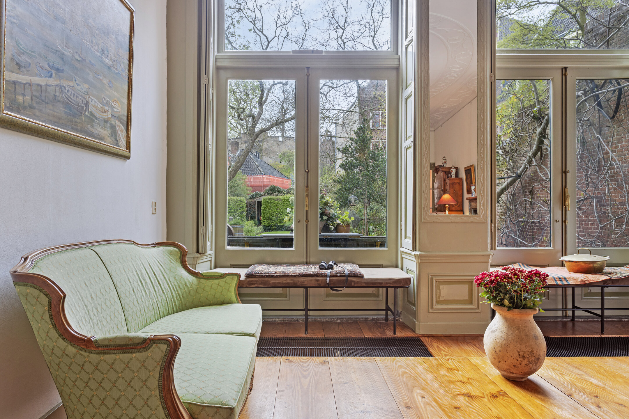 Set on one of the city's most enchanting streets, the house quietly commands its place amid quiet avenues and enduring architecture. Dating to the early 18th century, many original details remain. The home was thoughtfully renovated around 1900 by architect Leo van der Laan, whose additions—such as the distinctive steel and glass roof—merge subtle innovation with heritage. In 2013, a comprehensive sustainability upgrade renewed the roof and insulation, separated the heating systems between the front and rear house, and enhanced gutters and drains. Recent exterior paintwork ensures the residence retains both its integrity and grace.