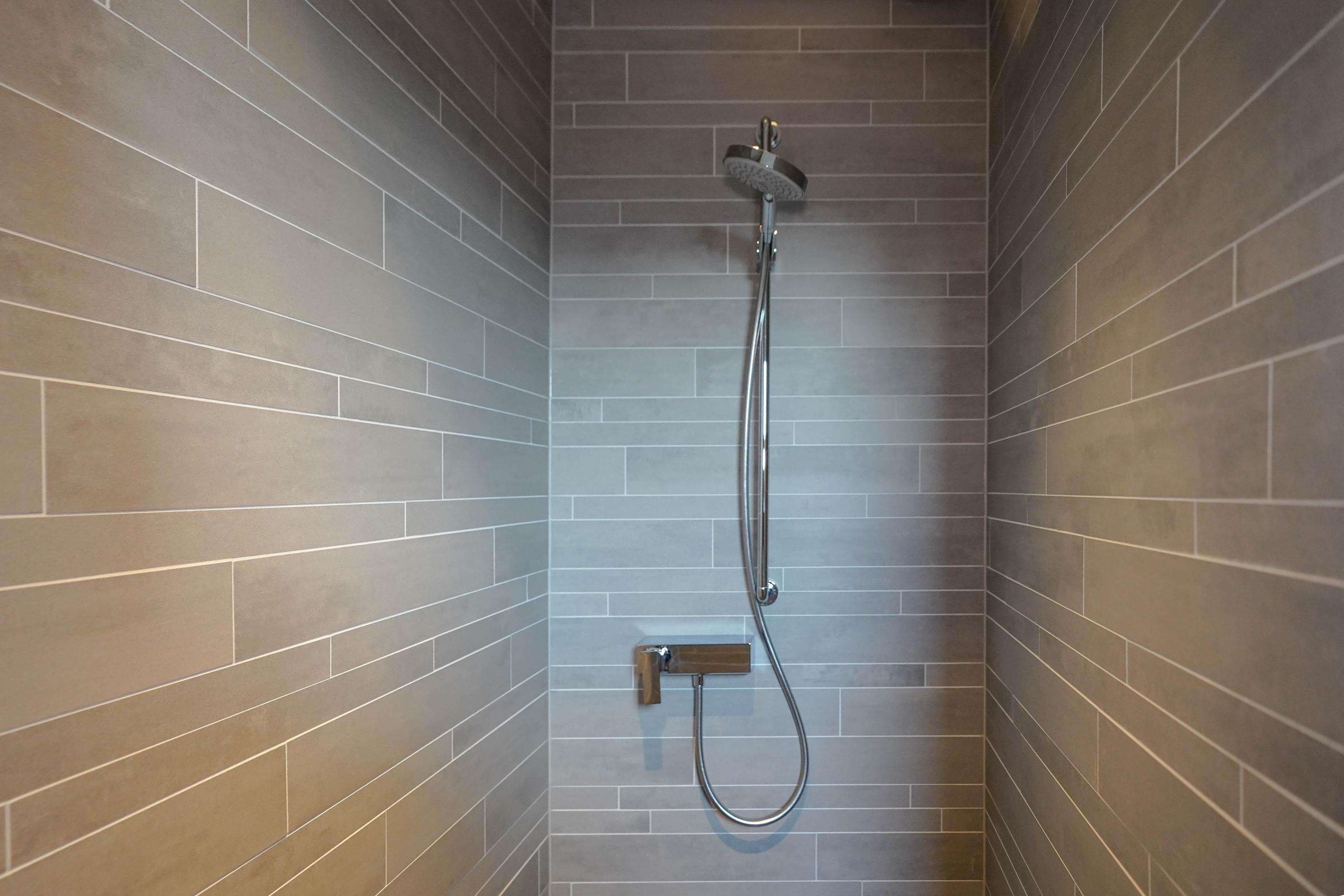a bedroom with a modern en-suite bathroom, as well as a separate toilet. At the
