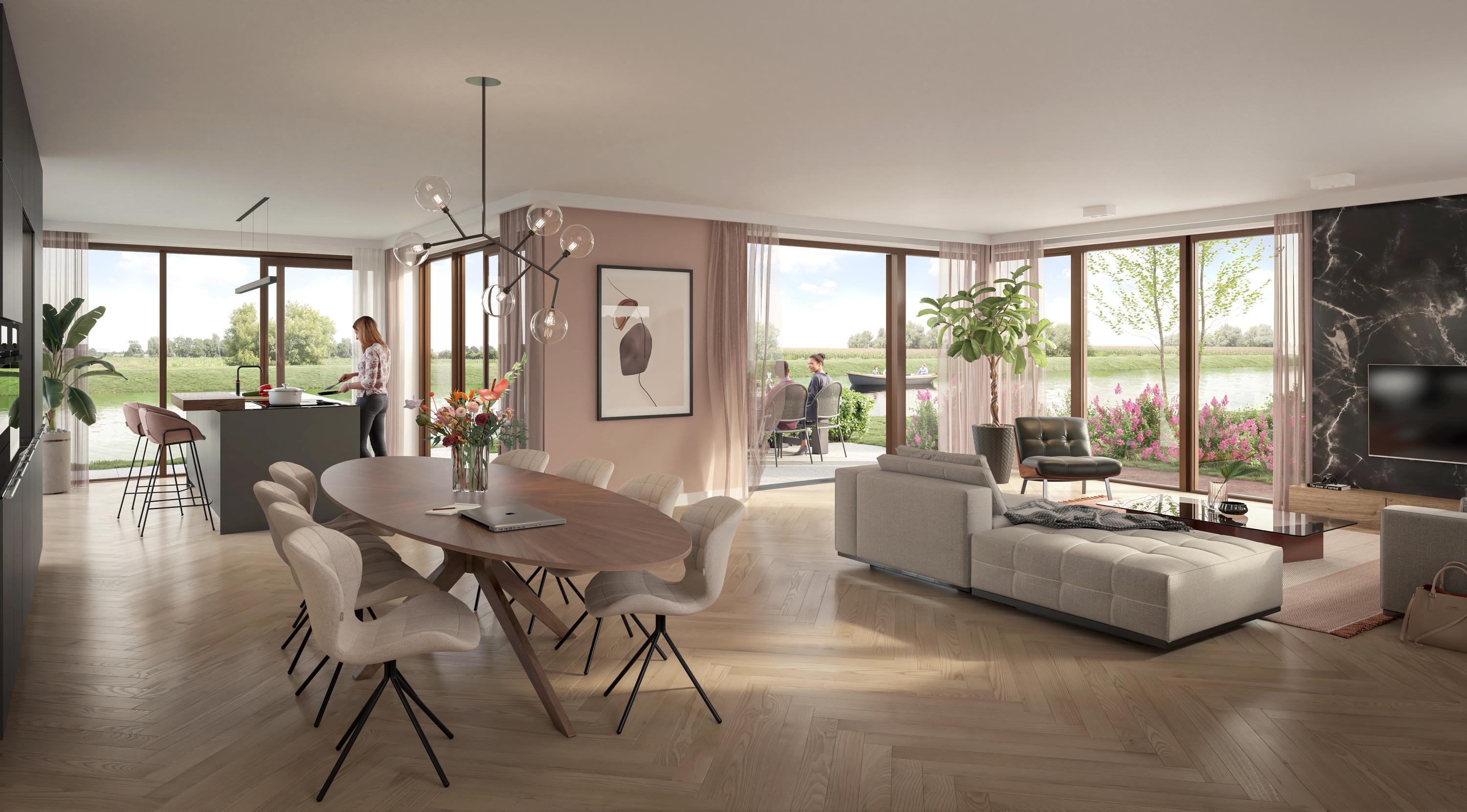 With this extended villa, it all starts outside: on the spacious plot with water on two sides, the sunlight that beautifully surrounds it, and the views over the waterway and meadows. You immediately feel that this is a place you love to come home to.