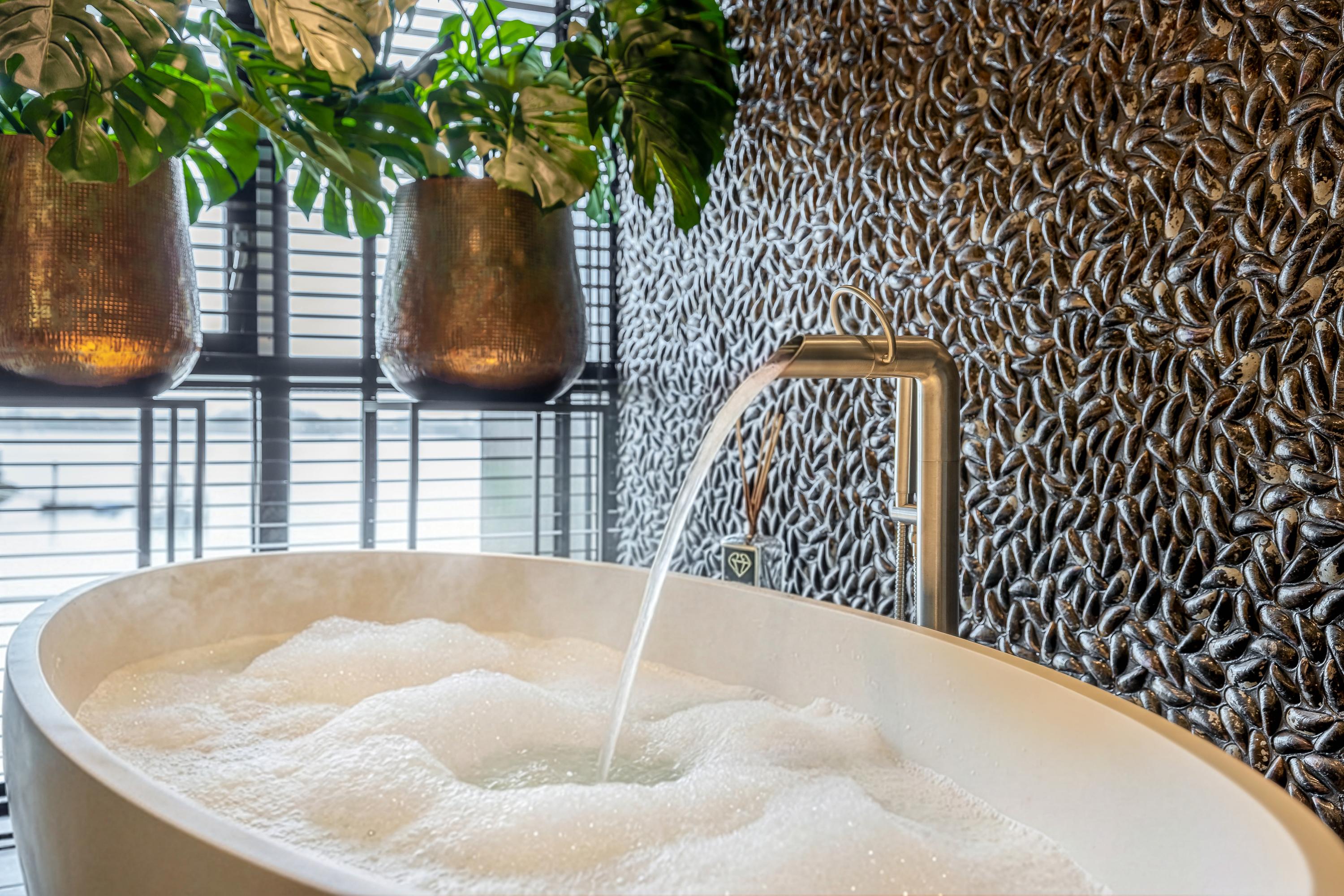 The villa features three very spacious bedrooms, spread across the floors. Each bedroom has its own luxurious bathroom and a walk-in closet. This ensures optimal comfort and privacy, both for residents and guests. The master bedroom is a true suite, offering space, tranquility and a beautiful view over the water. The bathrooms are stylishly finished and fully equipped, creating a luxury hotel feeling every single day.