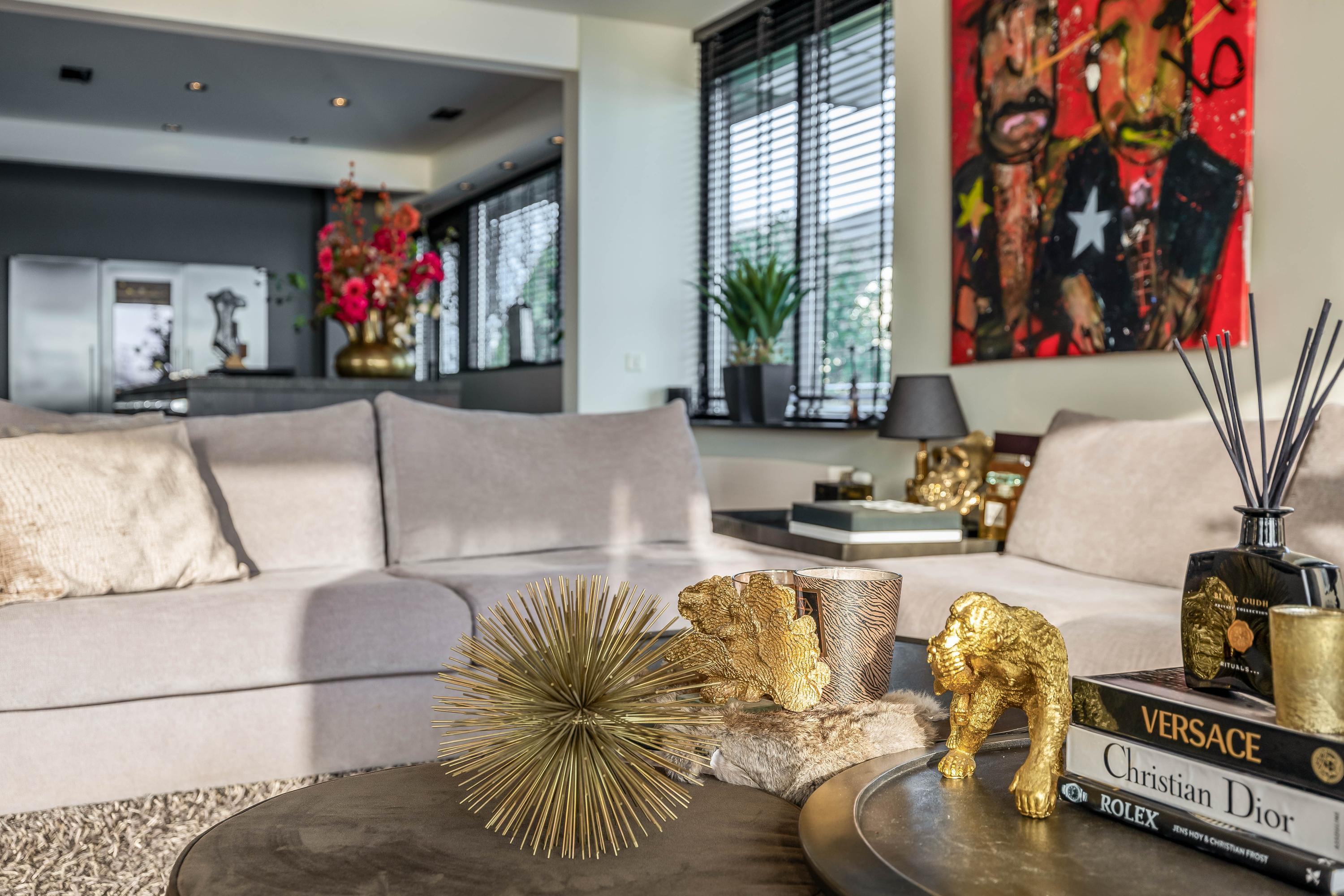 The kitchen forms the stylish centerpiece of the home. This is a place where cooking and spending time together come together effortlessly. The layout is spacious, with plenty of workspace and high-quality built-in appliances. Ideal for everyday use, but also perfect for those who love entertaining and cooking extensively. The finish is luxurious and warm, matching the character of the villa.