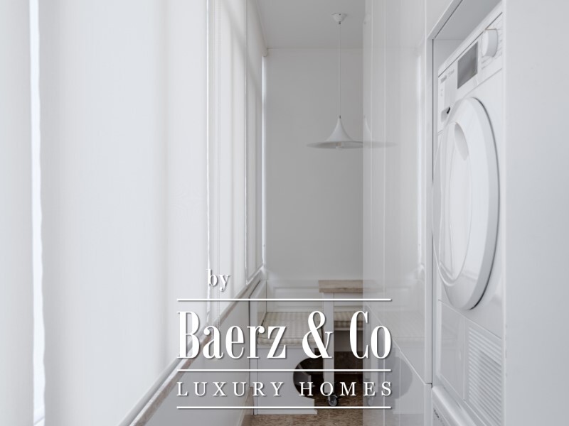 The fully equipped kitchen is anchored by natural stone counters and a functional centre island, providing a welcoming stage for culinary and family moments. An expansive entrance hall guides the sense of arrival, connecting to a dining room, laundry area and additional balconies that draw in city light. Amenities include an elevator, air conditioning in every room, central heating and two parking spaces, as well as a storage room and on-site porter.