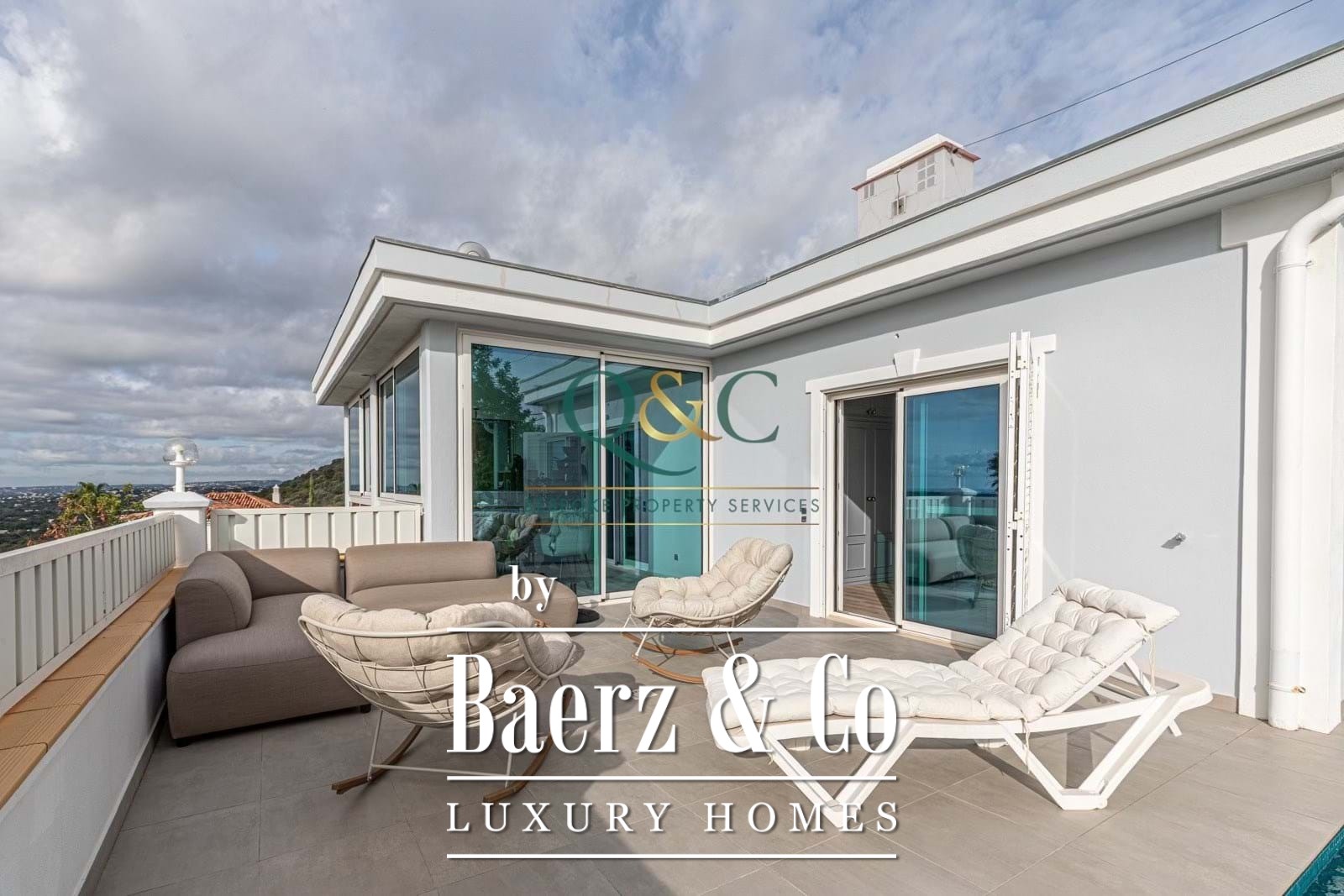 Sitting on 900 m² of the main plot, the property also includes an adjacent building plot of approximately 600 m², offering future opportunities from guesthouse construction to expanded gardens. Features such as air conditioning, solar hot water, security, fireplace, and built-in garage further support comfort. With panoramic sea and countryside views and a versatile layout, this detached villa Loulé is suited for family life, multi-generational living, or as a luxury villa for sale in Loulé appealing to discerning investors.