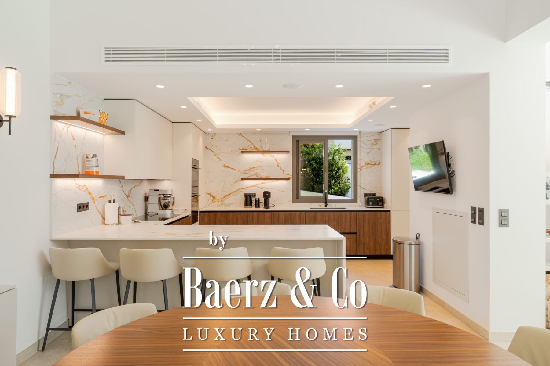 Carefully landscaped grounds enclose a private, heated swimming pool and generous terraces equipped with an outdoor kitchen, dining area, and chill-out zones for timeless alfresco living. Features such as underfloor heating, zoned air conditioning, and advanced security meet the expectations of international buyers. The villa offers total privacy while maintaining proximity to top international schools, Marbella Sports & Tennis Club, and seamless AP-7 motorway connectivity.