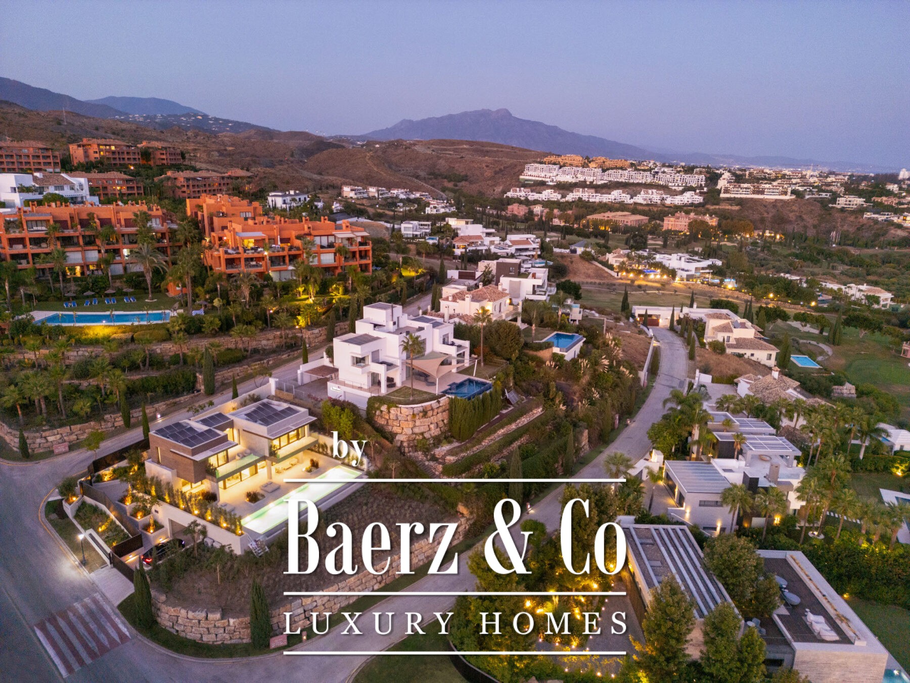 Villa Marbella in Los Flamingos is an architectural sanctuary set within a coveted gated community, embracing 540 m² of refined living space on a 1,330 m² plot. This villa Marbella in Los Flamingos welcomes you with five spacious bedrooms and five bathrooms, balancing sophisticated comfort with a sense of ease. Clean modern lines echo throughout, from the Modulnova kitchen to the polished concrete staircase and expansive Schüco windows, opening interiors to the Andalusian light.
