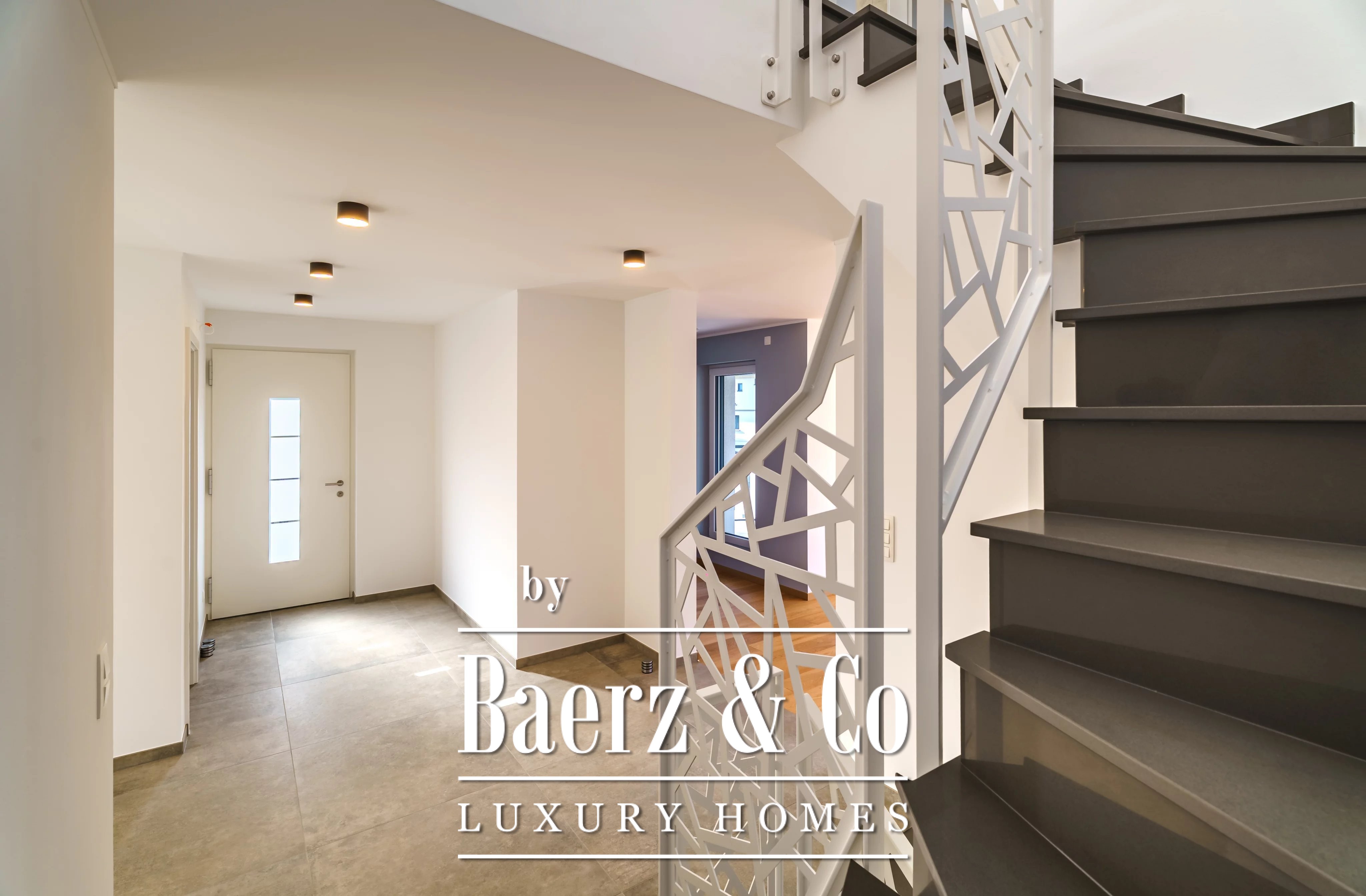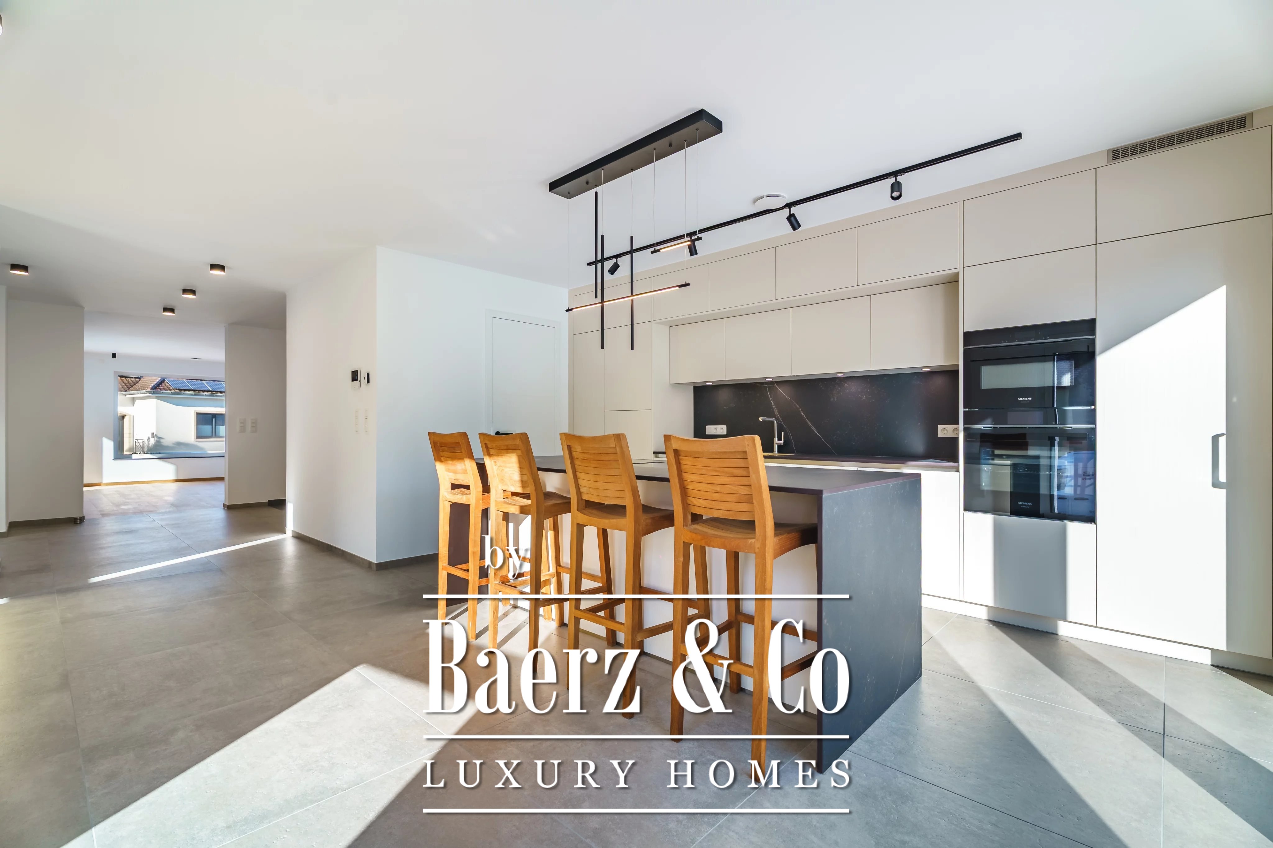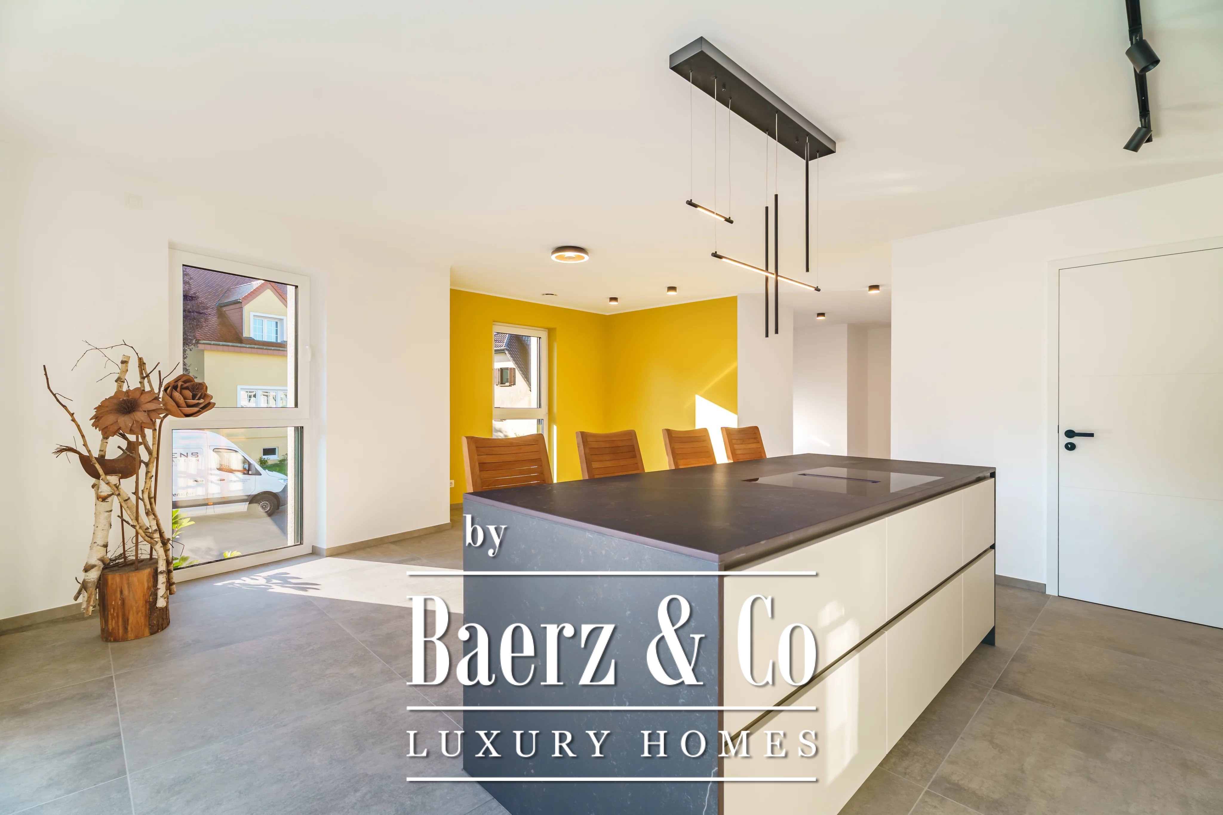 Single family house Niederanven offers a contemporary design nestled in a peaceful setting at the end of a cul-de-sac, presenting a sense of privacy and connection to the countryside. This property, constructed in 2025 by WANSART CONSTRUCTION, spans a living area of 193 m² excluding garages, set upon a 379 m² plot.