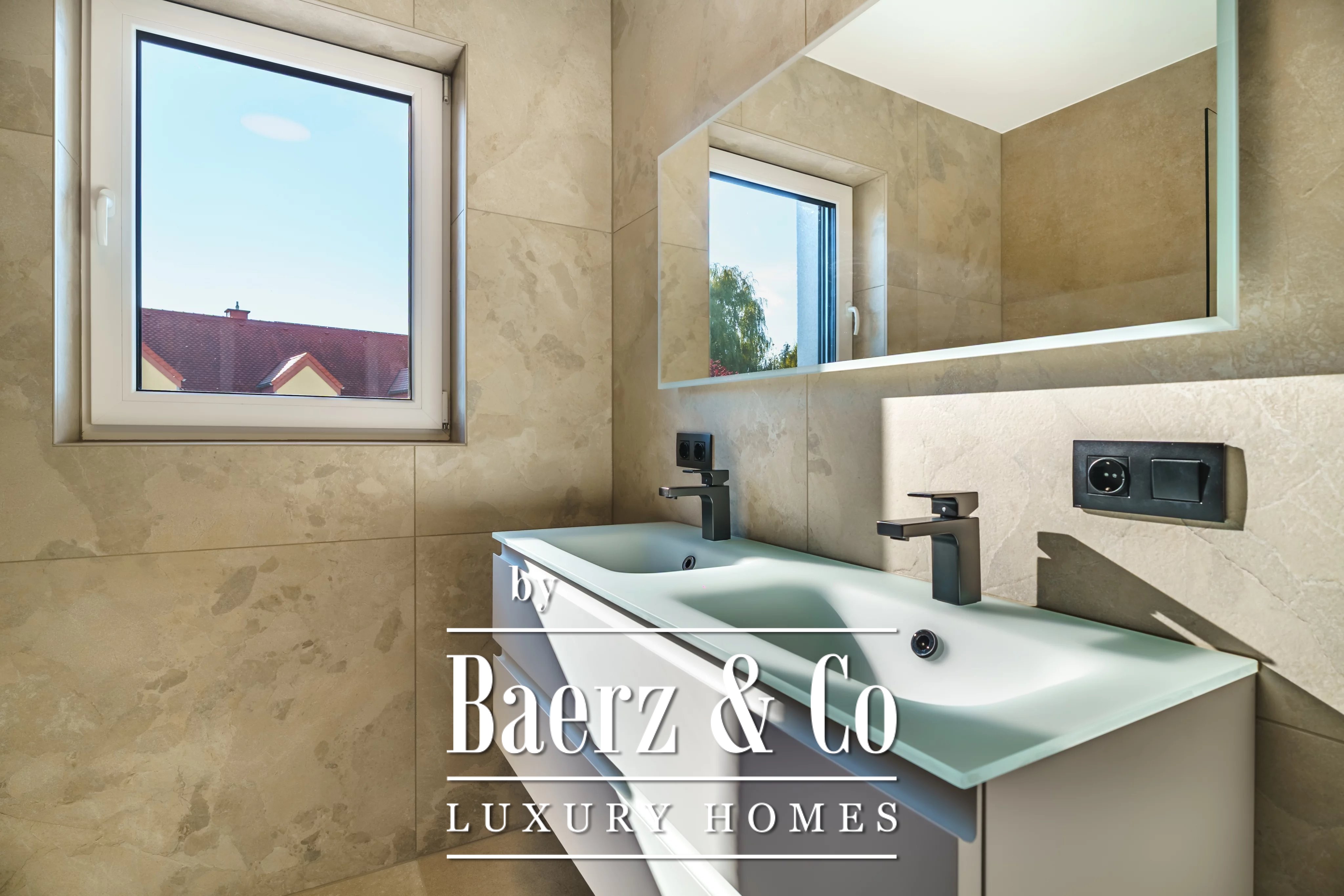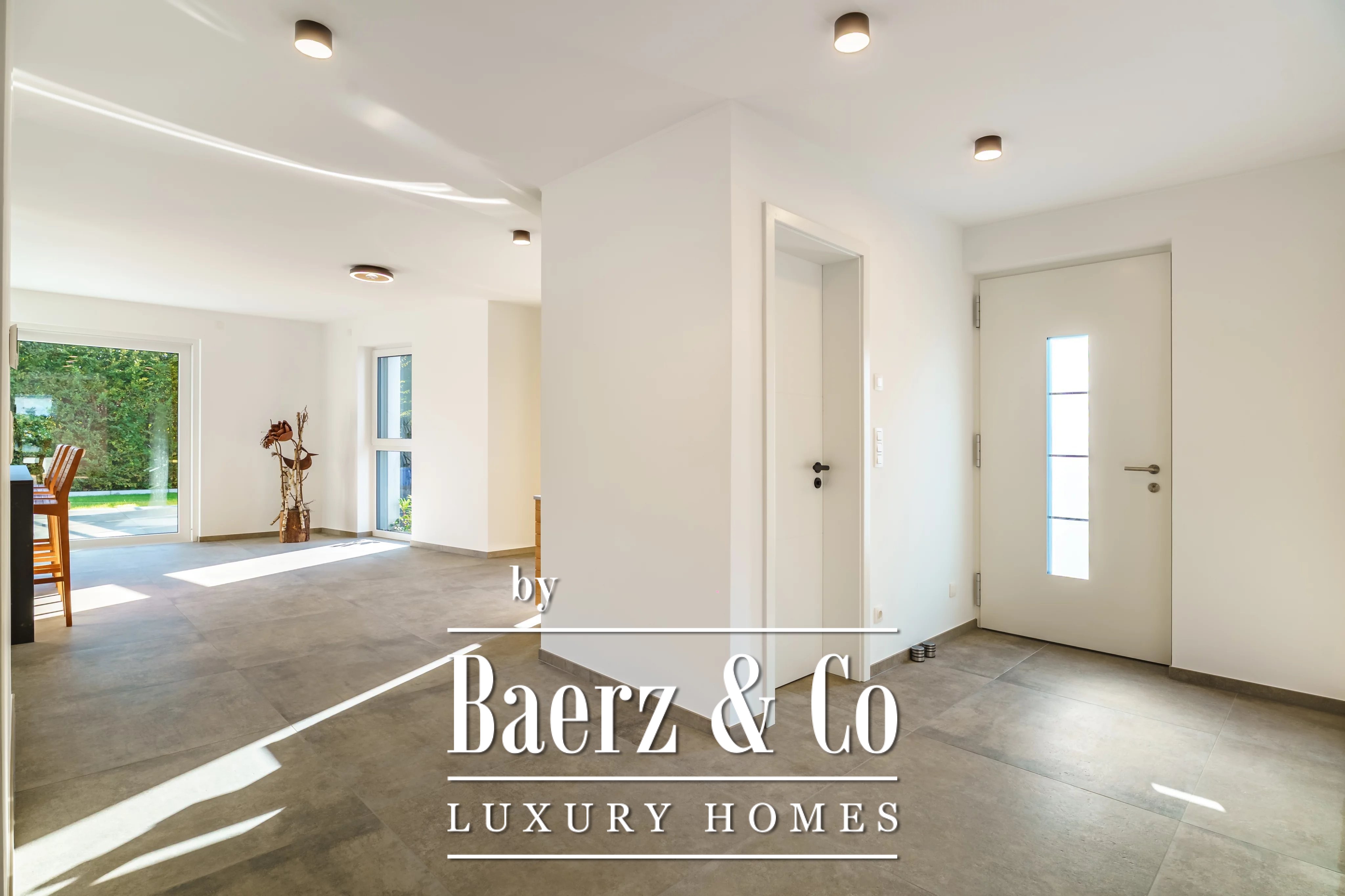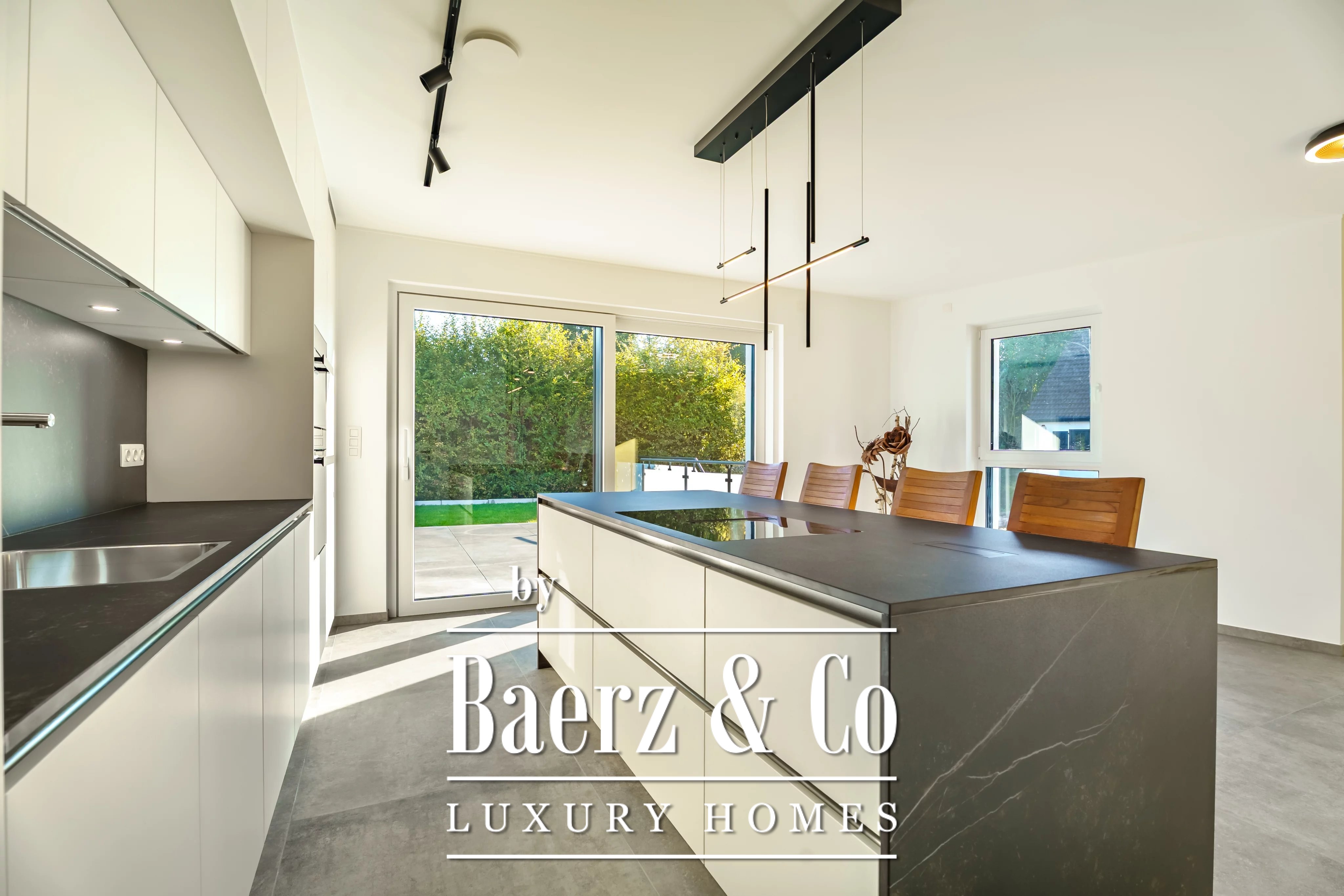Single family house Niederanven offers a contemporary design nestled in a peaceful setting at the end of a cul-de-sac, presenting a sense of privacy and connection to the countryside. This property, constructed in 2025 by WANSART CONSTRUCTION, spans a living area of 193 m² excluding garages, set upon a 379 m² plot.