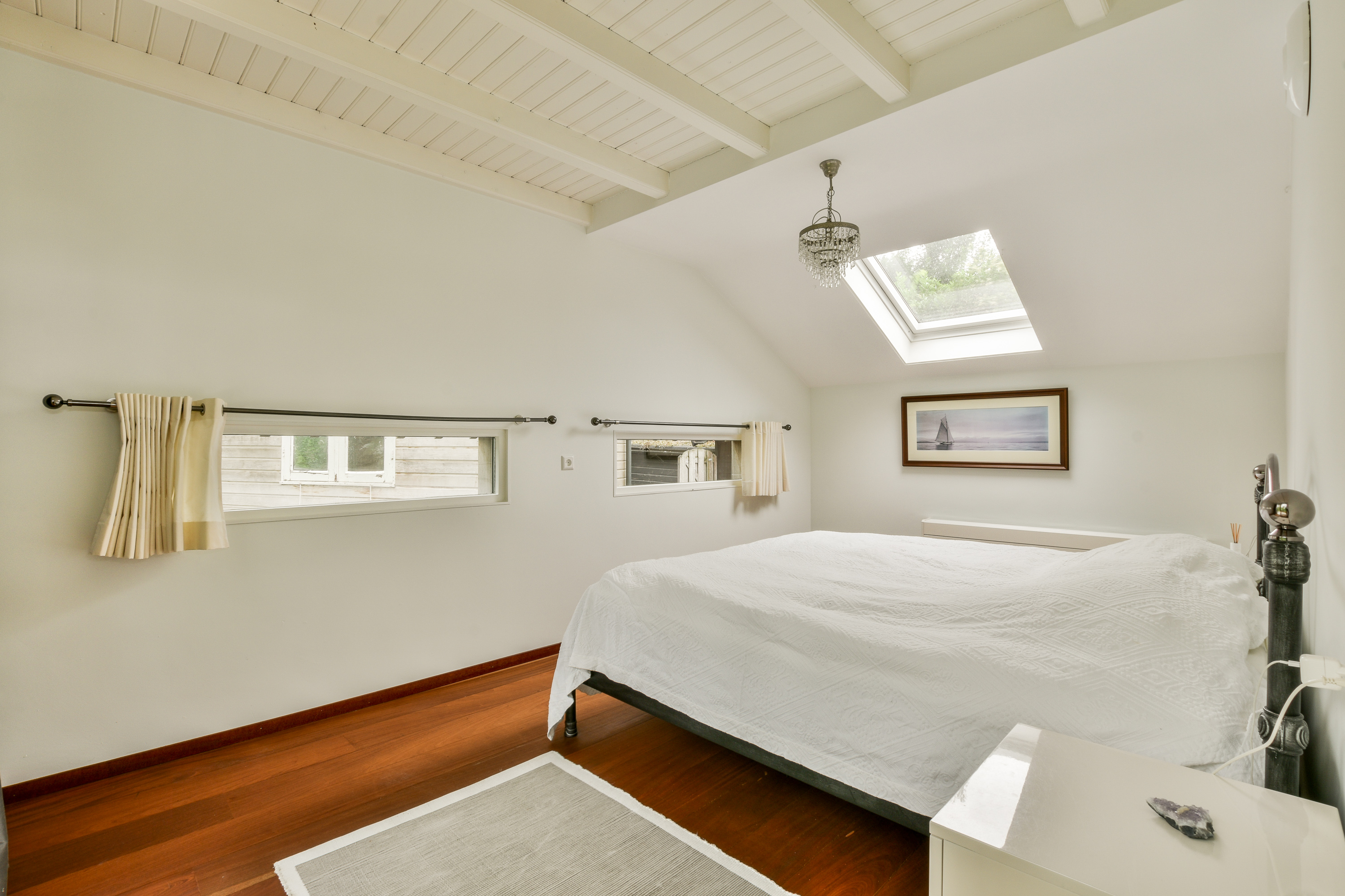 Through an electric entrance gate you enter the lush, private garden surrounding the houseboat. The boat has been fully renovated and stylishly finished, with large windows providing abundant natural light and continuous views of the surrounding landscape.