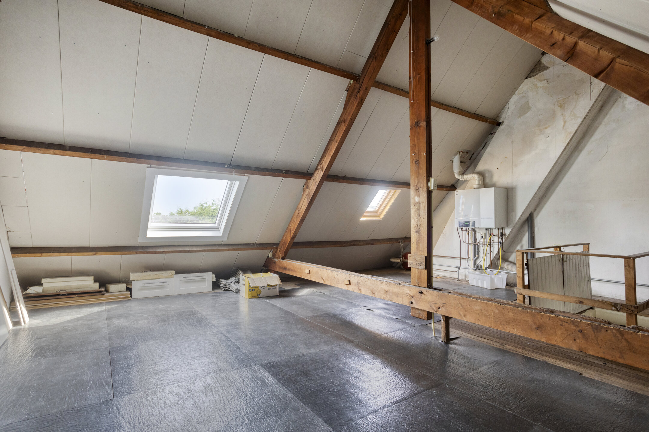 The layout unfolds with a generous living room of approximately 60 m², seamlessly connected to a dining room through en suite doors, each room flowing naturally into the deep, sunlit garden. Seven bedrooms across three upper levels, complemented by two bathrooms, meet the needs of a discerning family or those who value room to breathe. Natural light permeates each space, enhanced by dormer windows and an attic crowned with a 4 metre ridge height.