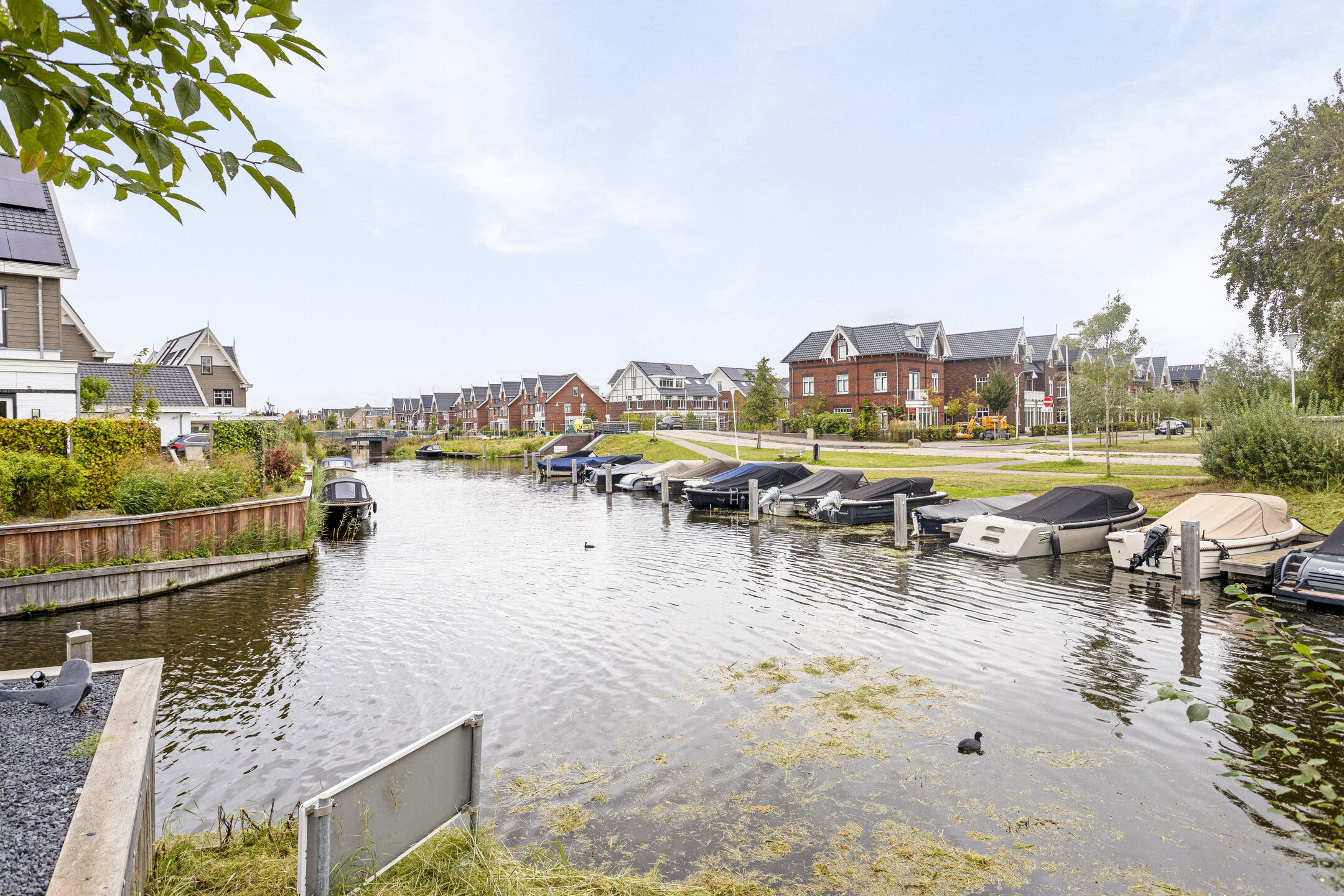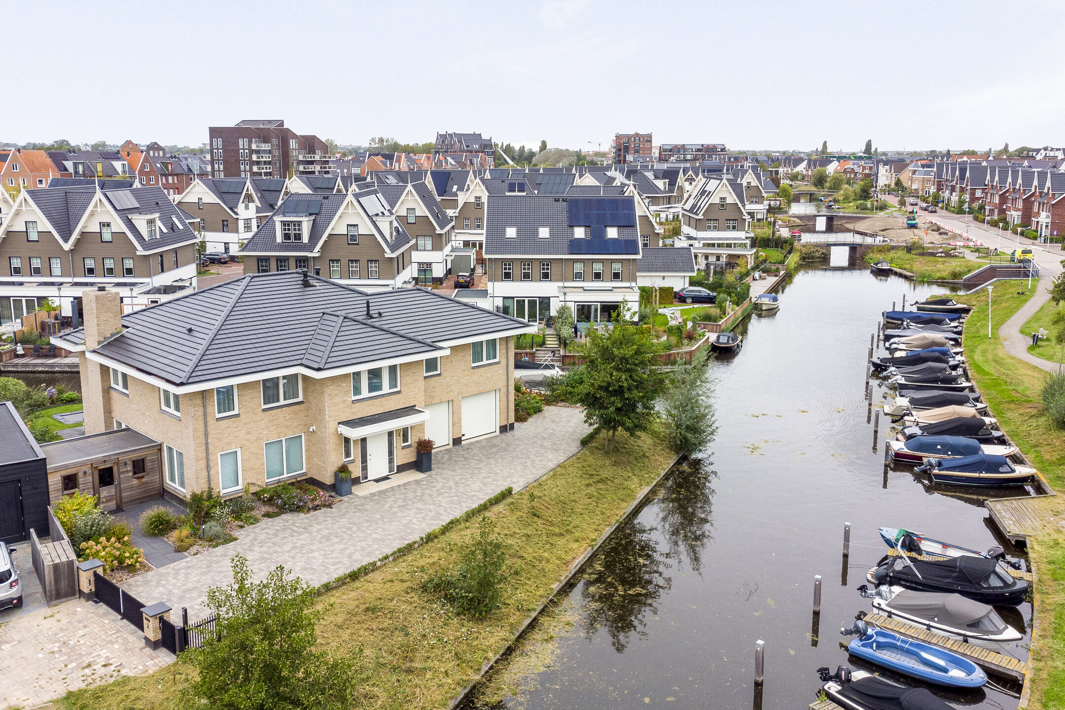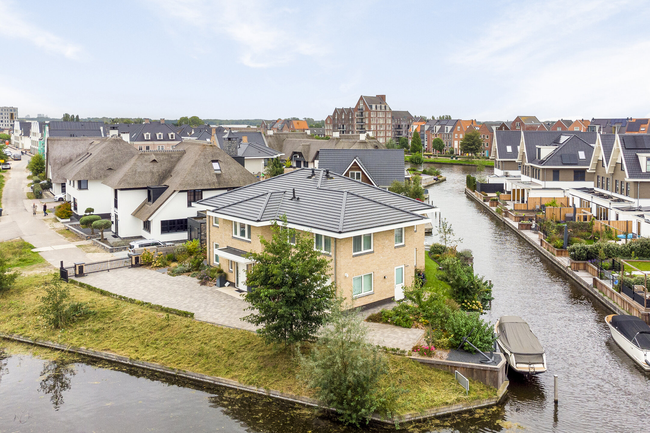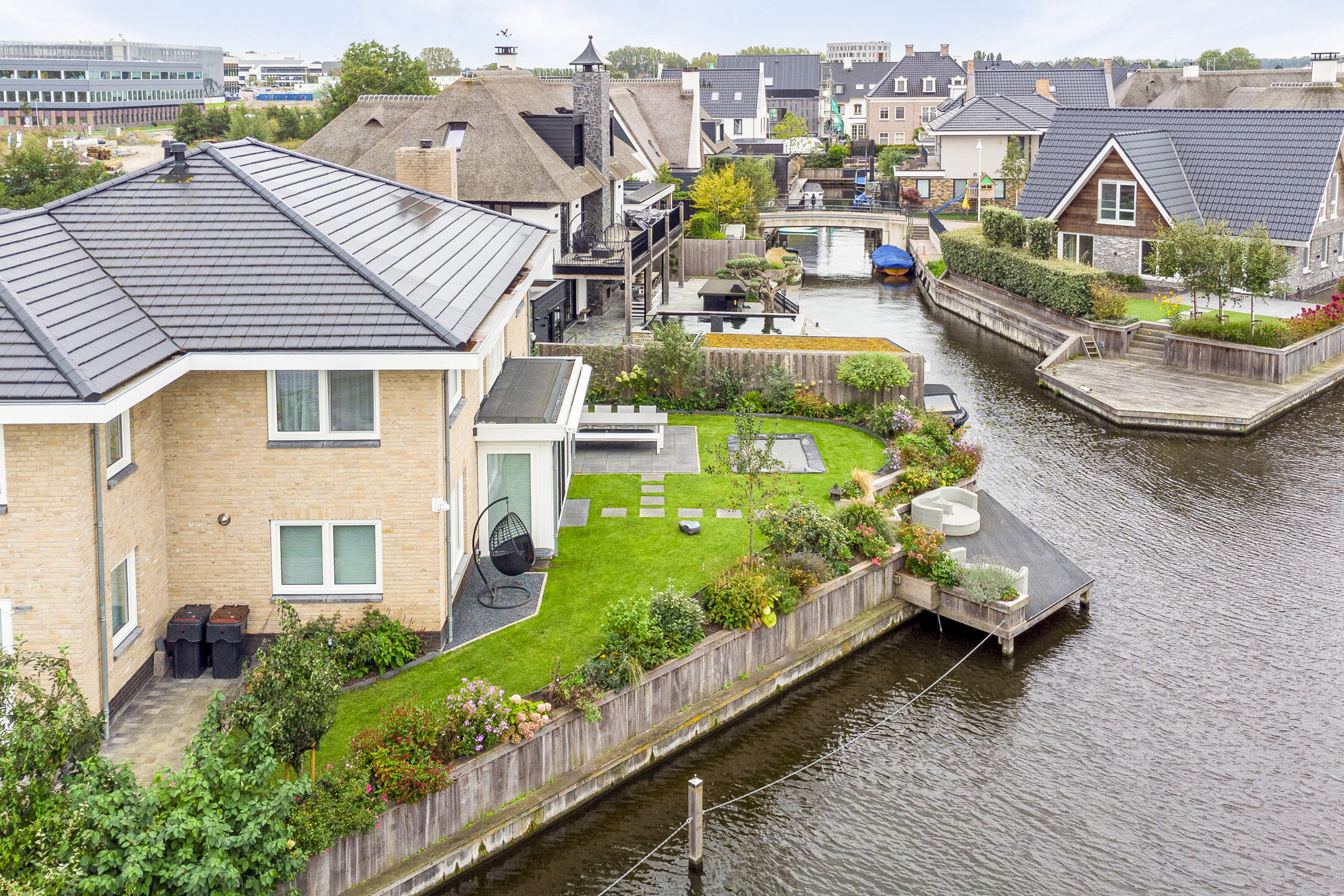 Upstairs, four large bedrooms accompany three elegant bathrooms. The principal suite features an extensive dressing room with crafted storage and a full ensuite. Additional features include a separate laundry, technical room, and a spacious attic. Located near Landskroonpark, with schools, shops, and key amenities easily reached, this luxury villa for sale in Oegstgeest merges a rare waterside setting with true contemporary ease.