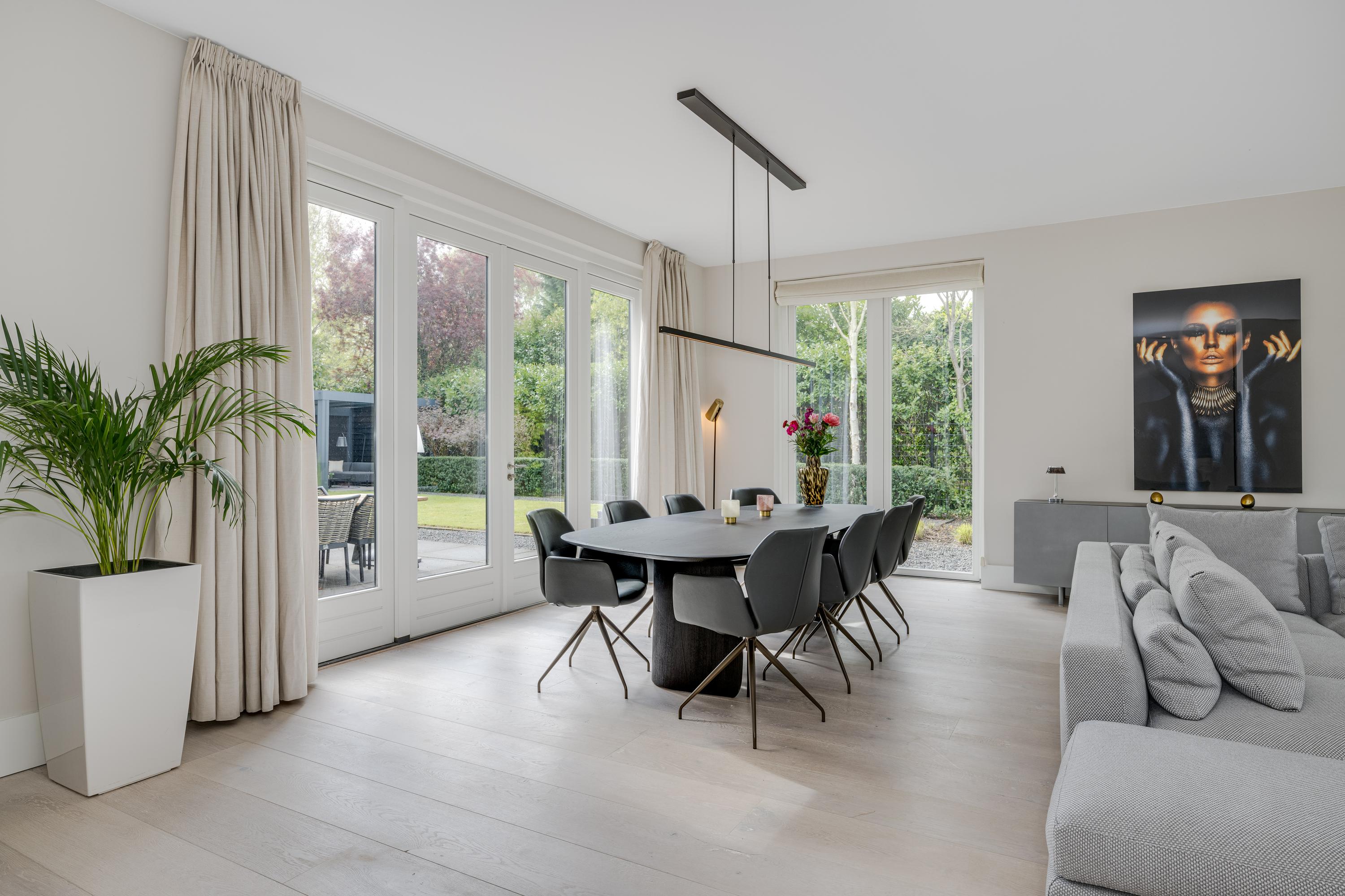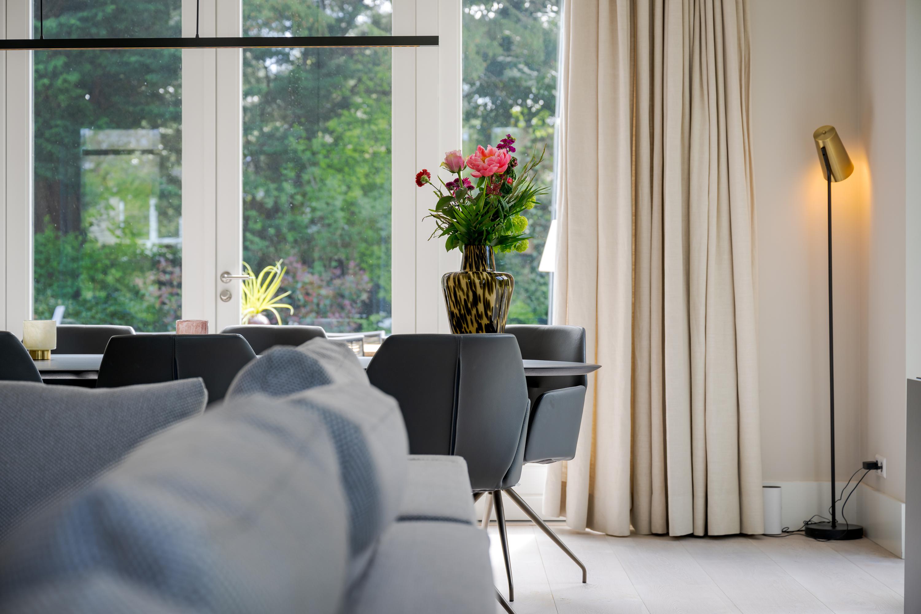 Villa Oegstgeest stands in the tranquil Van Brouchoven Park, a neighborhood rooted in history and renowned for its timeless appeal. This villa, with 272 m² of recently completed living space, gives form to understated luxury and thoughtful architecture, enveloped by a 1,134 m² private garden. The seamless rhythm between light oak flooring and bluestone surfaces echoes through every room, while high windows invite daylight from all aspects and double doors open to the terrace, merging indoors and the sun-soaked landscape.