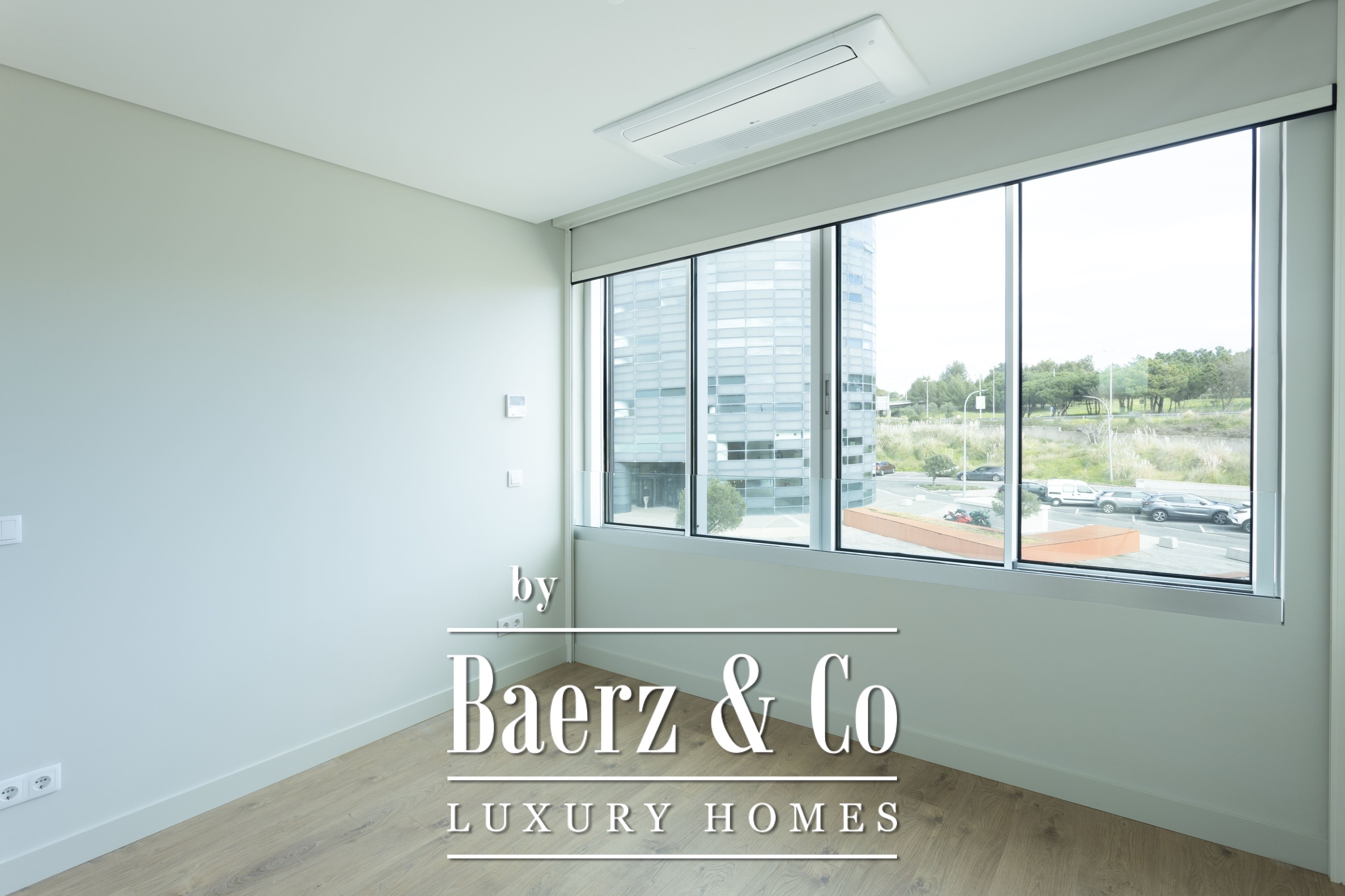 large living room with electric curtains, with access to a balcony, American style kitchen with Electrolux appliances and spacious laundry room with cabinets, sink and washing machine and dryer. All rooms have air conditioning.The condominium is on a quiet street near the Oeiras Parque Shopping Mall and 10 minutes from the beach in Oeiras.