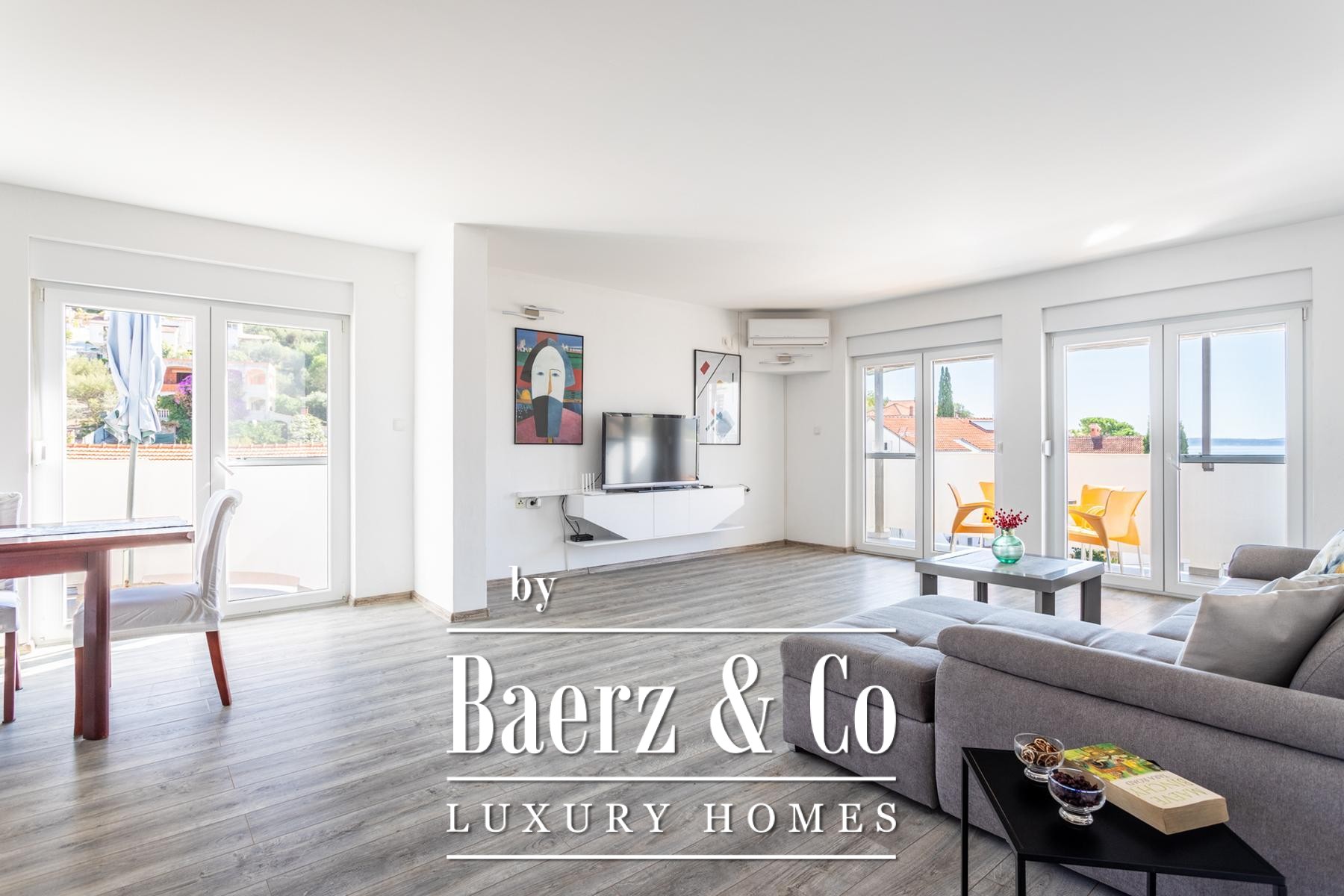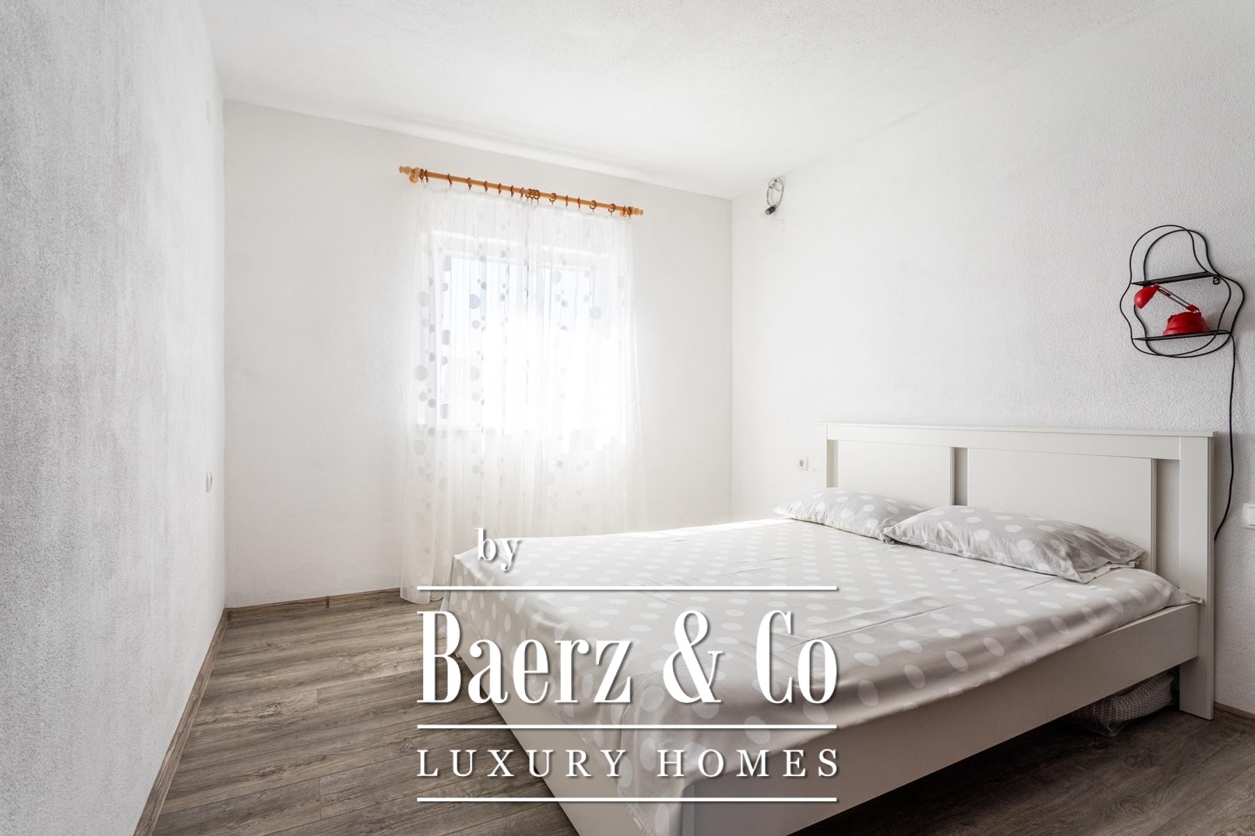 • Outdoor space features a well-maintained Mediterranean garden with olive trees, rosemary, grapevines, palms, and a variety of flowers, creating an ideal setting for relaxation. There is also an outdoor kitchen equipped with a fireplace, sink, and oven - perfect for gatherings in the shade of the grapevine.The apartments face east, south, and west, ensuring plenty of sunlight throughout the day, while the higher floors offer beautiful sea views.Five parking spaces are available directly next to the house.Further information available upon request.