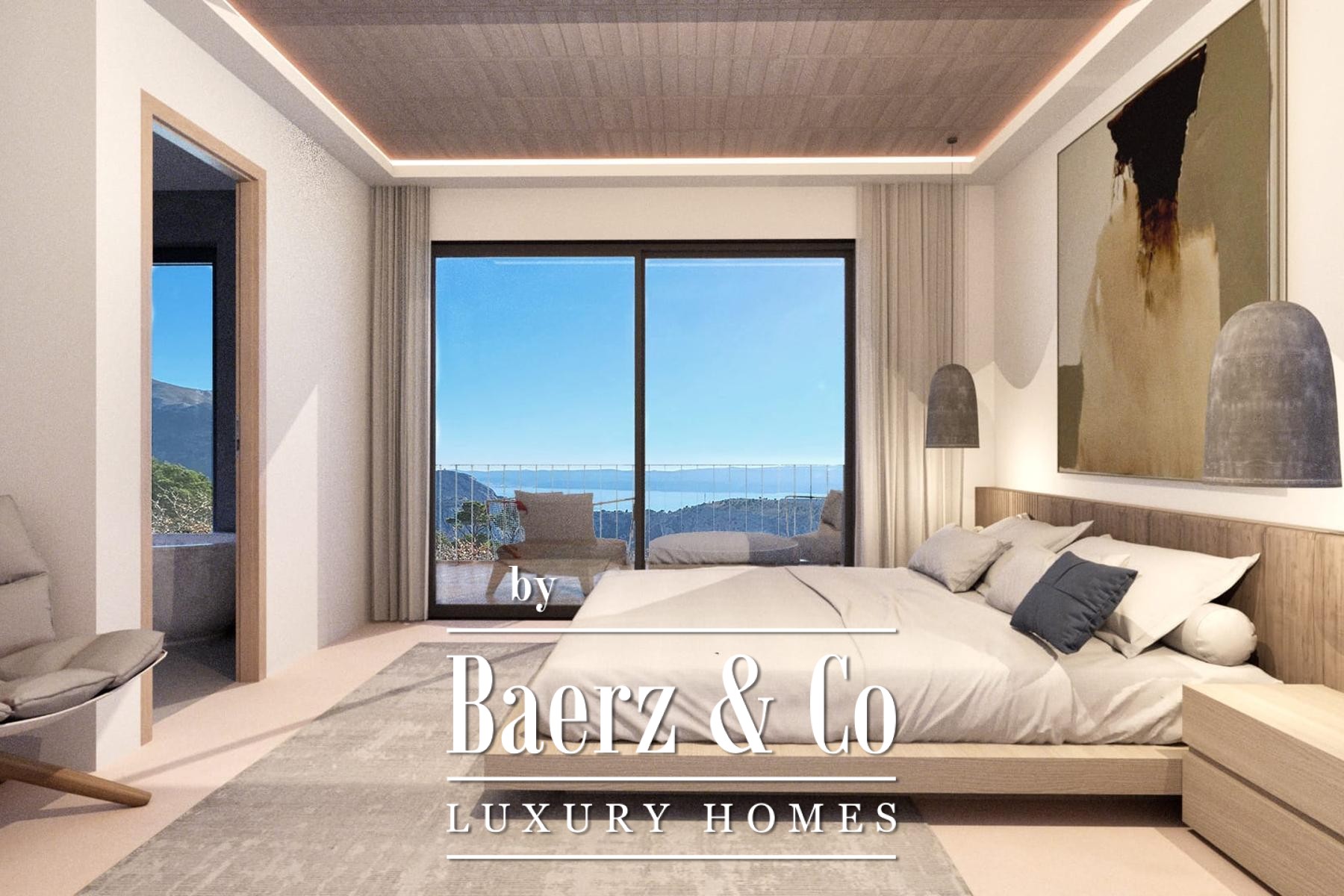 Two master bedrooms feature serene en-suite bathrooms, elegant walk-in closets, and direct access to private terraces oriented towards the Omiš Dinara and the shifting blue horizon beyond. On the ground floor, a flexible multipurpose room is tailored for wellness, guest accommodation, or refined gatherings.