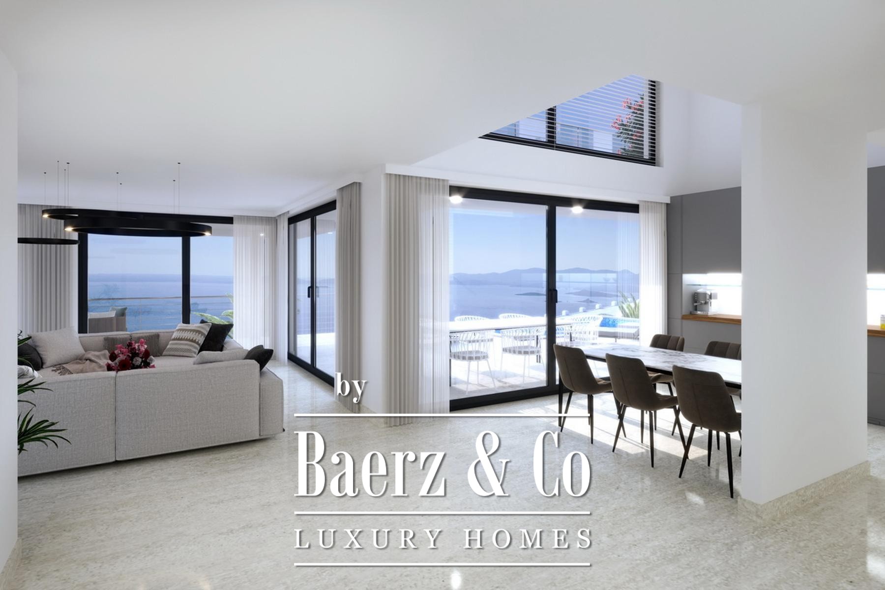 Orebić, project of modern luxurious villas, located on the beautiful southern slopes of the Pelješac peninsula in the oldest protected wine area in Croatia. The villa is located on a plot of 390 m2, consists of three floors with a total of 201 NKP, and consists of a basement where there is a swimming pool and a terrace. The ground floor consists of a covered terrace, covered passage,