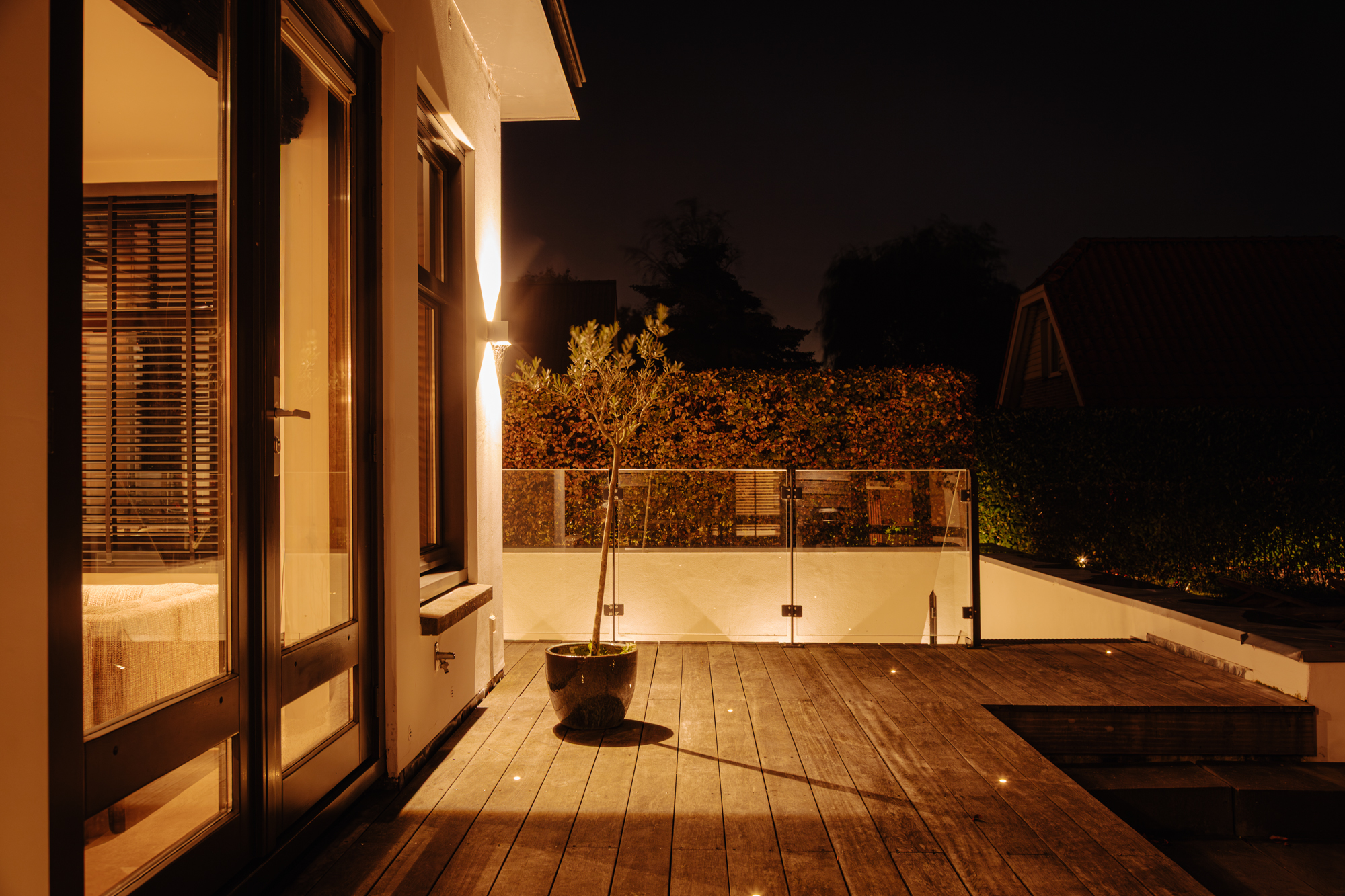 - Perfect sun orientation with all-day sun, high hedges for maximum privacy