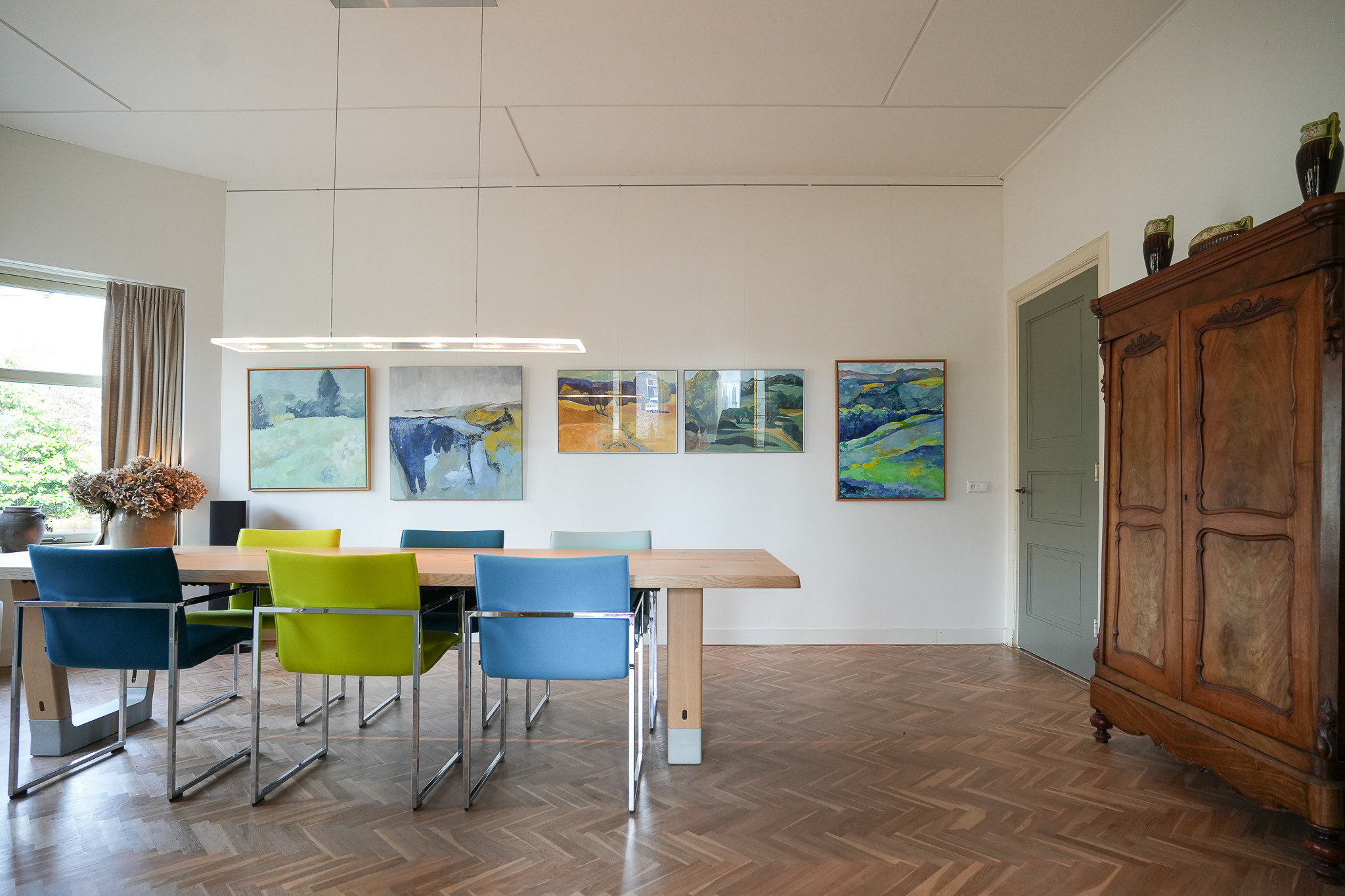 Villa Rossum combines the grace of its 1897 origins with contemporary allure, set within a 2,150 m² nature garden populated with fruit trees and edible plantings. This villa Rossum, designated a municipal monument, offers 277 m² of living area framed by original architectural details, including sliding stained glass doors, high ceilings, a broad main staircase, and crafted cabinetry. Light flows through bay windows to spaces anchored by parquet floors and a wood-burning stove, while a bespoke kitchen connects seamlessly to the garden—a design realized in 2021 to enhance indoor-outdoor living. Throughout the property, authentic features are preserved, balanced with energy-efficiency, resulting in energy class B.