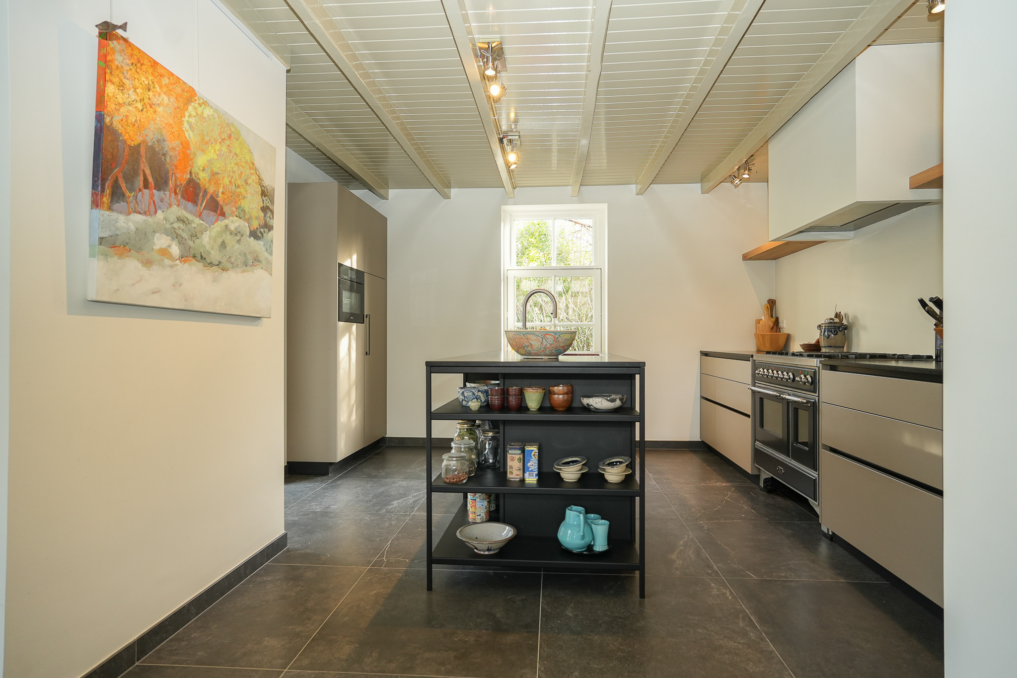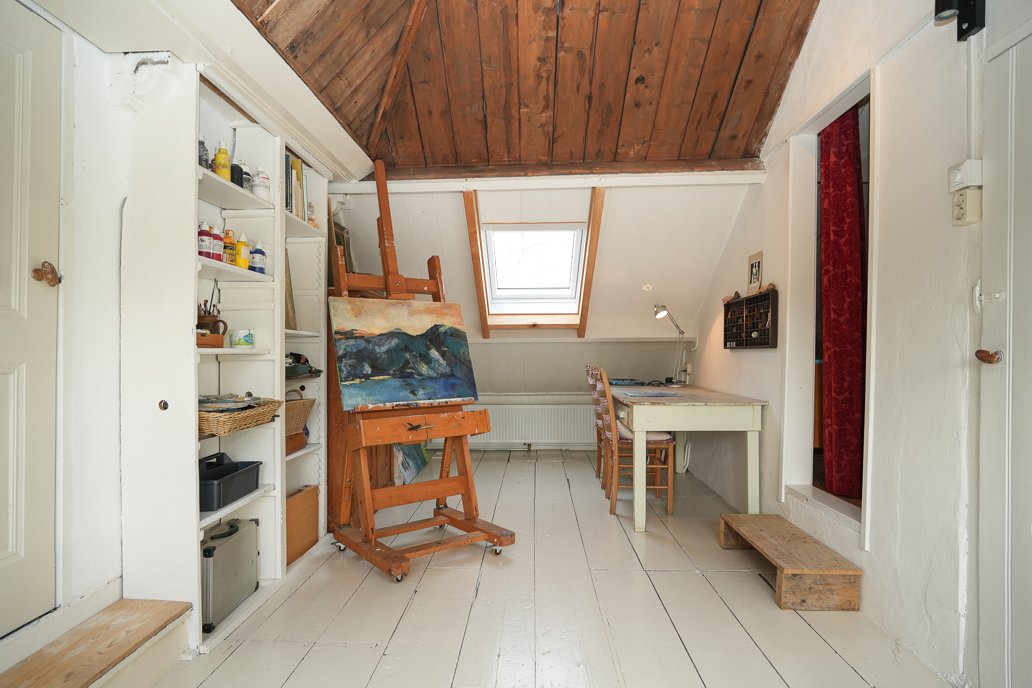 The villa comprises five bedrooms and one bathroom, with rooms thoughtfully arranged for work, rest, or creativity. Elements like an historic washstand with marble and refined cabinetry subtly express the home's legacy, while spaces such as the attic, studio, and a technical area support versatile private and professional uses. The outbuilding and generous, biodiverse garden offer privacy, seasonal color, and an ecosystem alive with birds and wildlife, reflecting the natural rhythm of the property. All amenities—including underfloor heating, mechanical ventilation, double glazing, and solar panels—quietly enhance daily comfort and sustainability.