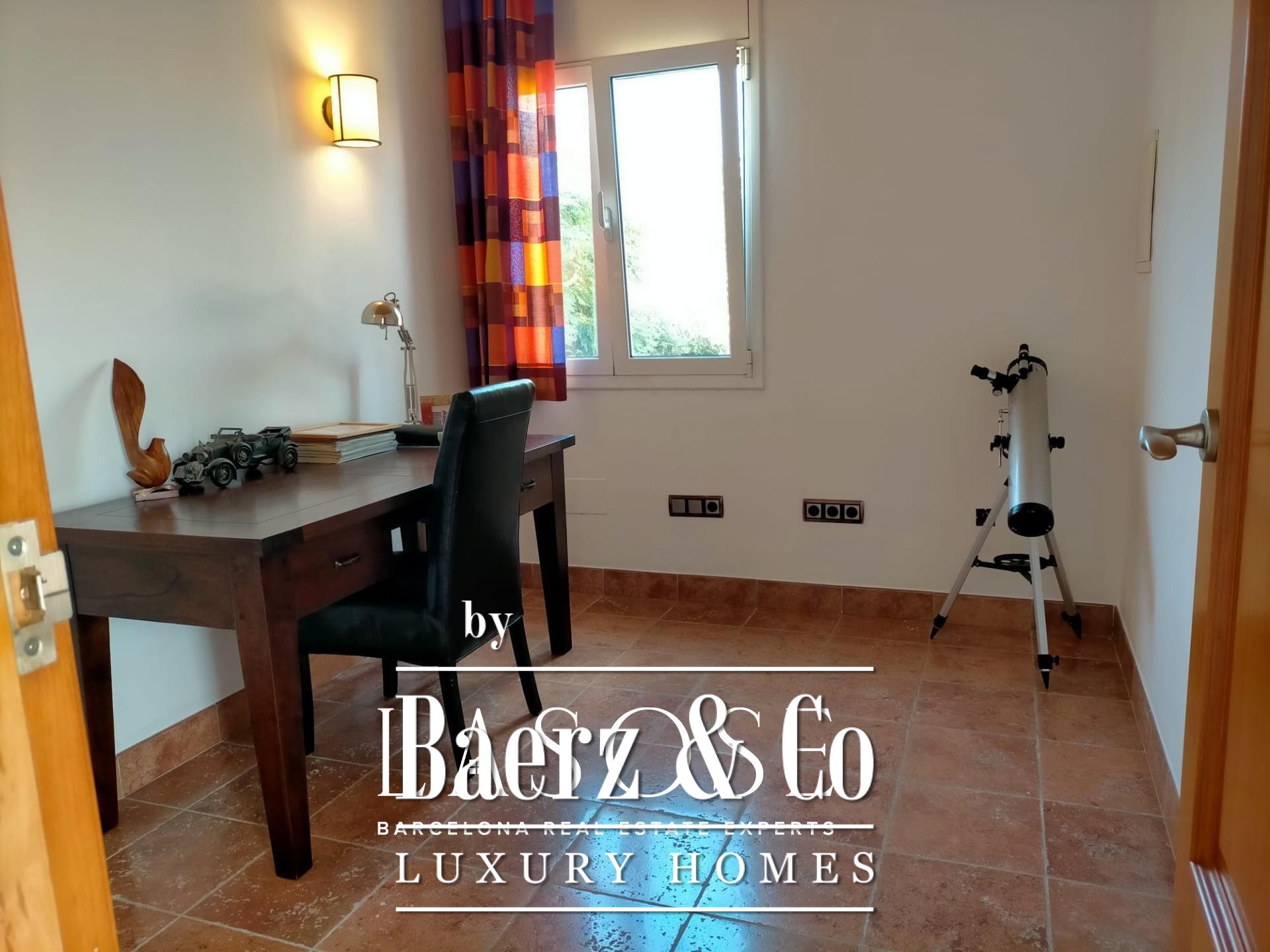 Villa Sant Pere de Ribes is quietly positioned in the esteemed Els Cards residential area, set between Sitges and Sant Pere de Ribes, where privacy and panoramic views define every living moment. This five-bedroom, three-bathroom villa blends traditional Spanish architecture with contemporary refinement. Recently renovated interiors preserve authentic details such as arches and natural textures, while bringing in clean modern lines and warm tones. The open-plan main floor flows across kitchen, dining and living spaces, illuminated by abundant sunlight from windows on two sides. A statement fireplace centers the living area, offering an inviting gathering point year-round.