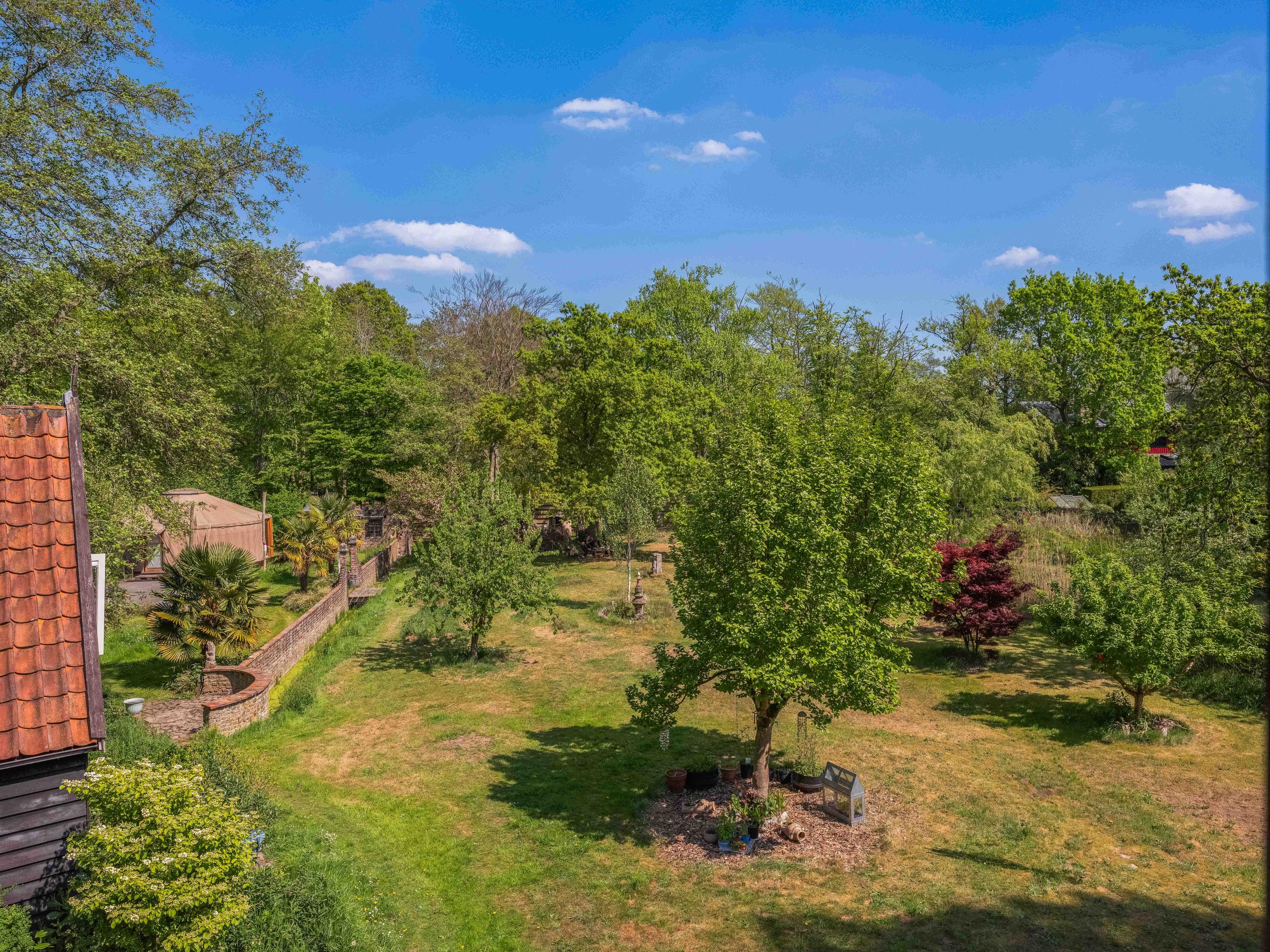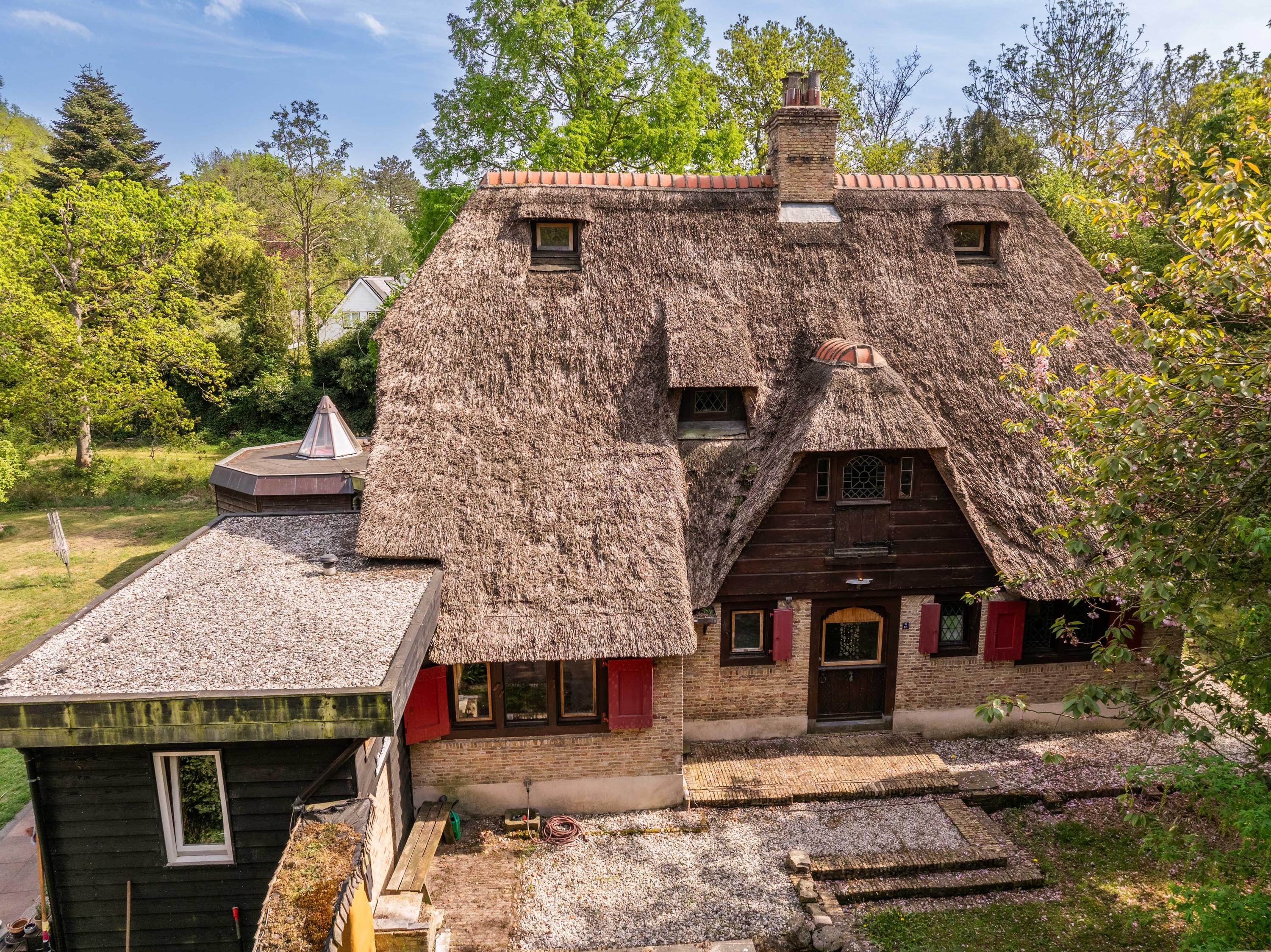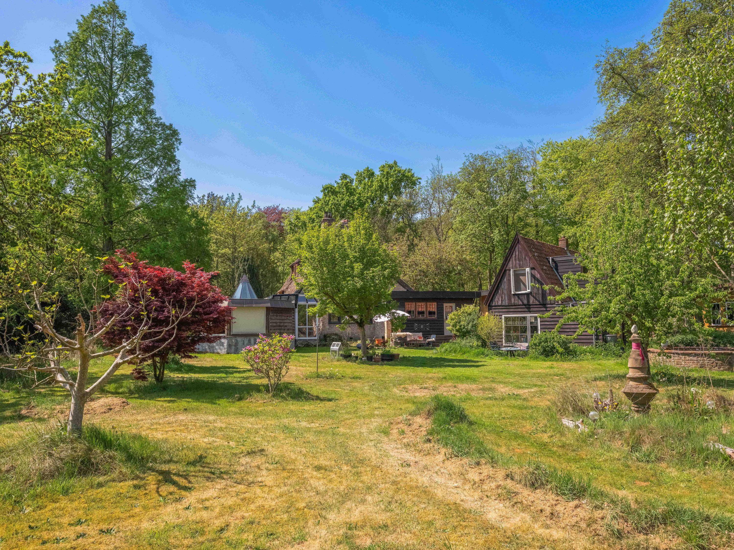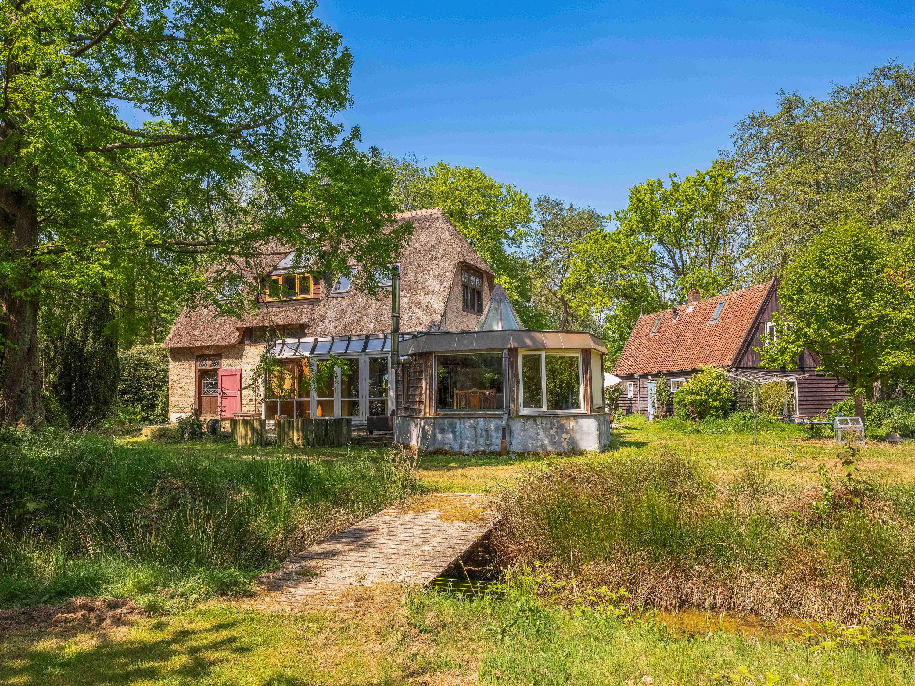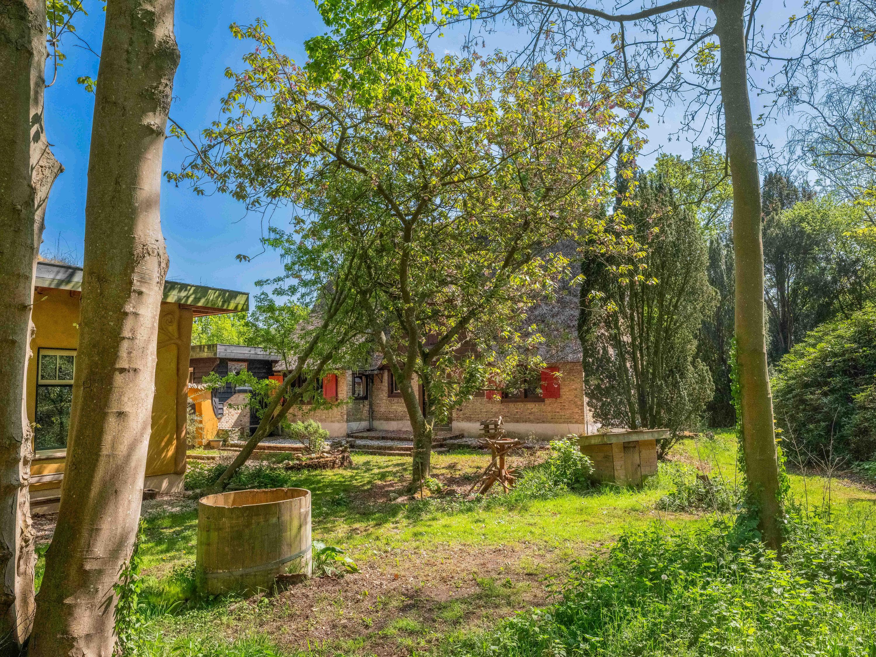The generous plot of over 7,000 m² is a haven of tranquility, entirely enclosed by a moat with multiple dune streams, and landscaped with unique groups of trees in a thoughtfully designed pattern. In addition to the main house, you’ll find a separate, fully functional guest house and several charming outbuildings and covered spaces, making this property a truly unique ensemble. Whether you’re looking to relax, find inspiration, entertain guests, enjoy a cup of tea in the lovely tea pavilion, or bake a pizza in your very own clay outdoor oven – this country home offers it all.