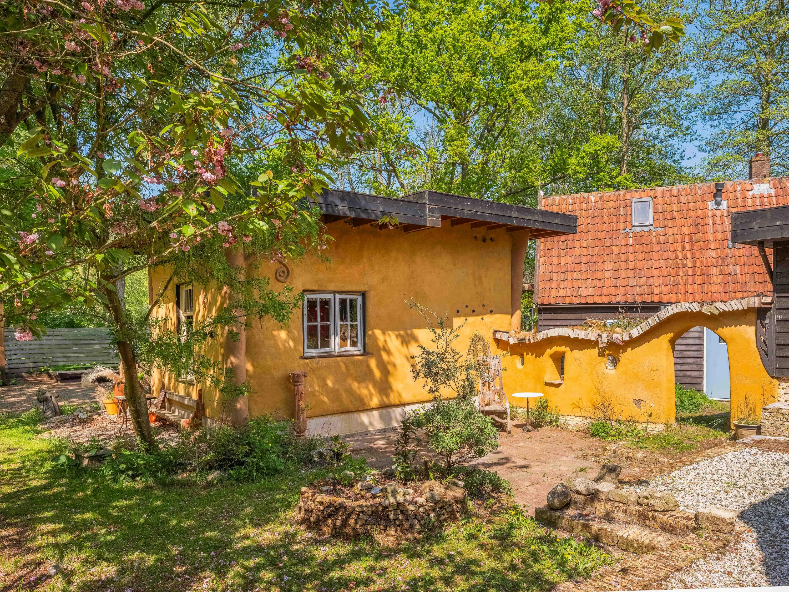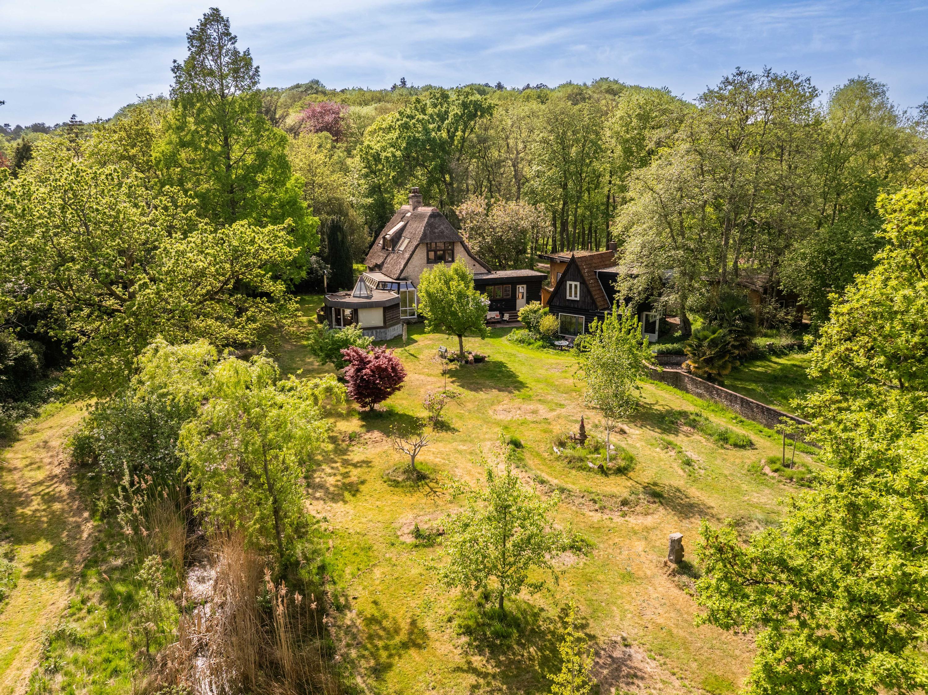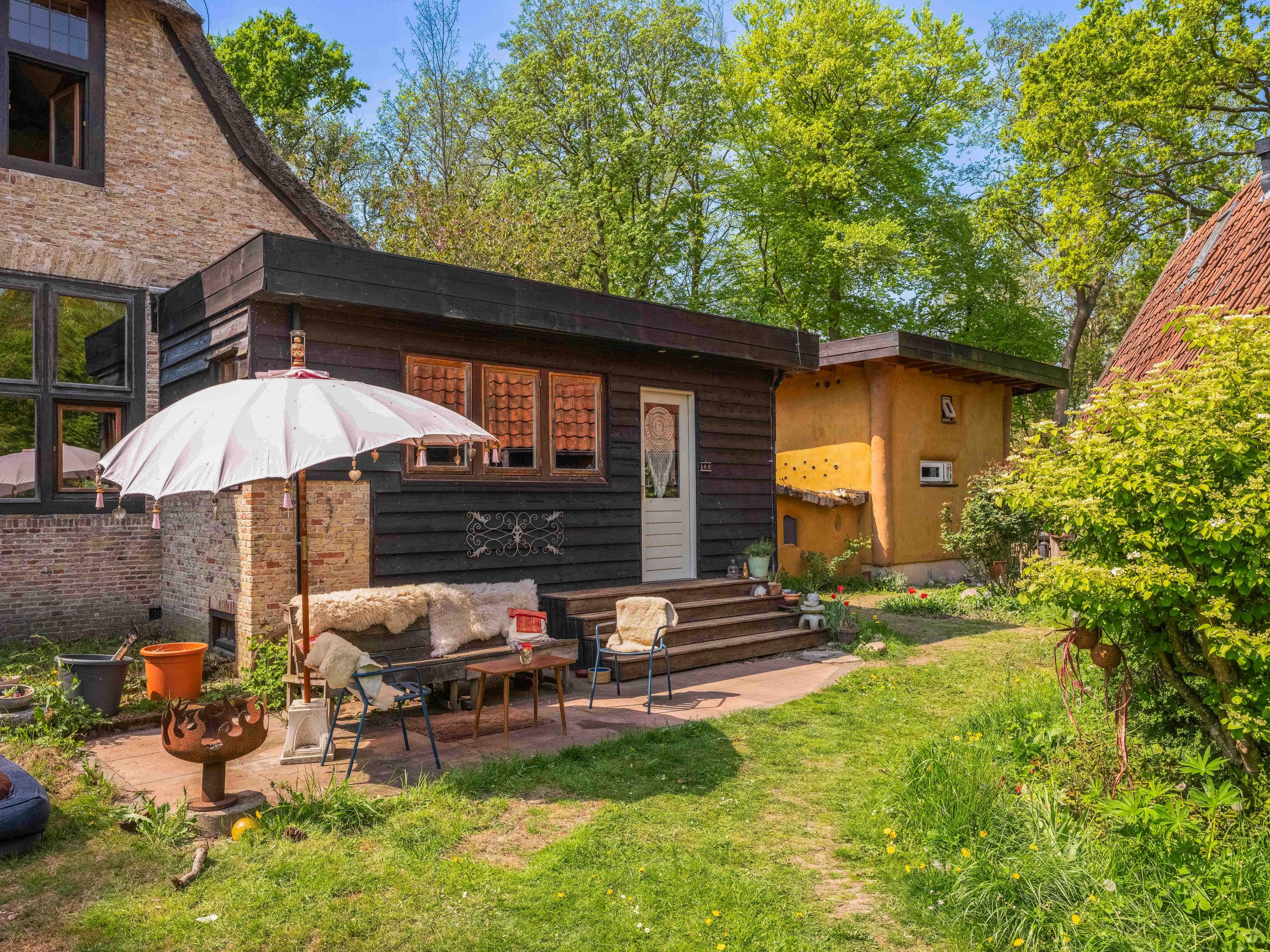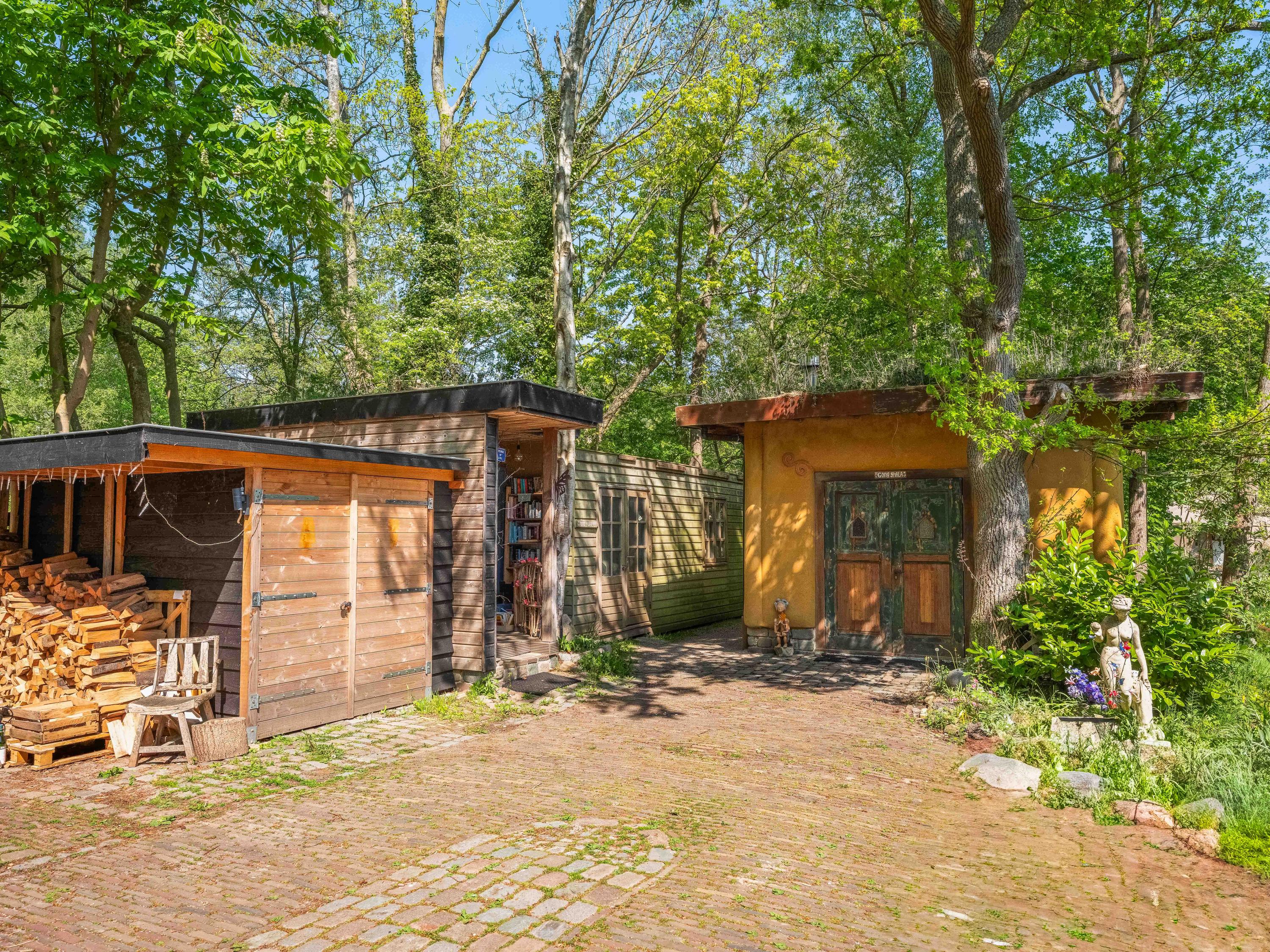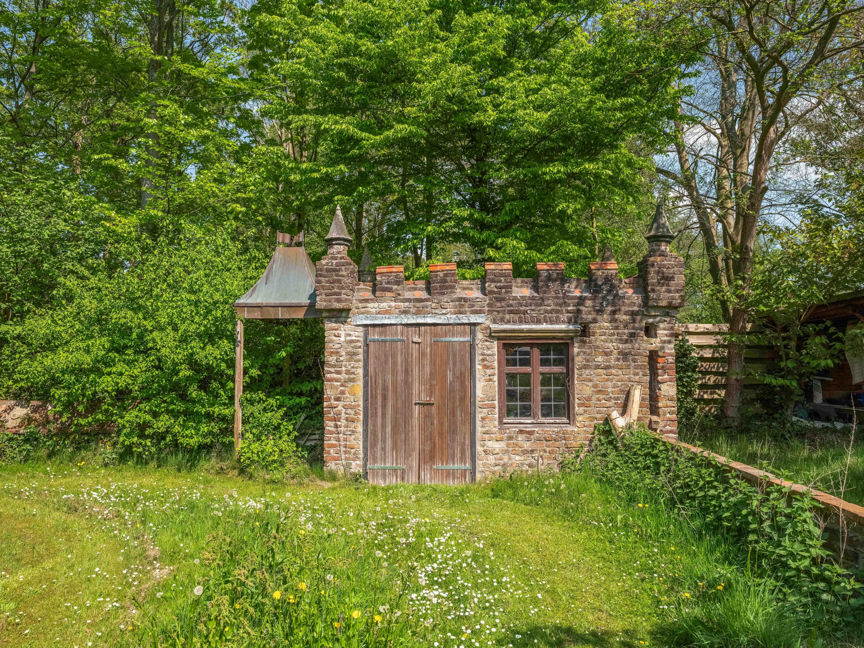The generous plot of over 7,000 m² is a haven of tranquility, entirely enclosed by a moat with multiple dune streams, and landscaped with unique groups of trees in a thoughtfully designed pattern. In addition to the main house, you’ll find a separate, fully functional guest house and several charming outbuildings and covered spaces, making this property a truly unique ensemble. Whether you’re looking to relax, find inspiration, entertain guests, enjoy a cup of tea in the lovely tea pavilion, or bake a pizza in your very own clay outdoor oven – this country home offers it all.