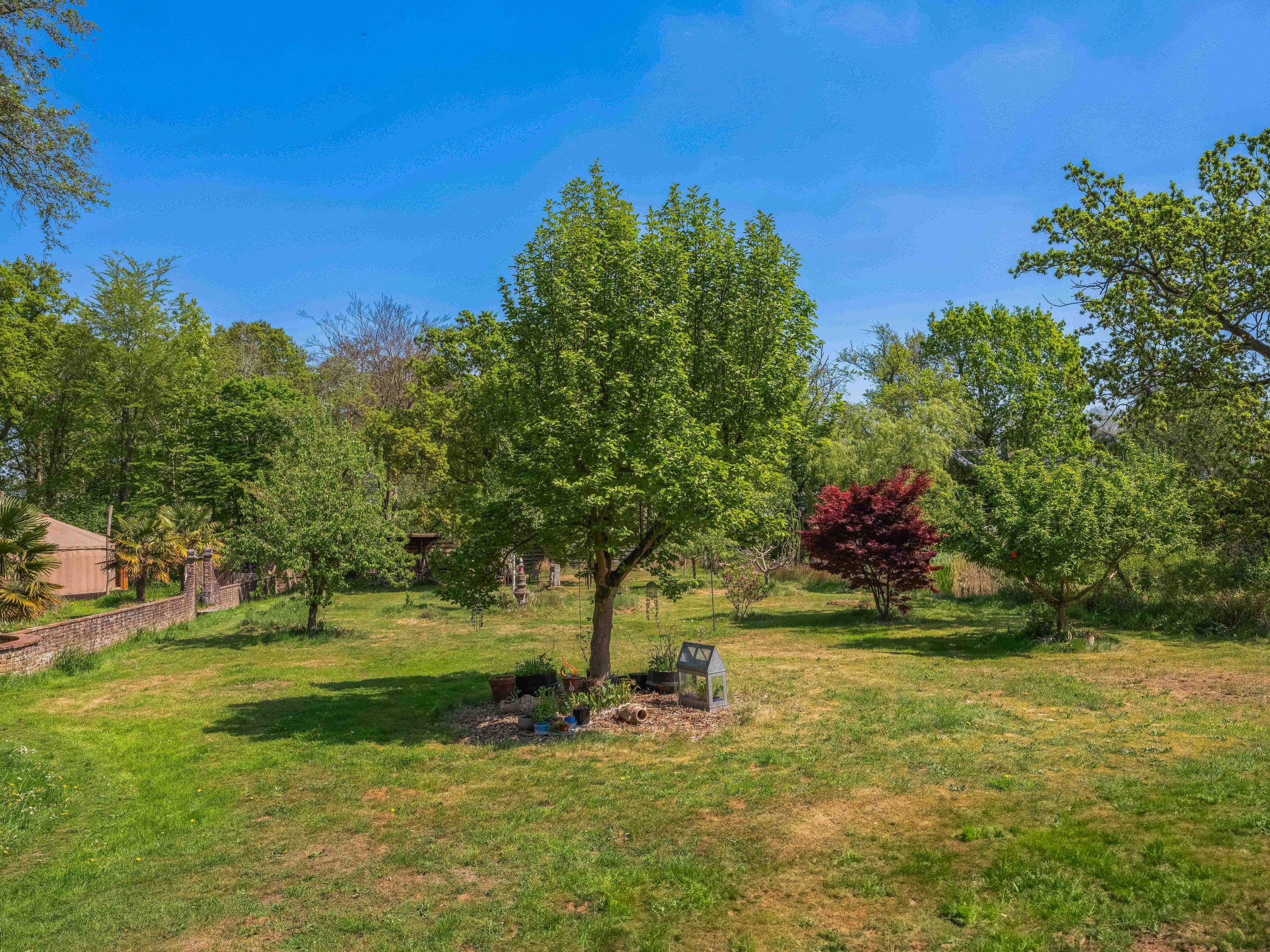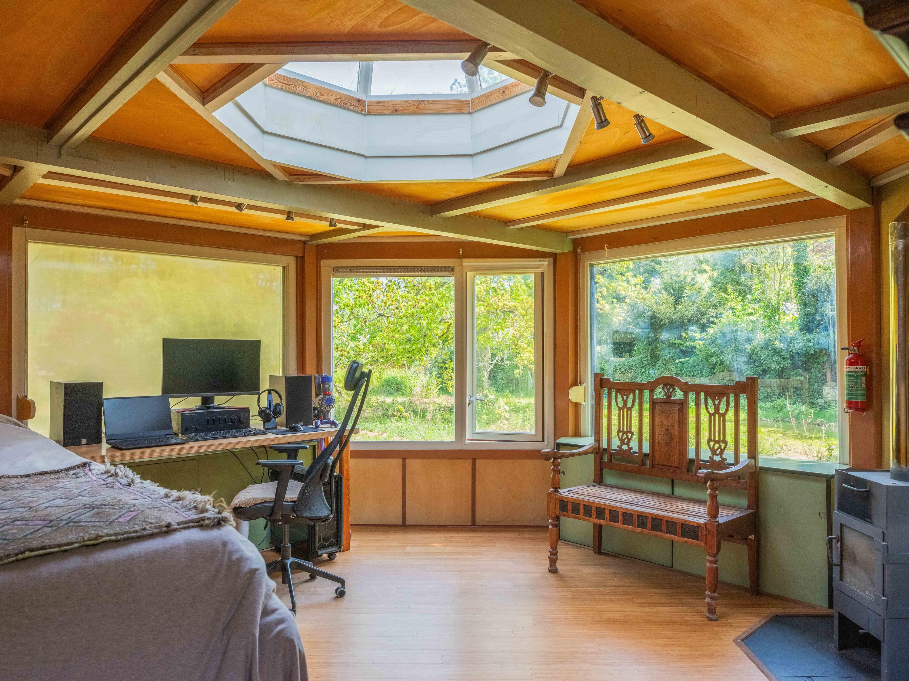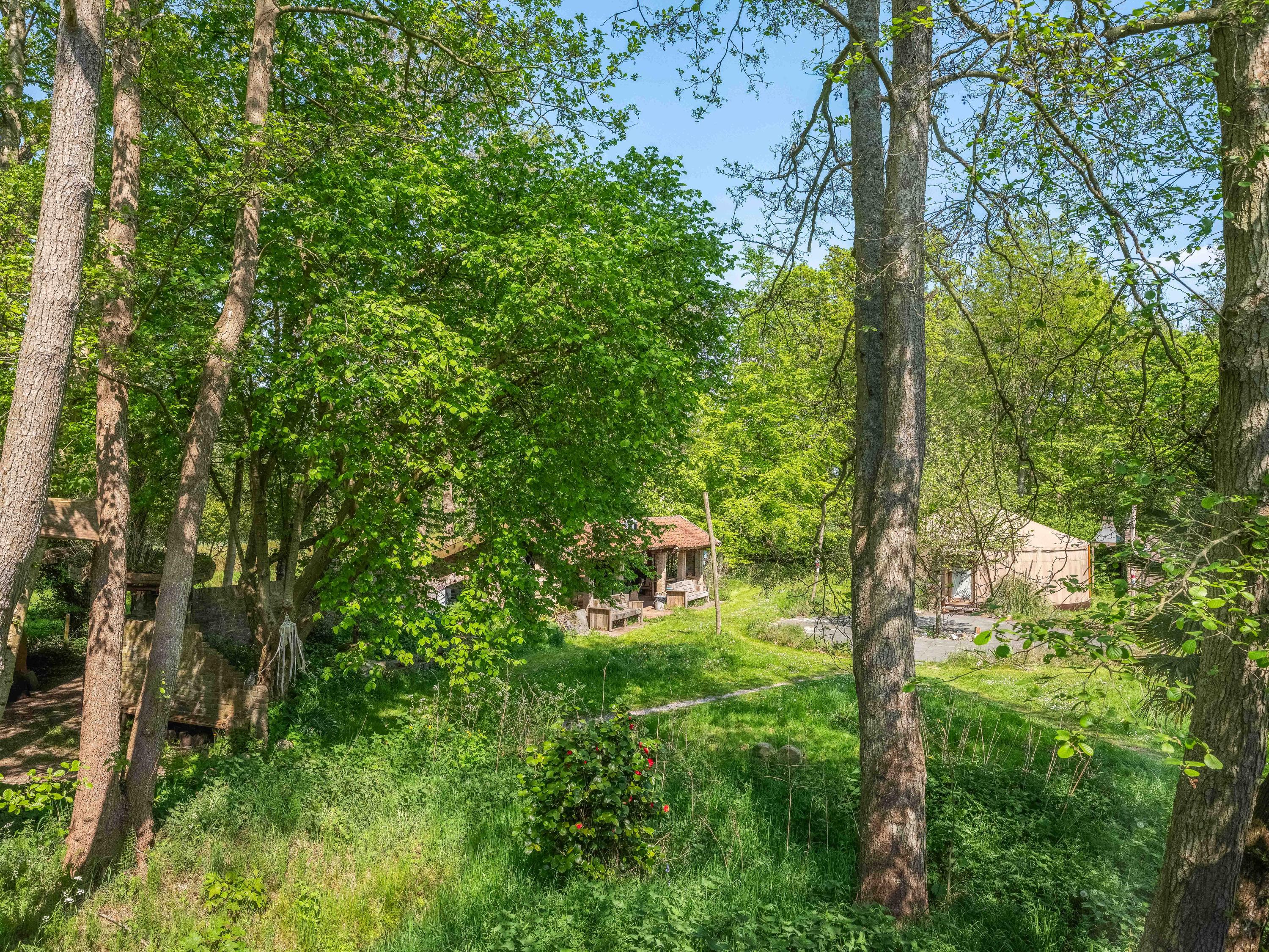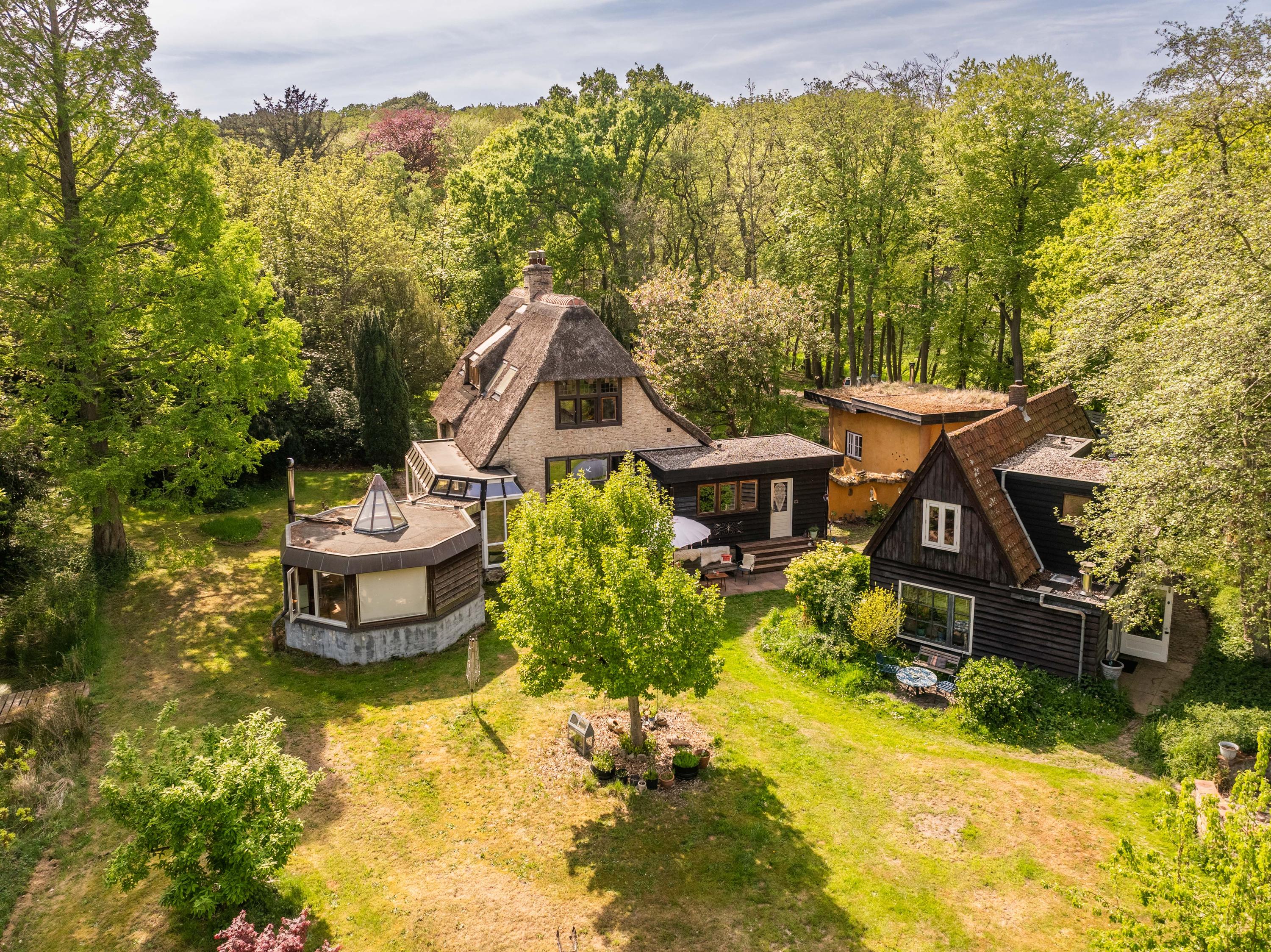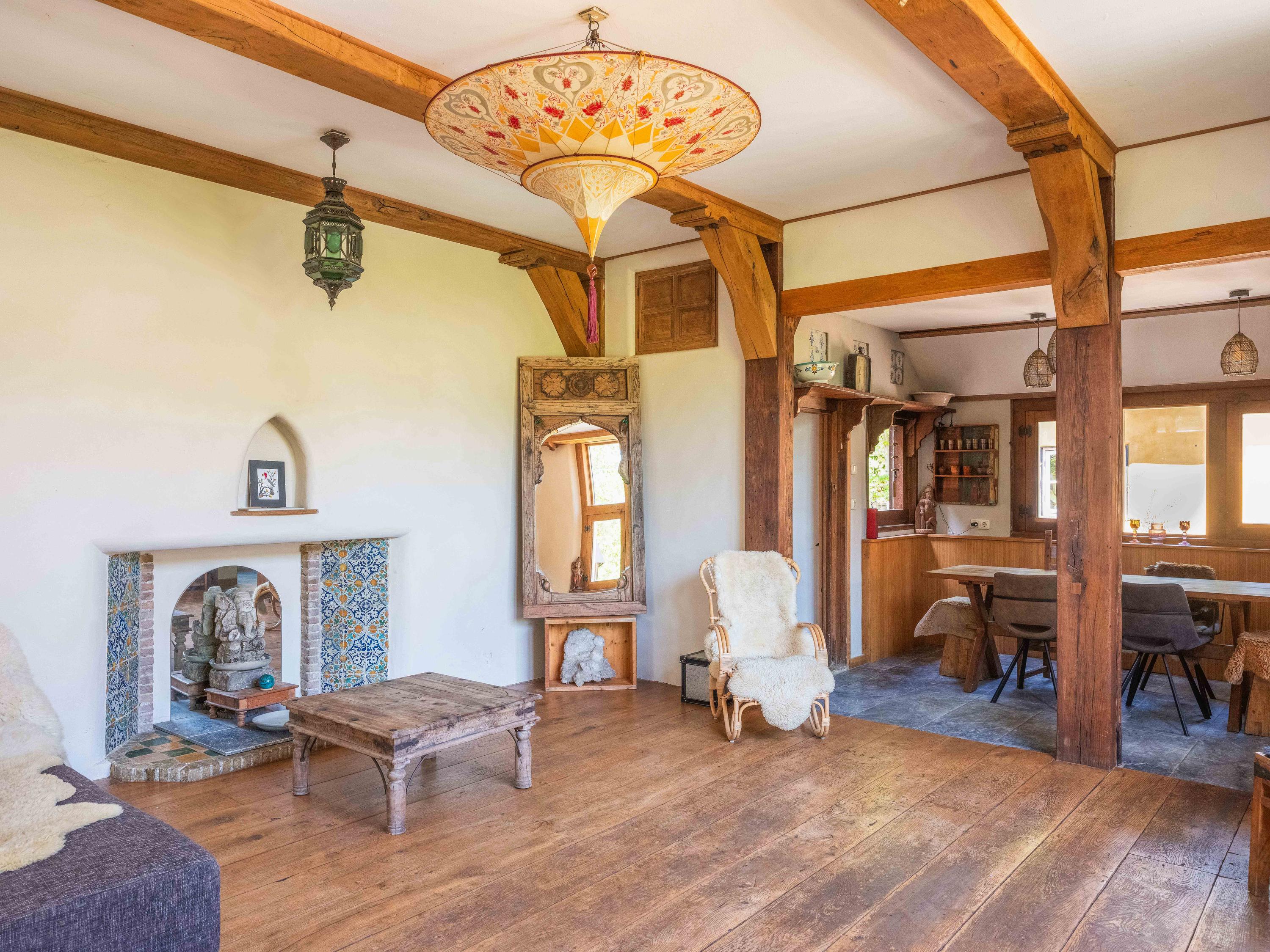 The generous plot of over 7,000 m² is a haven of tranquility, entirely enclosed by a moat with multiple dune streams, and landscaped with unique groups of trees in a thoughtfully designed pattern. In addition to the main house, you’ll find a separate, fully functional guest house and several charming outbuildings and covered spaces, making this property a truly unique ensemble. Whether you’re looking to relax, find inspiration, entertain guests, enjoy a cup of tea in the lovely tea pavilion, or bake a pizza in your very own clay outdoor oven – this country home offers it all.