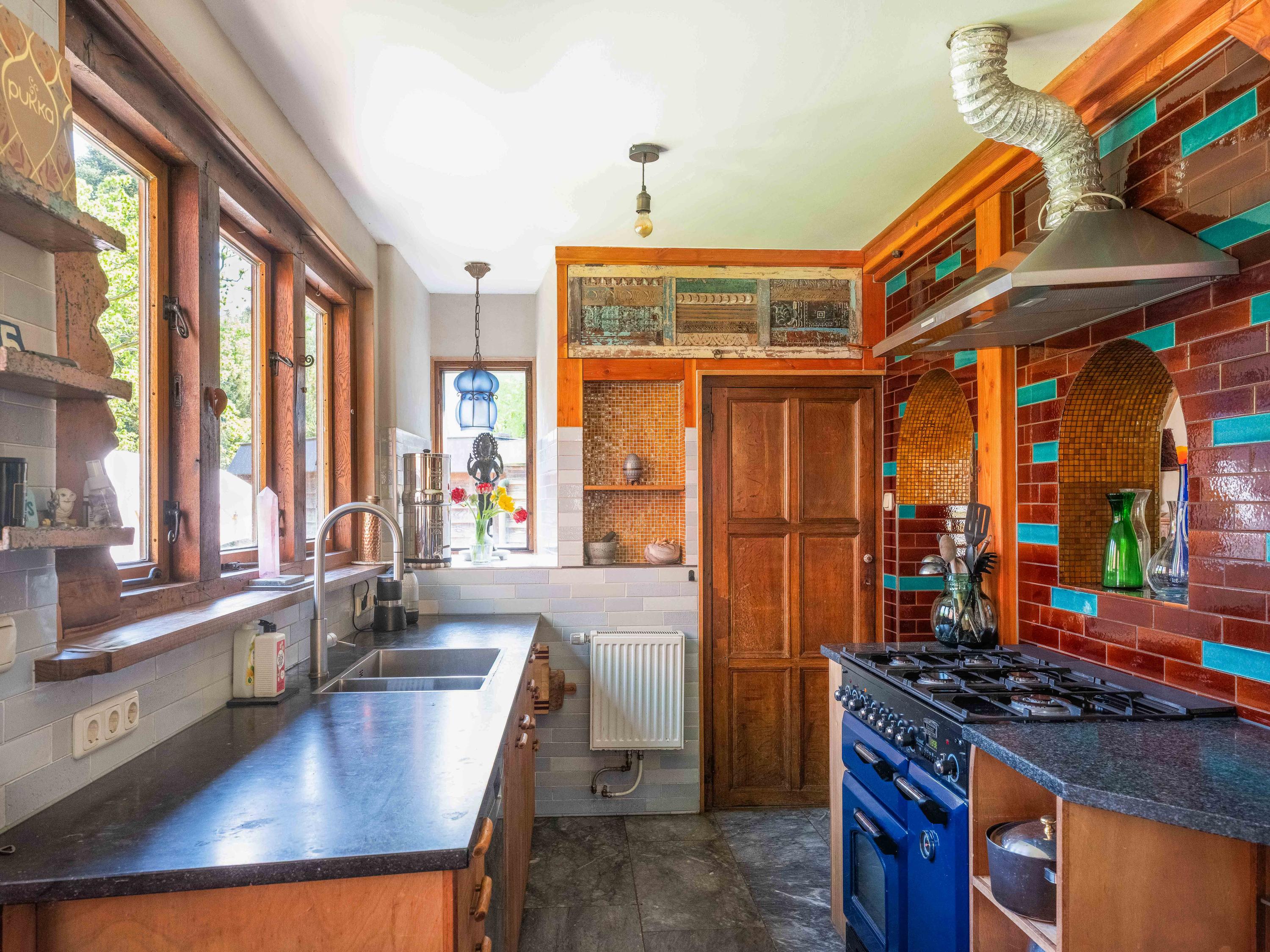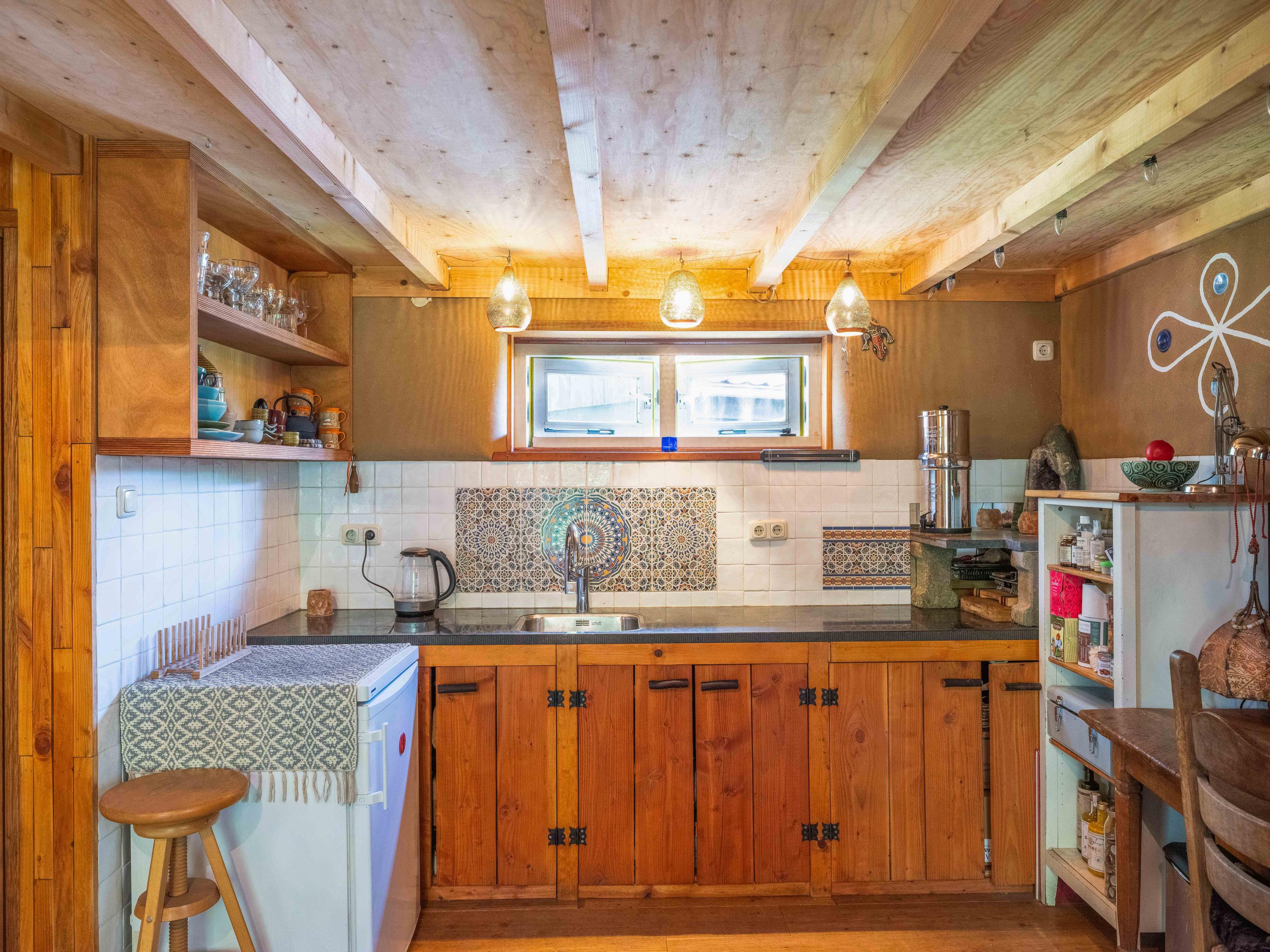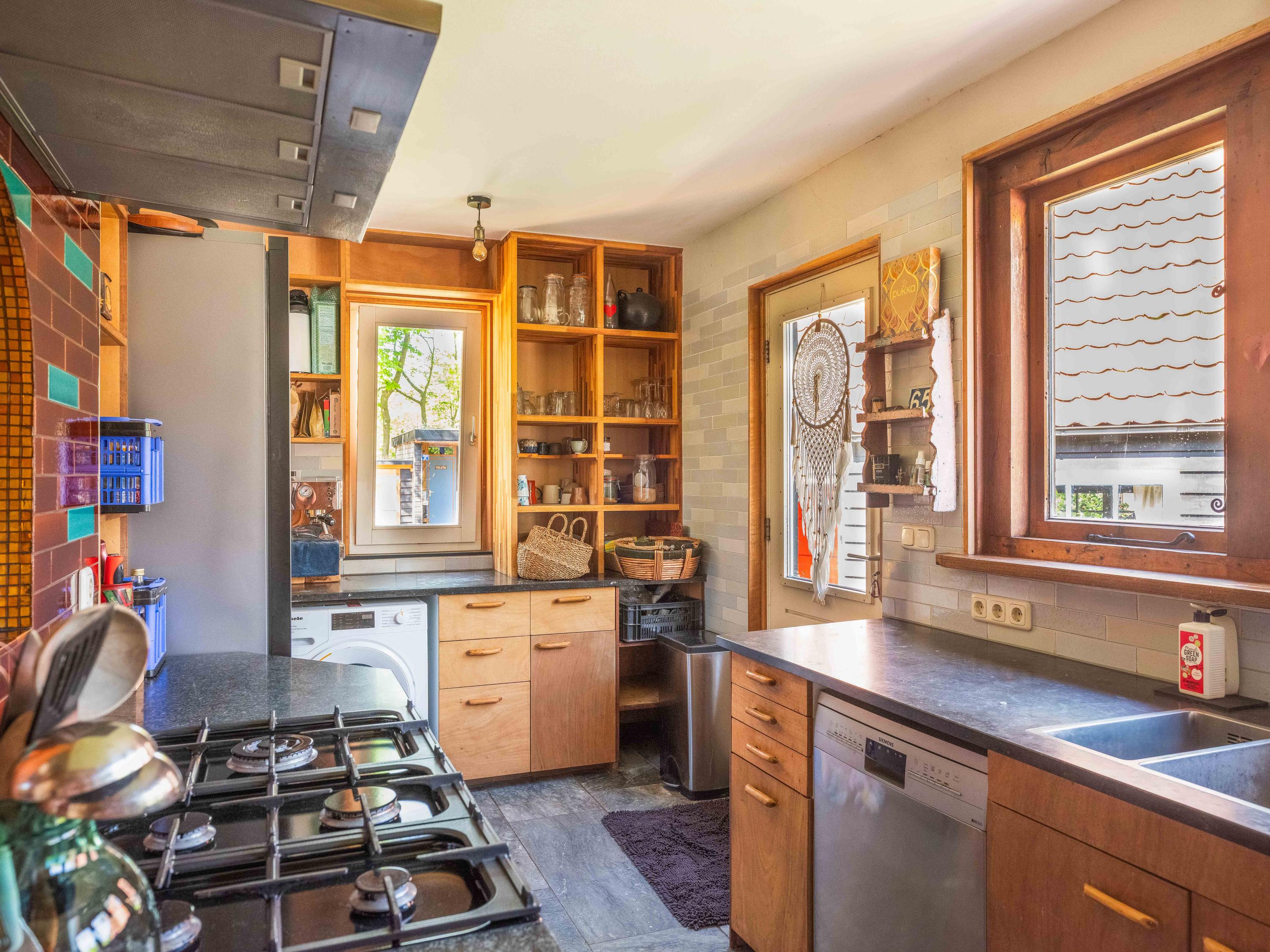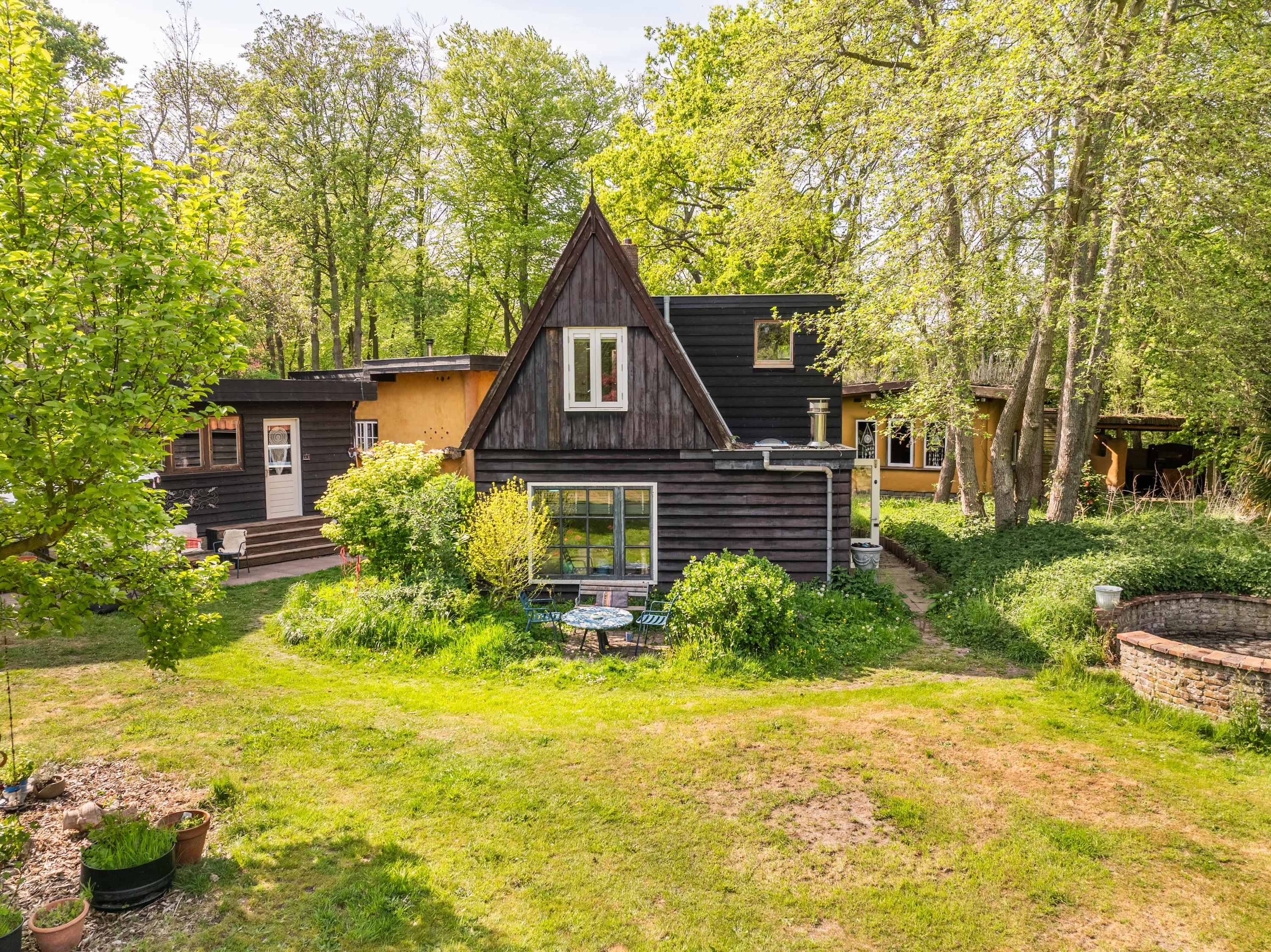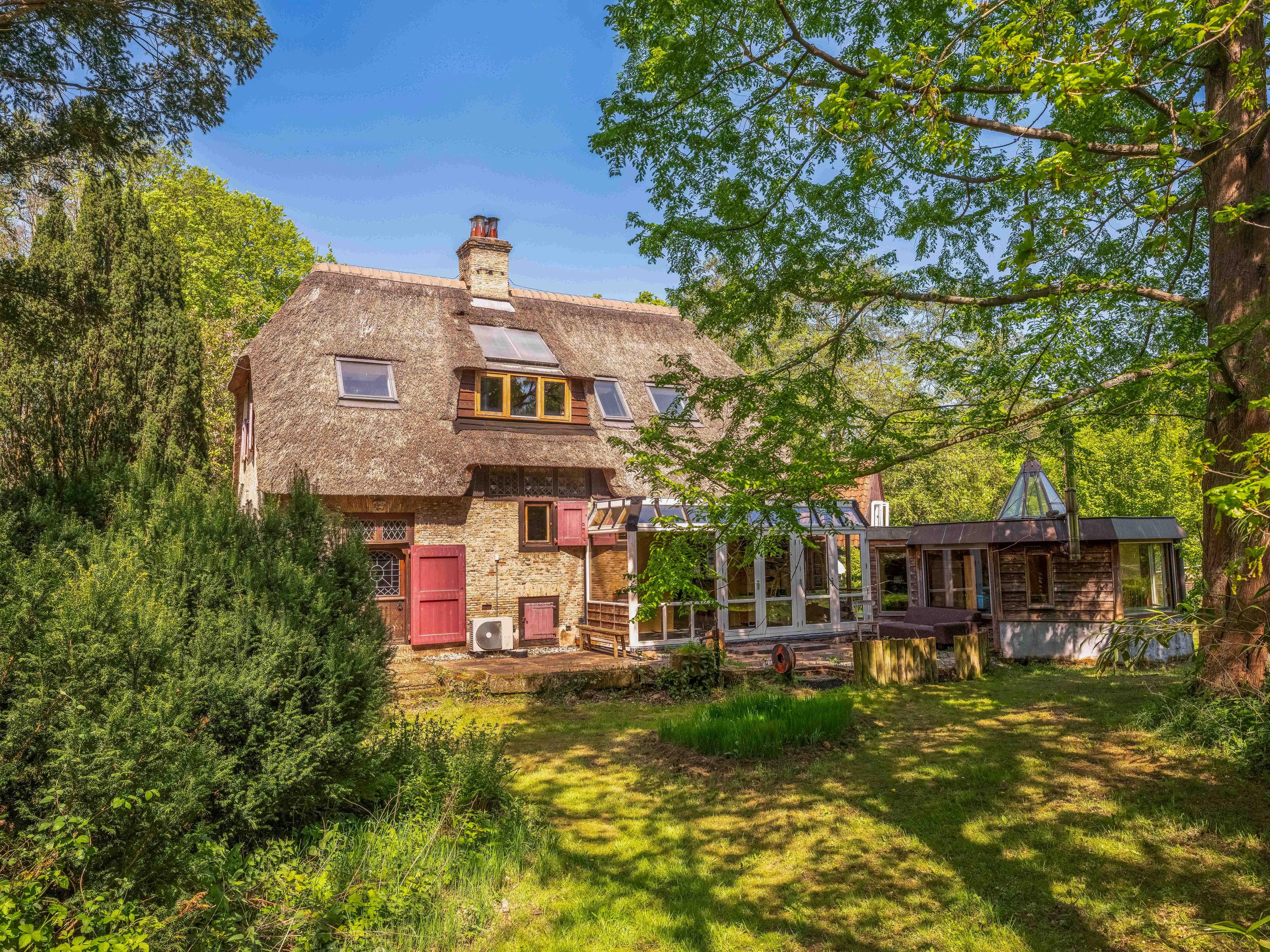 The generous plot of over 7,000 m² is a haven of tranquility, entirely enclosed by a moat with multiple dune streams, and landscaped with unique groups of trees in a thoughtfully designed pattern. In addition to the main house, you’ll find a separate, fully functional guest house and several charming outbuildings and covered spaces, making this property a truly unique ensemble. Whether you’re looking to relax, find inspiration, entertain guests, enjoy a cup of tea in the lovely tea pavilion, or bake a pizza in your very own clay outdoor oven – this country home offers it all.