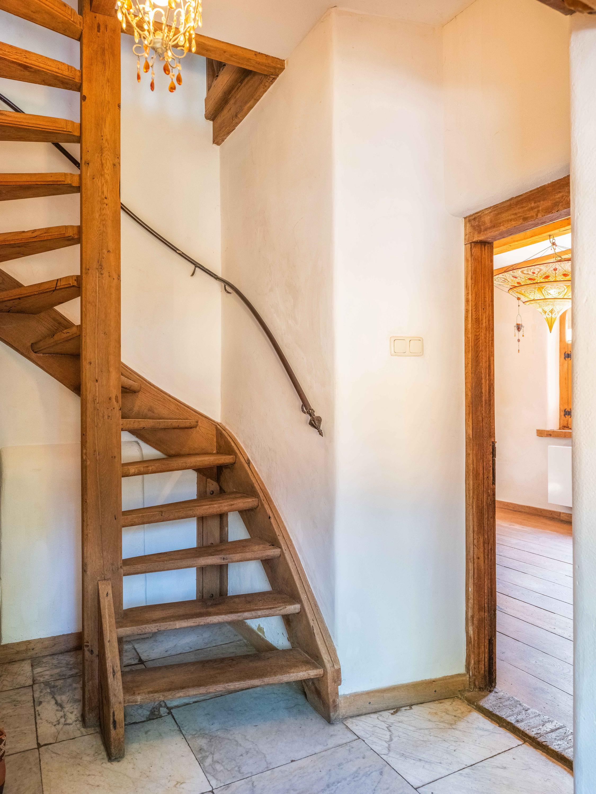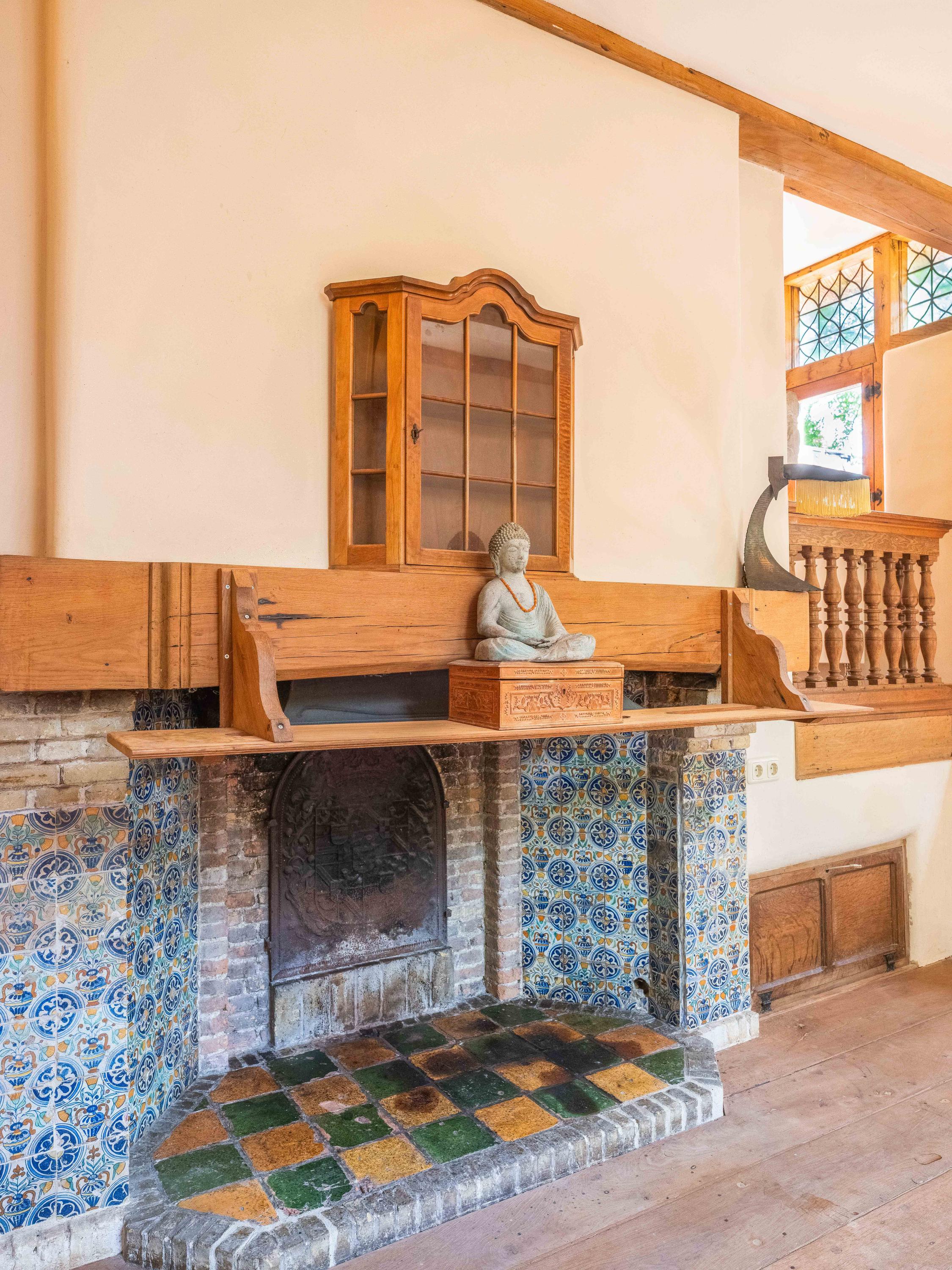 Let us take you inside the main residence. The ground floor welcomes you with a bright entrance, an open staircase, and a toilet. The kitchen, utility room, and cellar offer plenty of possibilities. The attached office is a pleasant and inspiring space. The garden-side living room features a charming fireplace, while the front living room includes a second fireplace and a raised alcove.