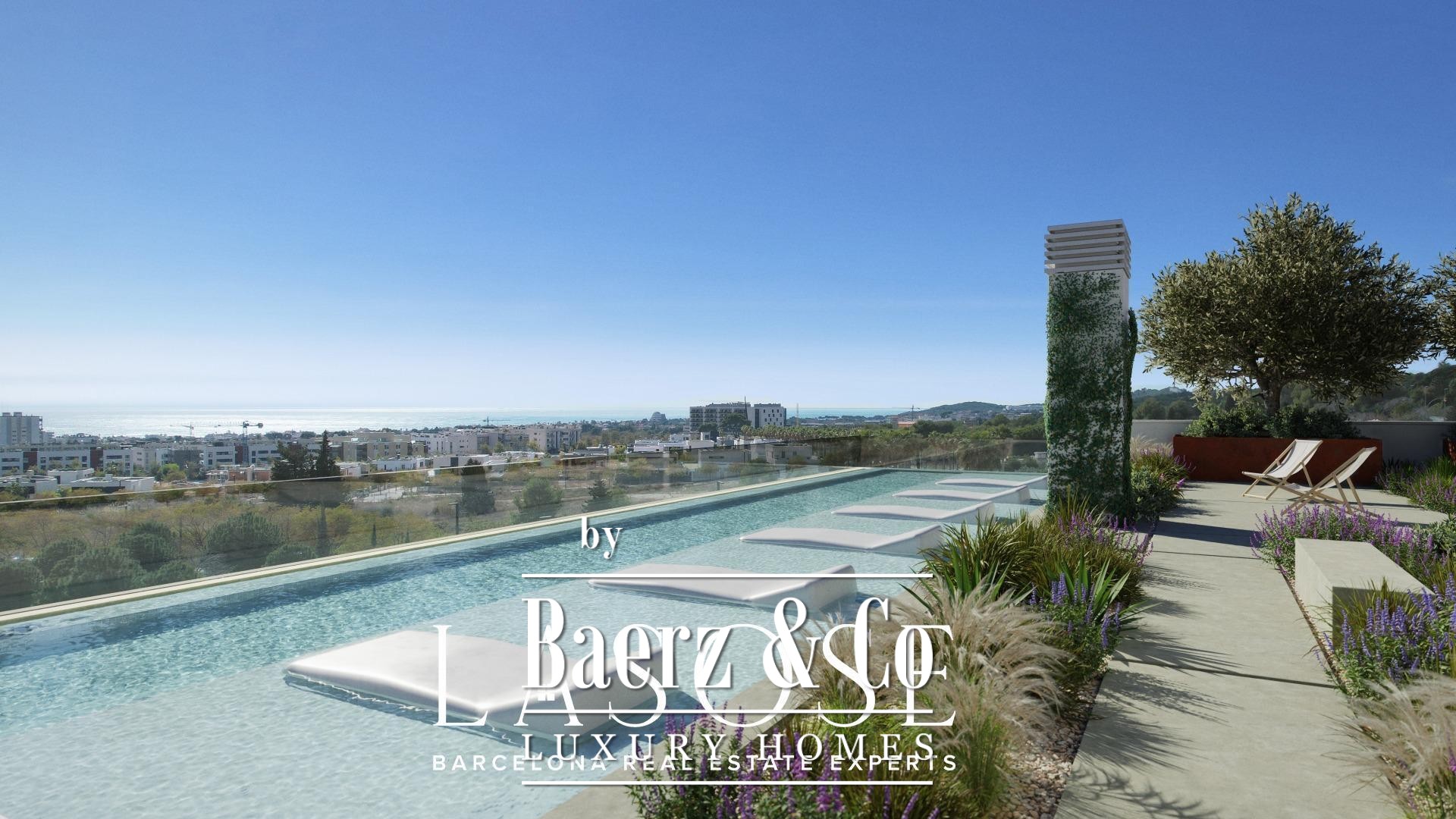 LASOSE is delighted to present a fabulous Calablanca Residences, an exclusive collection of sustainable luxury homes located in La Plana, one of the most desirable areas of Sitges. Built under the prestigious Passivhaus energy-efficiency standard, this development offers a lifestyle where comfort, elegance and wellbeing come together in perfect harmony.. Comprising 20 premium apartments across two buildings, Calablanca has been designed for maximum light, space and connection with nature. Most residences exceed 100 m² and feature open-plan living areas, large sea-facing terraces and exterior bedrooms flooded with natural light. Each home includes custom-made storage solutions and high-performance insulation and glazing, ensuring complete acoustic and thermal comfort all year round.. Passivhaus technology allows residents to enjoy up to 75% savings on heating and cooling, thanks to exceptional insulation and a mechanical ventilation system with heat recovery that keeps indoor air fresh and pure at all times. Living here means fewer energy costs, healthier interiors and a quieter, more serene home environment.. The communal areas rival those of a boutique resort. On the ground floor, a stunning swimming pool is set within a Mediterranean garden designed with native plants such as lavender, grasses and cypresses. Walking paths and shaded corners offer peaceful places to relax outdoors. On the rooftop of each building,