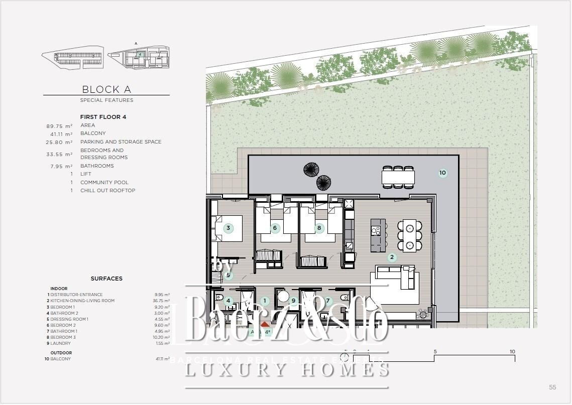 and high-end finishes that reflect understated elegance.. The kitchens are designed for modern living — fully equipped with integrated appliances, sleek Dektongroup countertops, and refined cabinetry in soft white and eucalyptus tones. Bathrooms evoke a spa-like ambiance with suspended fixtures, walk-in showers, elegant mirrors, and soft lighting that enhances every detail.. . Comfort & Wellbeing. Climate comfort is at the heart of Cala Blanca Residences. Each home features ducted air conditioning, aerothermal hot water systems, and mechanical ventilation with heat recovery — ensuring fresh, balanced air and a perfect indoor environment in every season.. . Outdoor Serenity. Private terraces and garden areas offer the ideal setting to enjoy outdoor living — a quiet morning coffee, an afternoon by the pool, or a dinner beneath the stars. The saltwater swimming pool and surrounding landscaped spaces embody the Mediterranean art of relaxation.. . Smart Design, Lasting Quality. Cala Blanca Residences meets the highest standards of Spain’s Technical Building Code (CTE), ensuring superior performance, safety, and durability. Every detail, from the LED lighting to the glass railings and motorized blinds, reflects an unwavering commitment to quality.. . Your Mediterranean Home Awaits. Cala Blanca Residences is more than a place to live — it’s a lifestyle inspired by the sea, light, and serenity of Sitges. Whether as a permanent residence or a seaside retreat, it offers the perfect balance between modern design, environmental awareness, and timeless Mediterranean charm.. . Experience a new way of living on Spain’s most beautiful coast — where sustainability meets sophistication, and every day feels like a summer dream.
